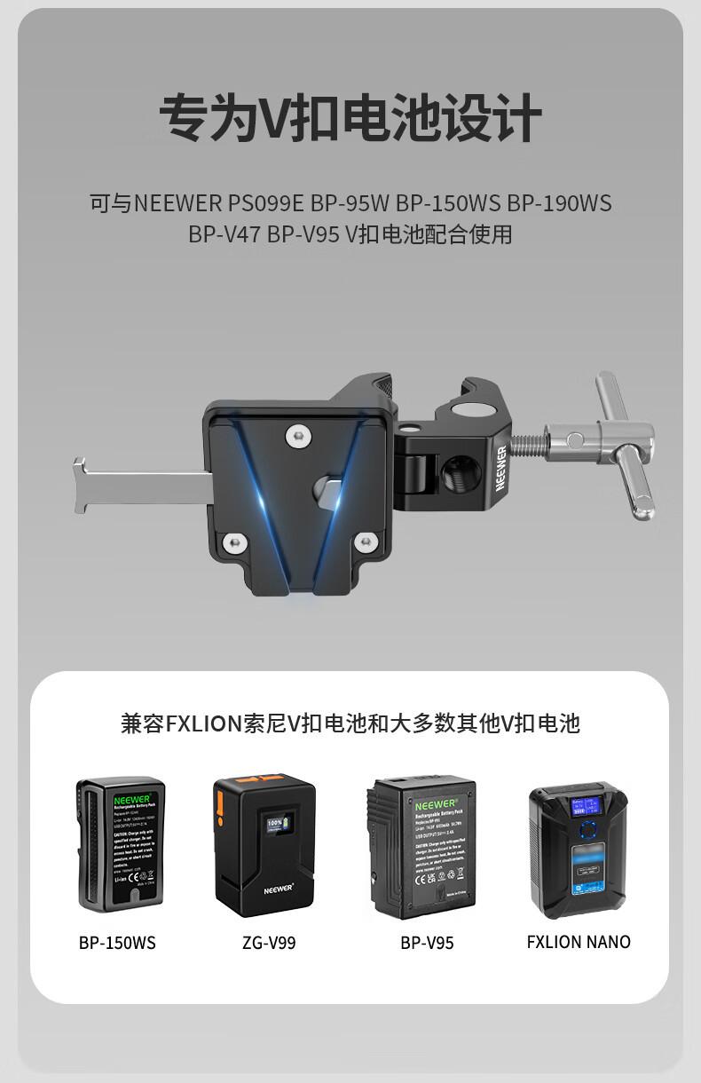 MÁS NUEVO (MÁS NUEVO)Placa de alimentación para colgar baterías con puerto en V, abrazadera resistente, tipo cangrejo, adecuada para cámaras SLR.