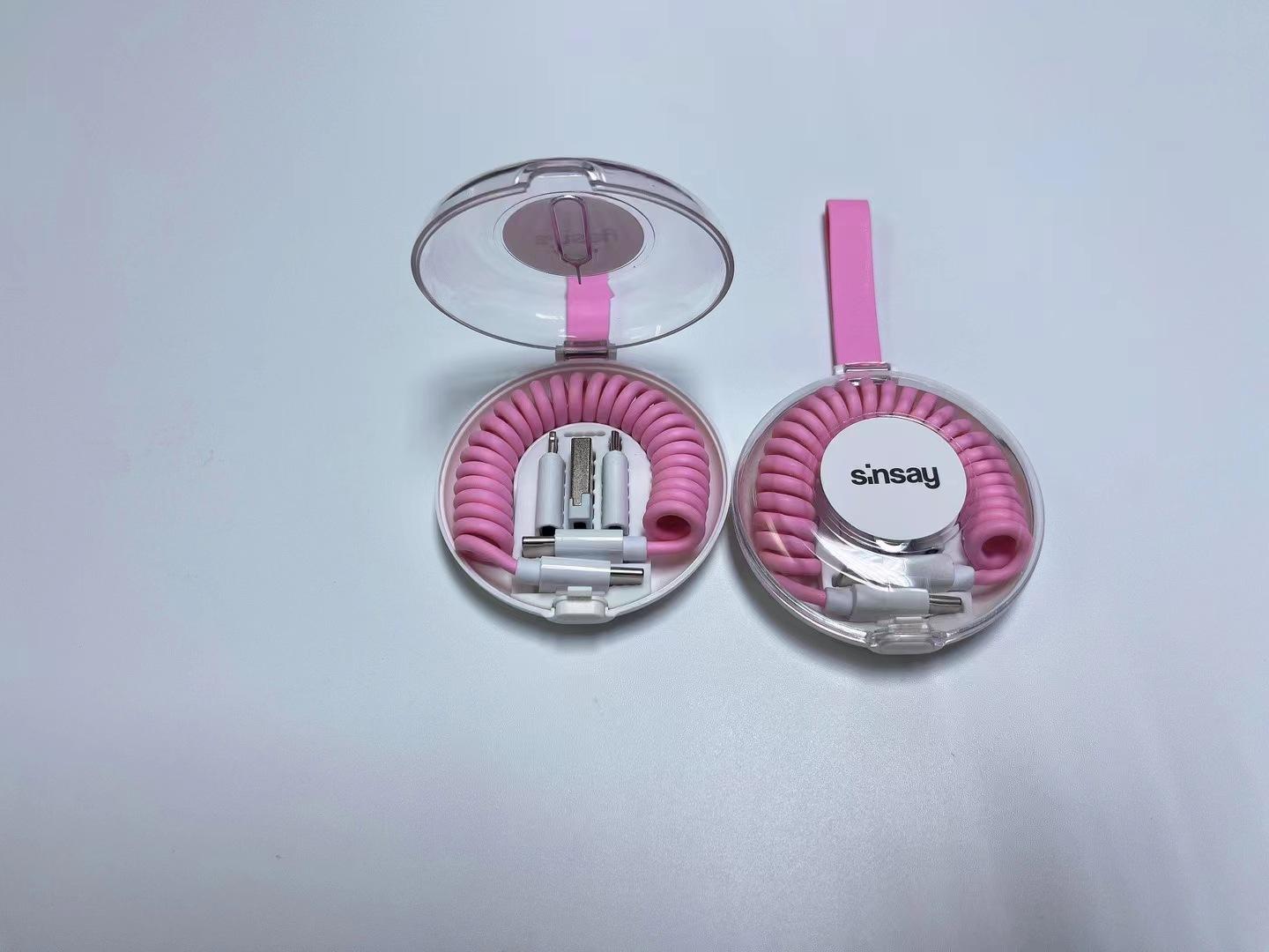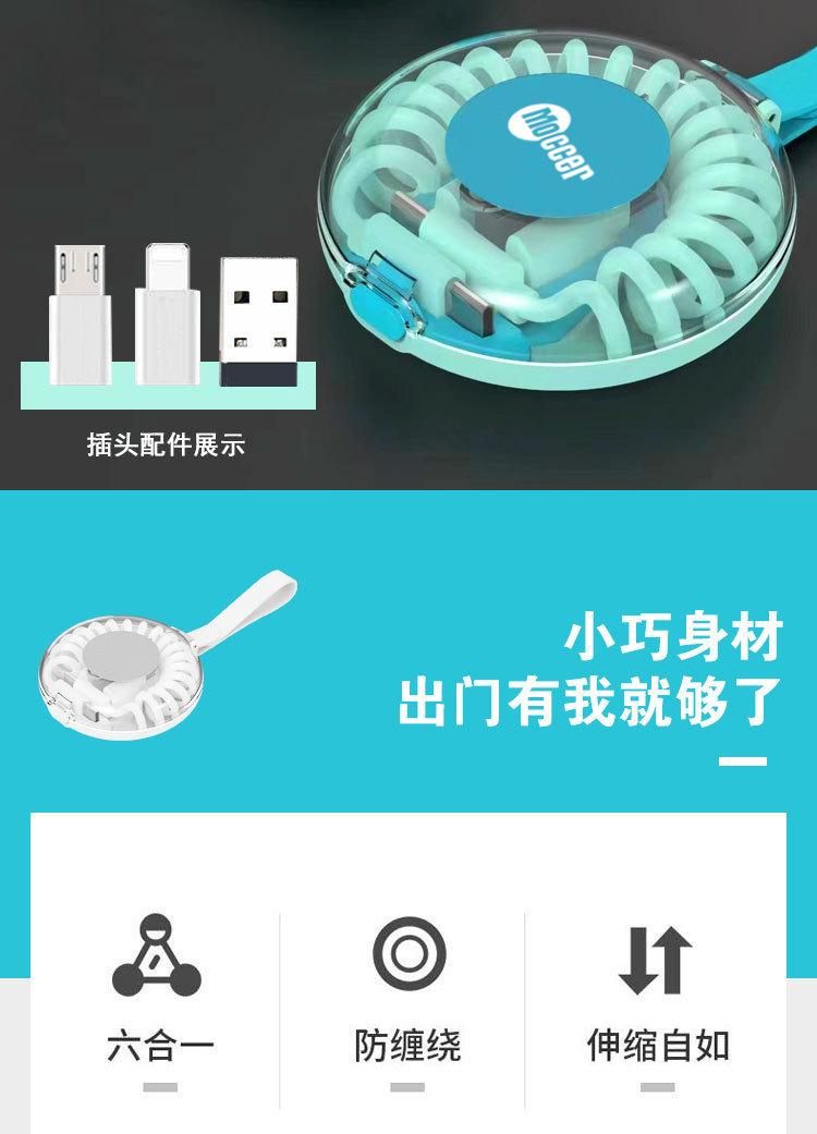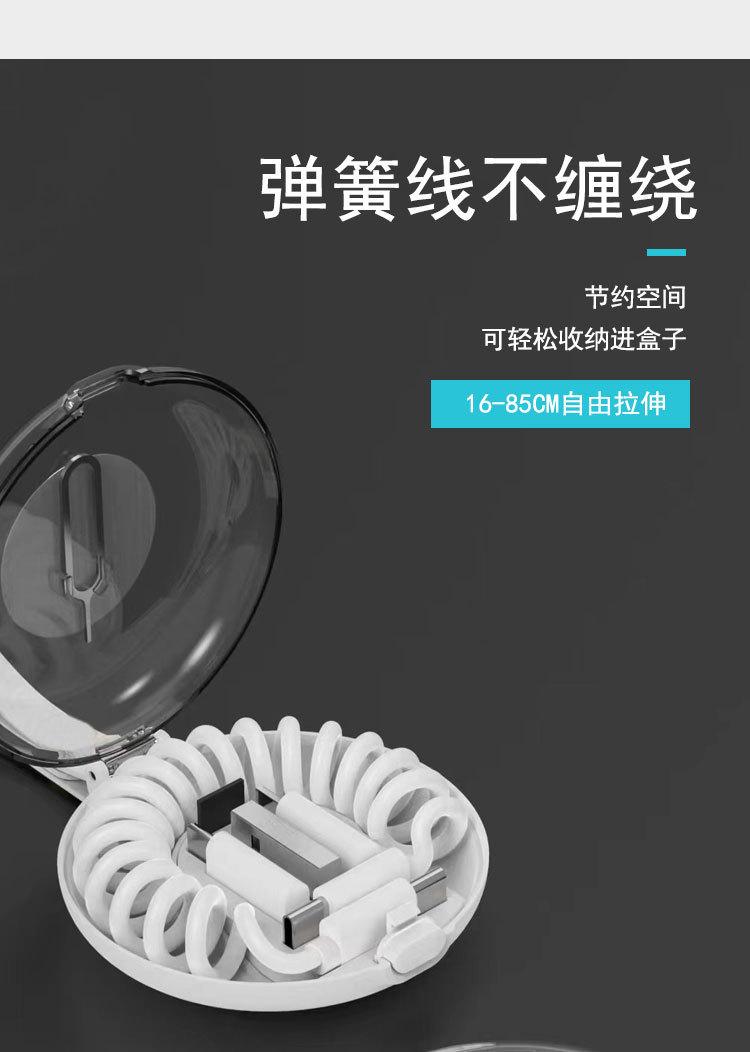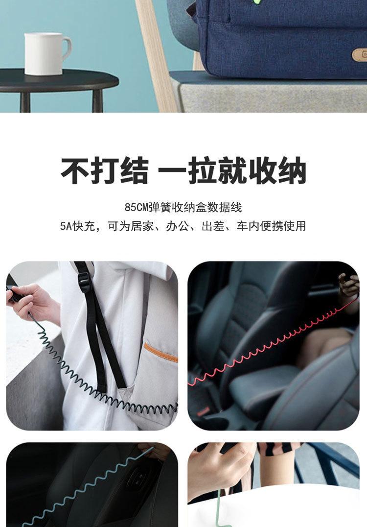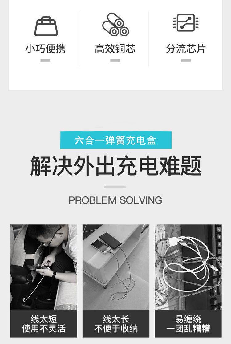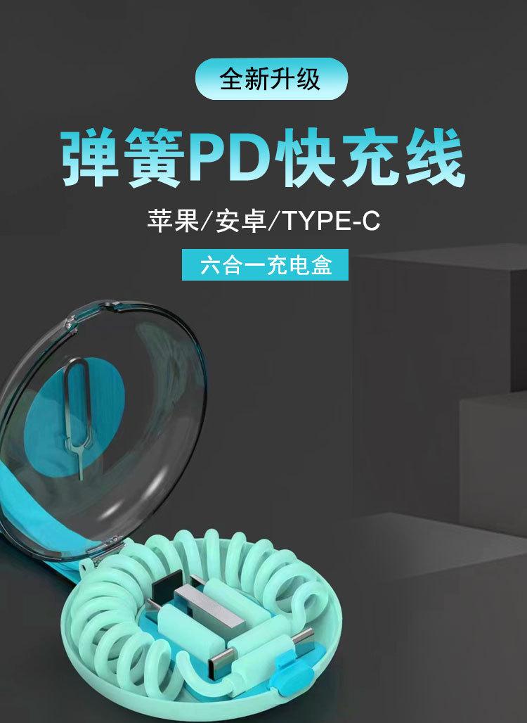 Caja de almacenamiento de cable de datos de carga rápida PD60W seis en uno con resorte, conjunto de cable de datos tipo C de carga súper rápida, venta al por mayor