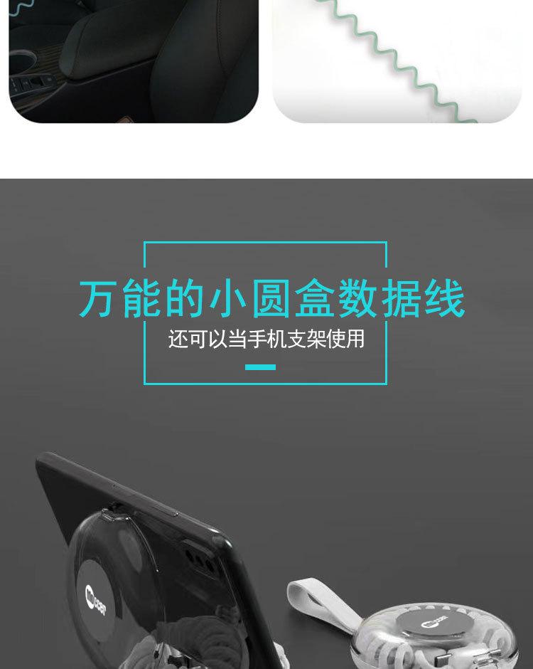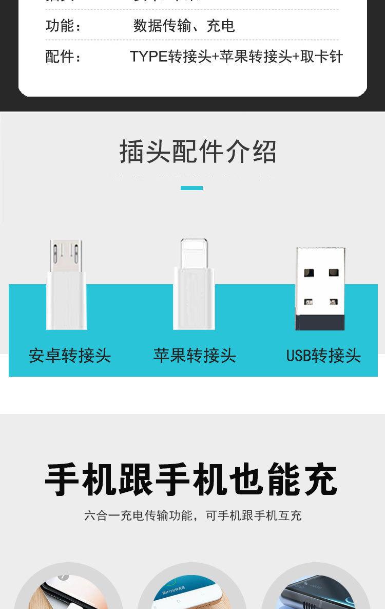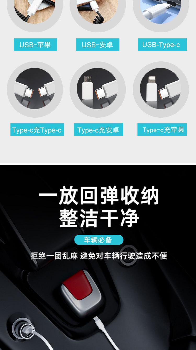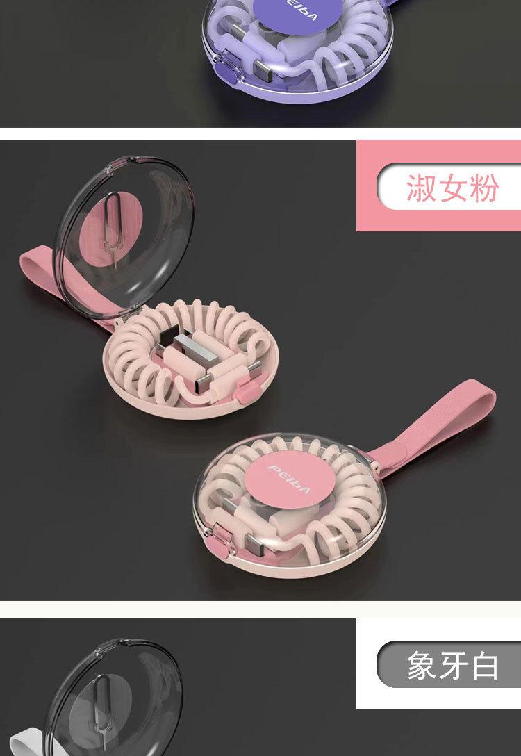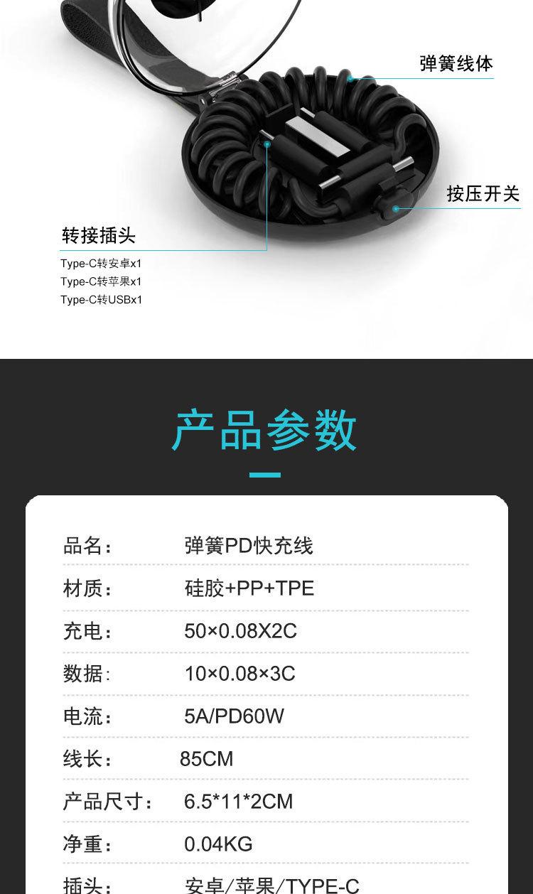 Caja de almacenamiento de cable de datos de carga rápida PD60W seis en uno con resorte, conjunto de cable de datos tipo C de carga súper rápida, venta al por mayor