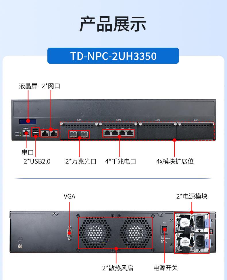 Tiandi Control Industrial Sea Light 2U Host de Seguridad de Red Npc-2Uh3350 Expansión 4 Puertos Eléctricos Gigabit 4 Puertos Ópticos Gigabit