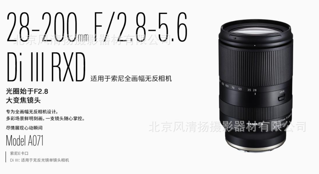 El Sony E-mount 28-200mm F/2.8-5.6 Di III RXD (modelo A071) nace de la amplia experiencia de Tamron en objetivos zoom de largo alcance. No solo ofrece una apertura máxima de F2.8, algo inusual en este tipo de objetivos, sino que también ofrece imágenes de alta calidad en todas las distancias focales, desde 28 mm en el gran angular hasta 200 mm en el teleobjetivo. A pesar de su amplia cobertura focal, su cuerpo ligero y compacto, de 117 mm de longitud y 575 g de peso, lo hace ideal para llevarlo a diario y, además, permite viajar con poco equipaje. Este objetivo se centra en el rendimiento óptico y utiliza lentes especiales como la baja dispersión LD y la baja dispersión XLD, lo que minimiza la aberración cromática y ofrece imágenes de alta calidad desde el centro hasta la periferia. Además, la distancia mínima de disparo es de 0,19 m en el gran angular y de 0,8 m en el teleobjetivo, lo que ofrece una excelente capacidad para primeros planos. El sistema de autoenfoque está equipado con un motor paso a paso RXD de alta velocidad y silencioso, combinado con una estructura sencilla a prueba de goteo, un revestimiento antiincrustaciones y otras funciones auxiliares de fotografía. Este gran objetivo con zoom permite capturar una variedad de escenas, desde paisajes y retratos hasta instantáneas, con un solo objetivo.