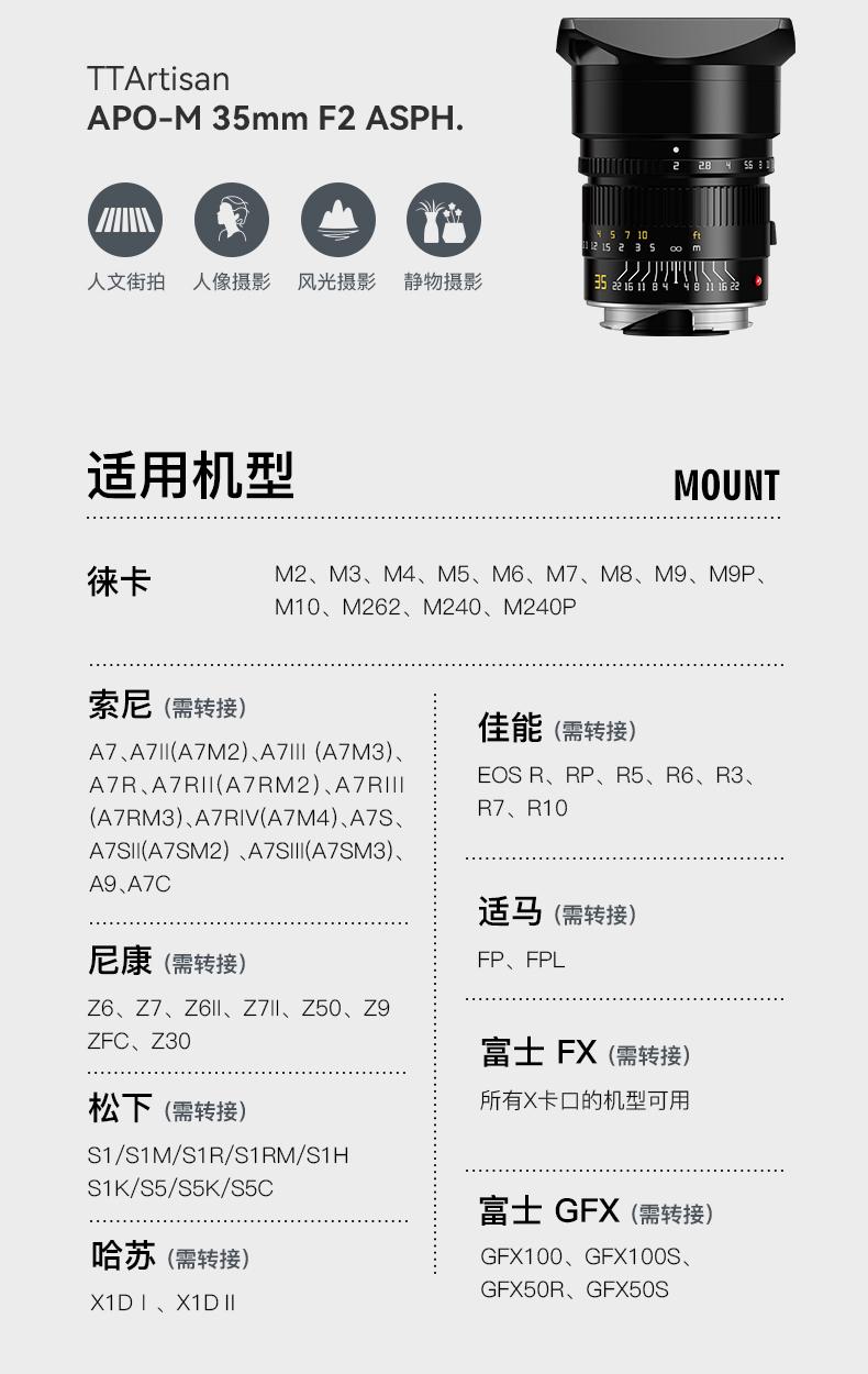 Lente Mingjiang optical APO M 35mm f2 ASPH de fotograma completo adecuada para montura Leica M de enfoque fijo
