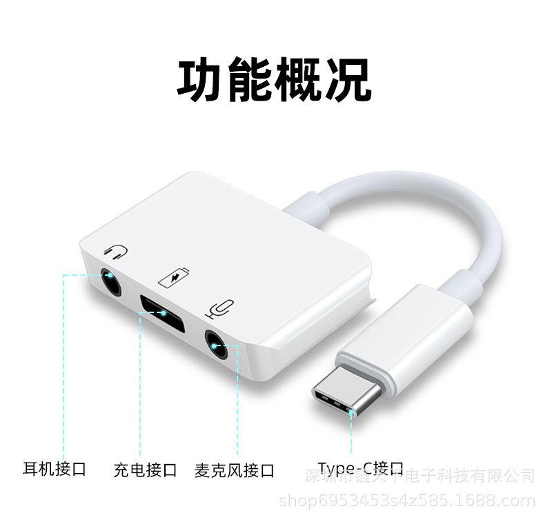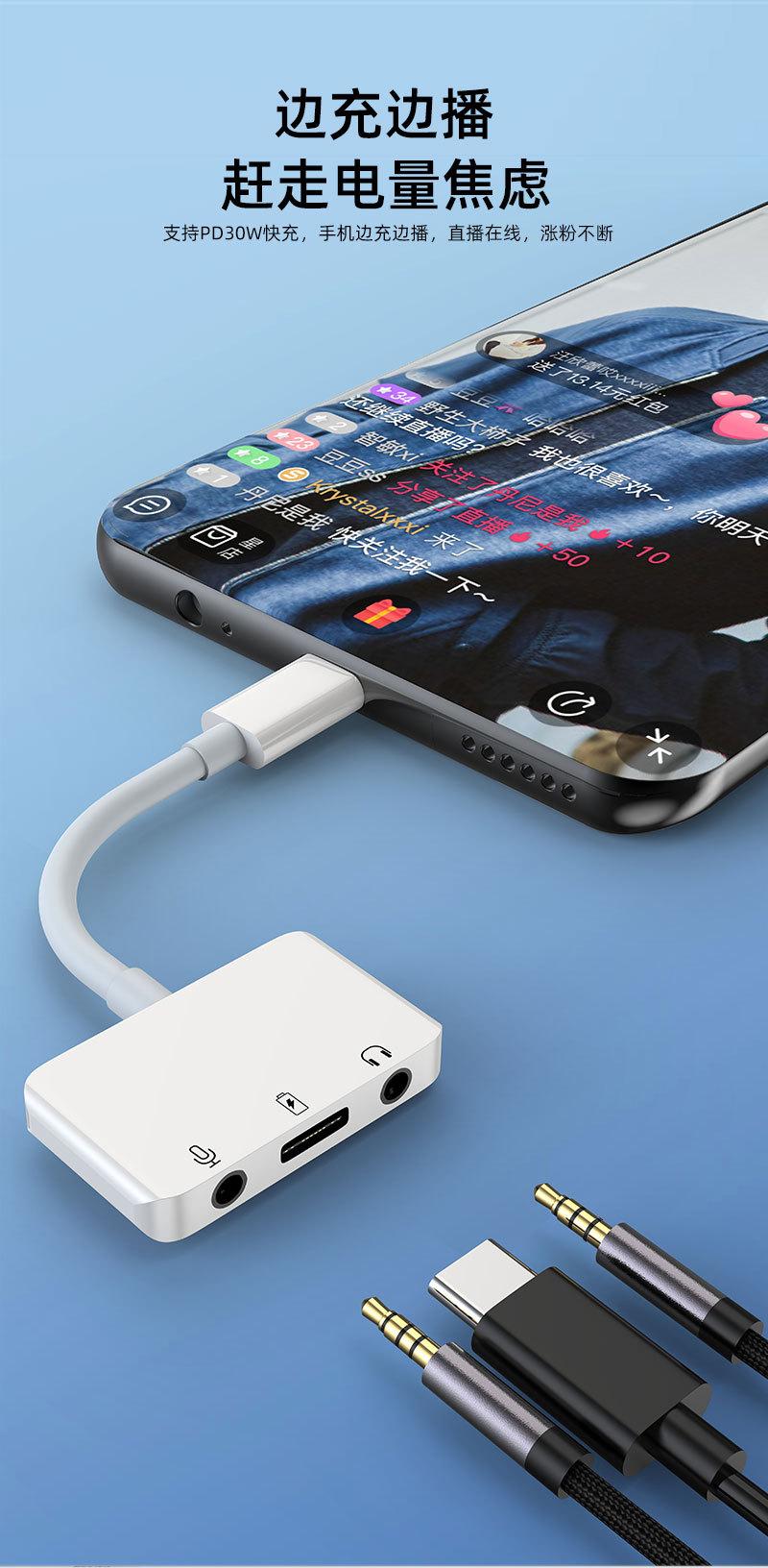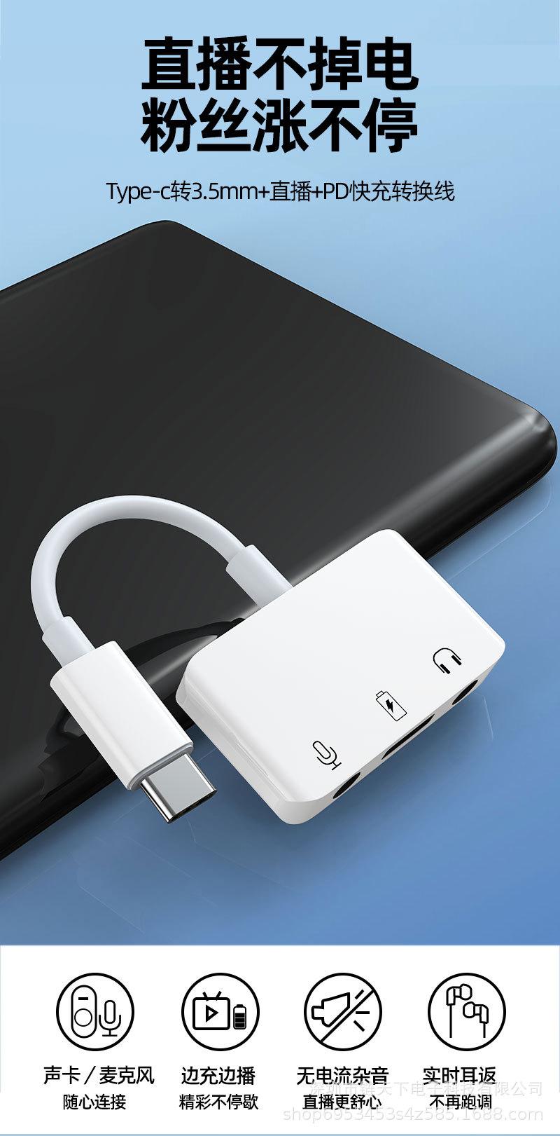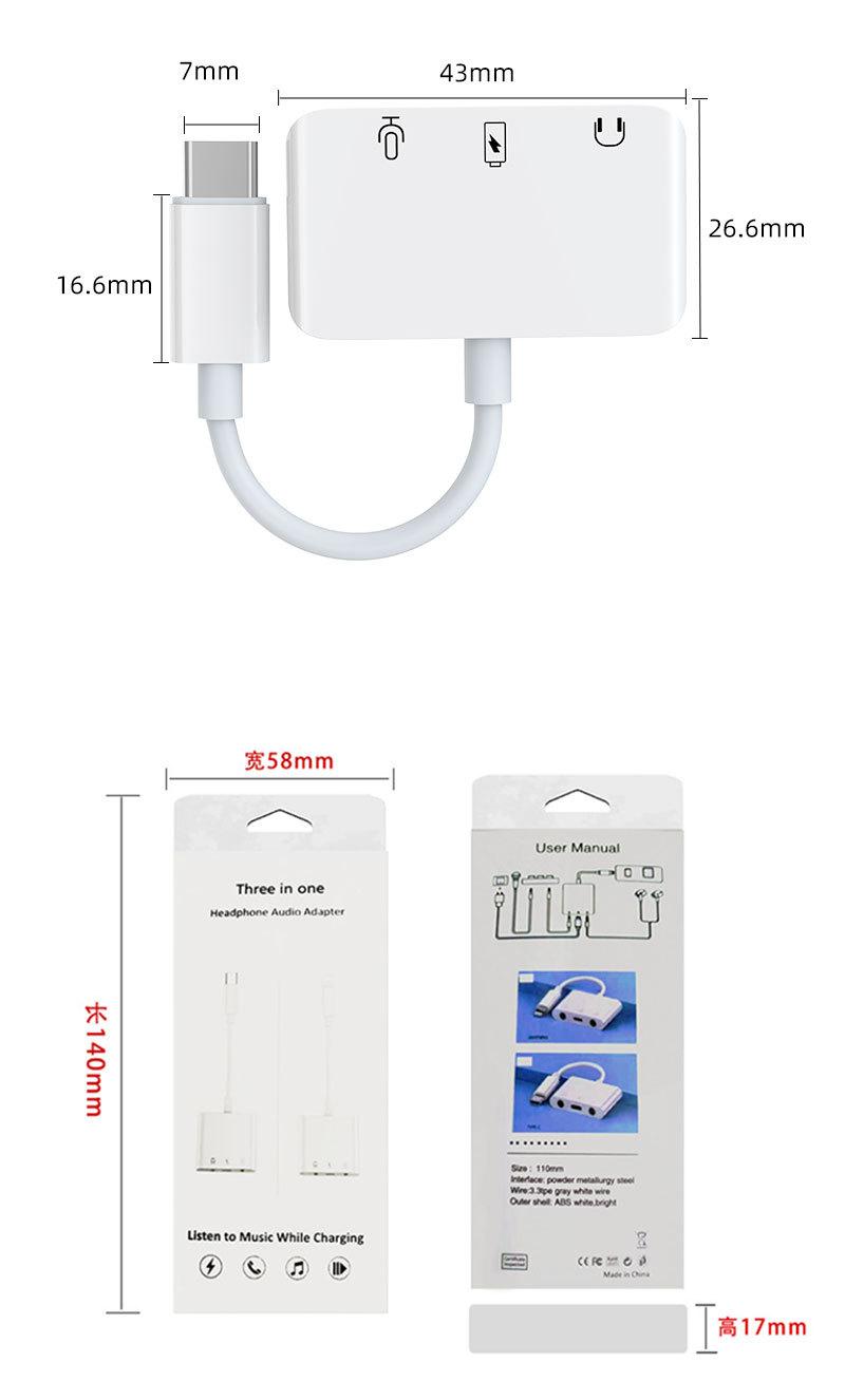 Adaptador de Audífonos de Audio Tipo C para Teléfono Móvil Convertidor OTG Tres en Uno Conversión USB para Apple Live