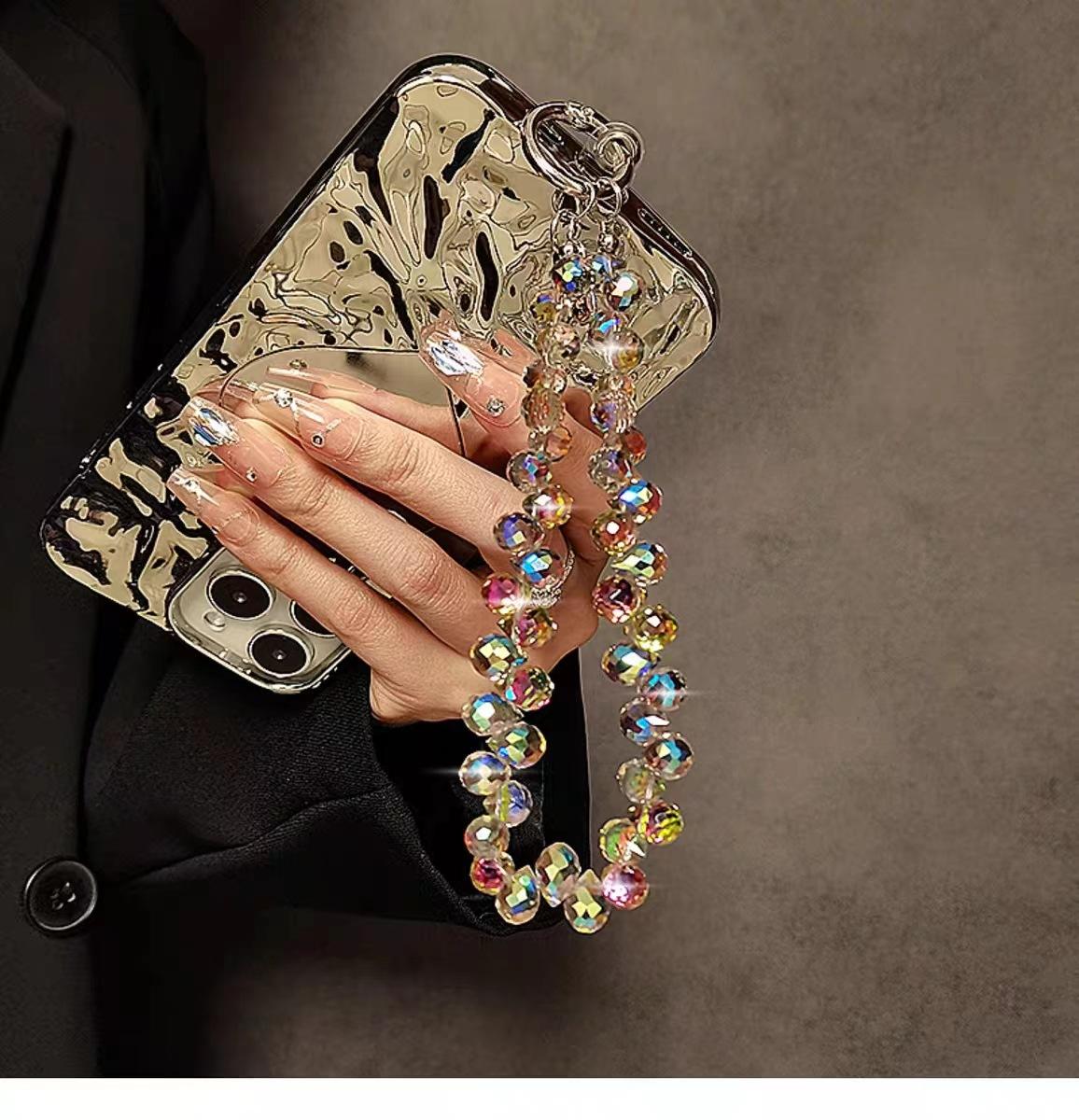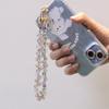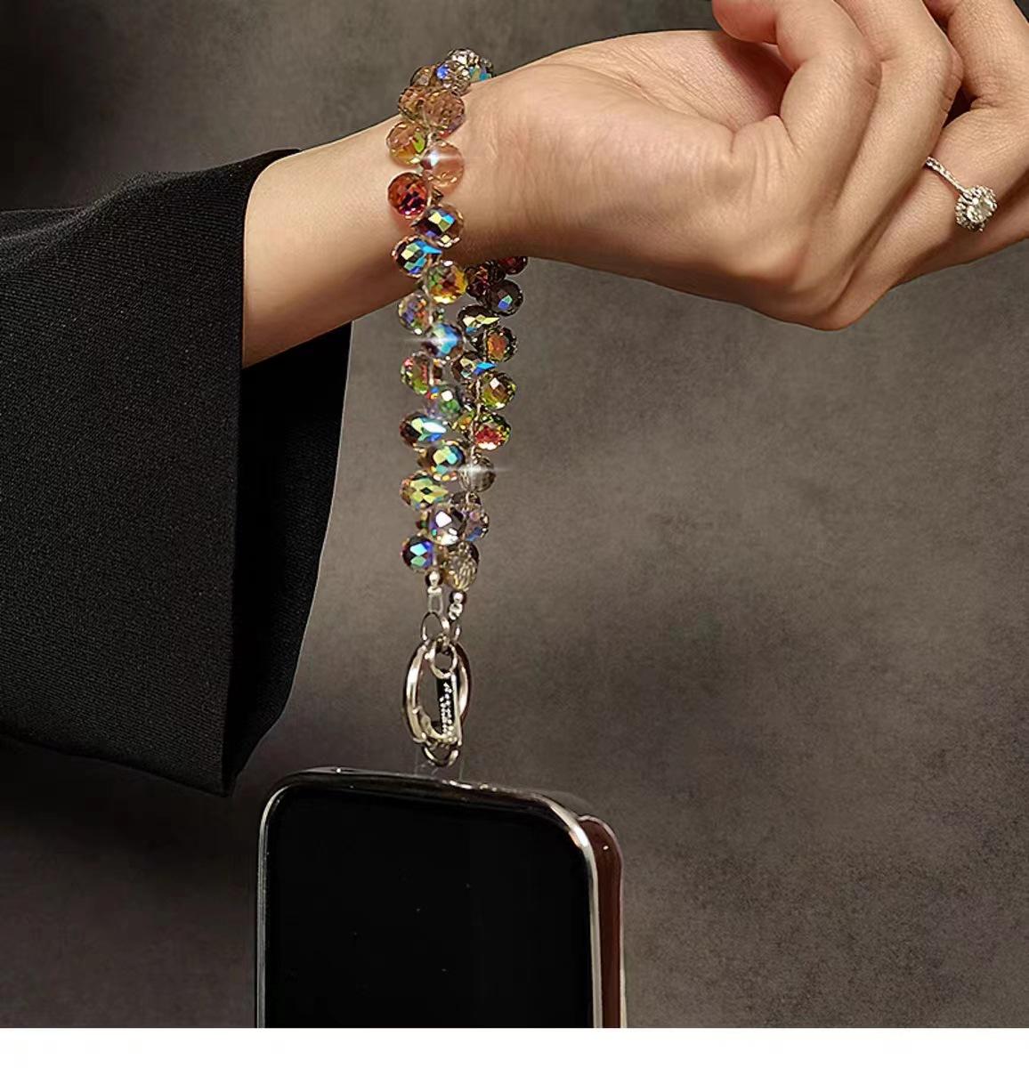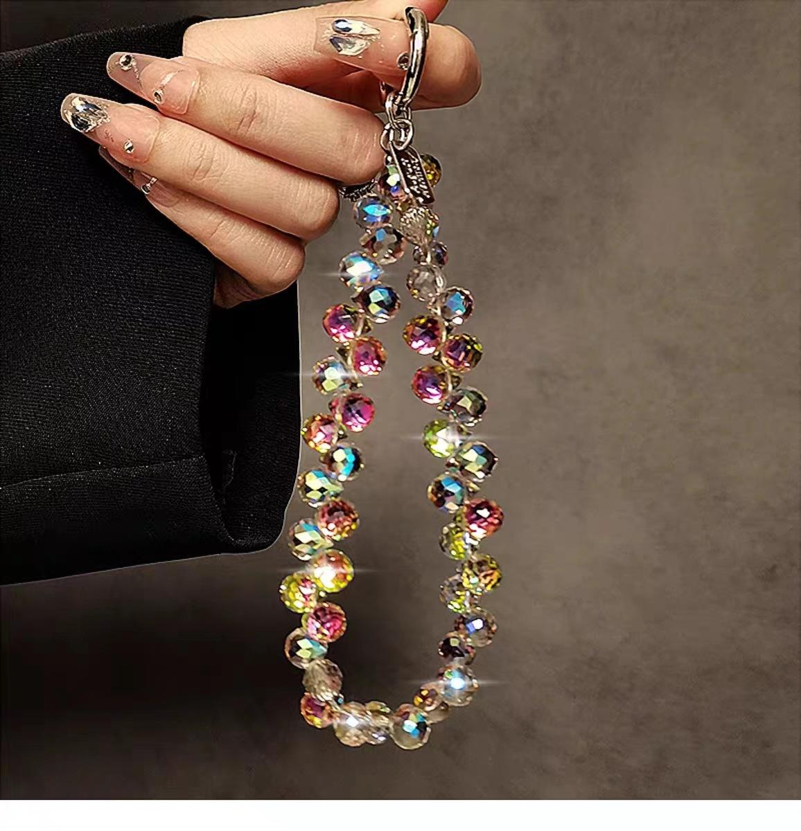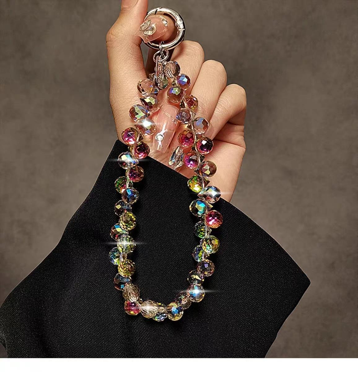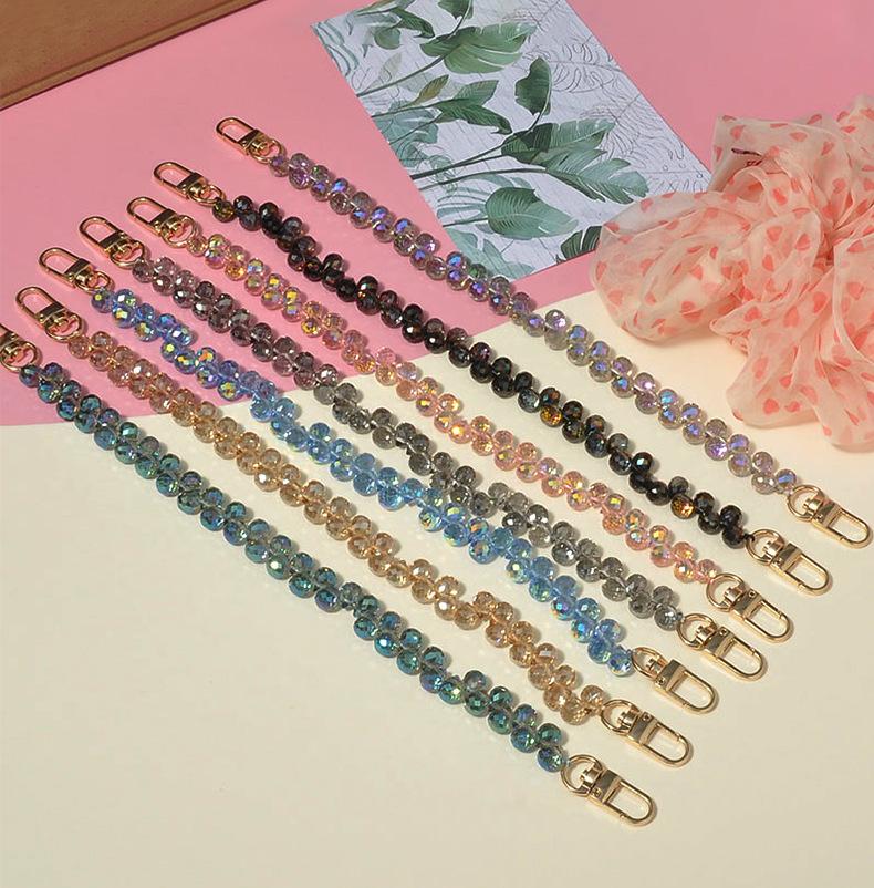 Cuentas de cristal de alta textura cadena de mano para muñeca cuerda corta colgante con clip funda para teléfono móvil llavero colgante estilo coreano de moda
