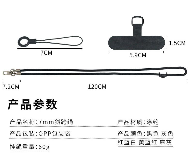 Cordón para teléfono móvil de 7 mm Colgante Halter Cruzado de muñeca Cordón trenzado con junta para tarjeta Cordón pequeño Llavero Cuerda anti-pérdida