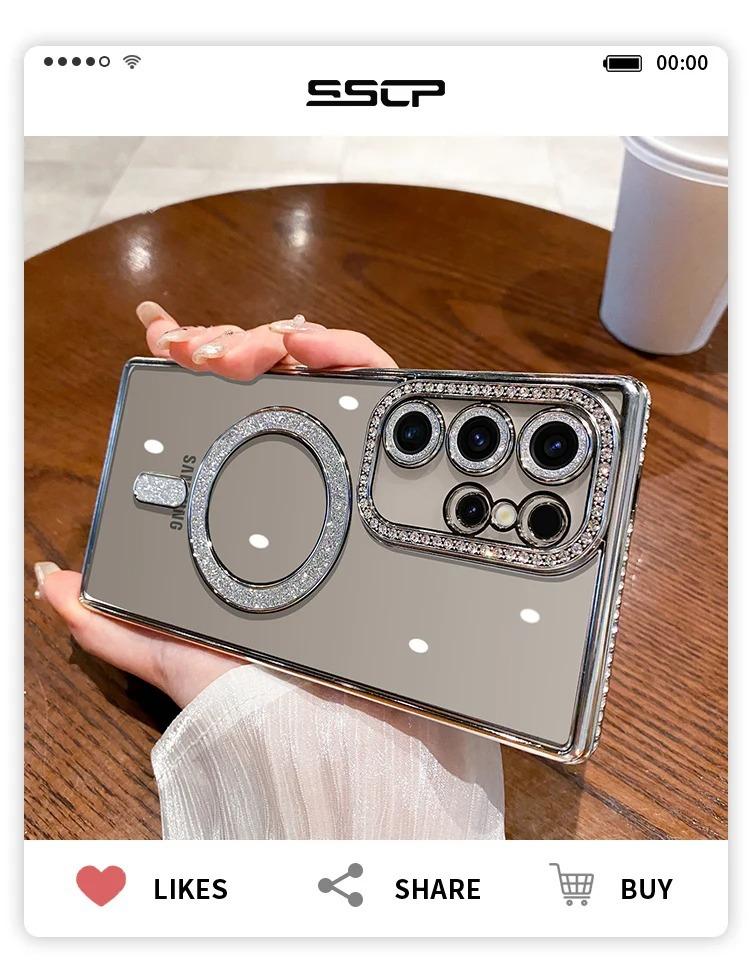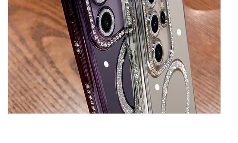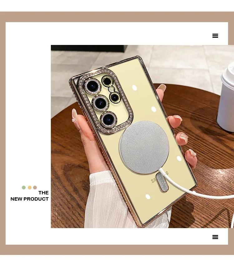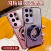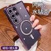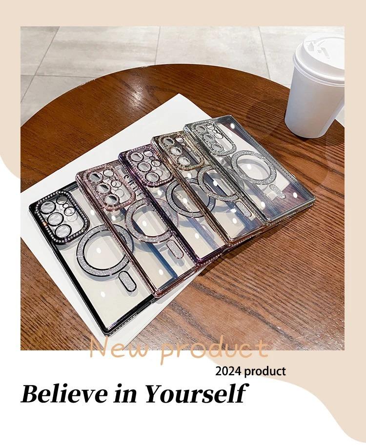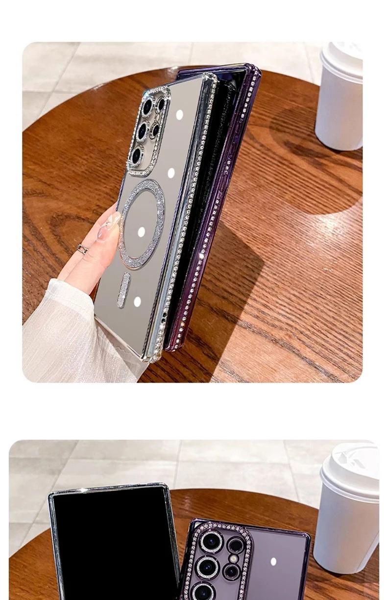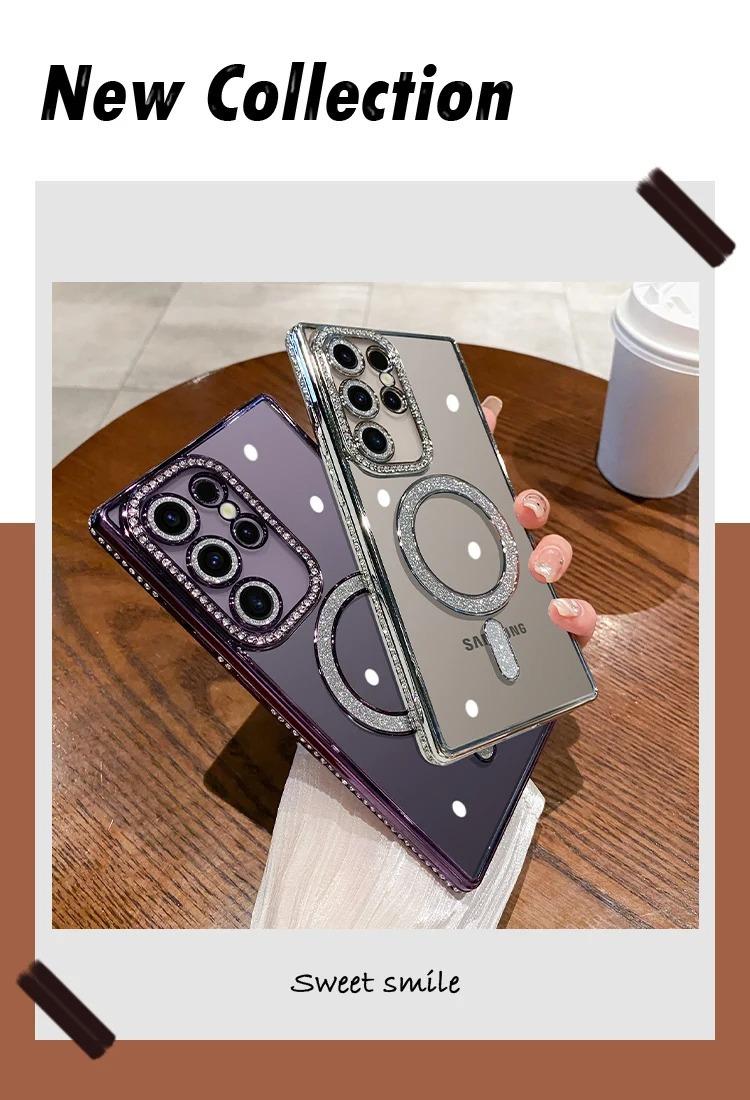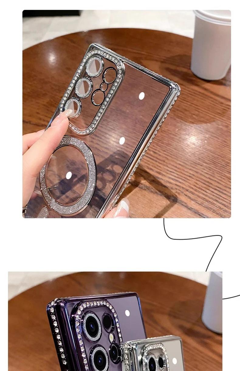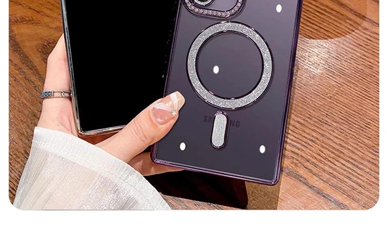 Funda para teléfono Samsung S25 con purpurina y succión magnética, transparente, con protección ultra anticaídas, todo incluido, S24, S23P