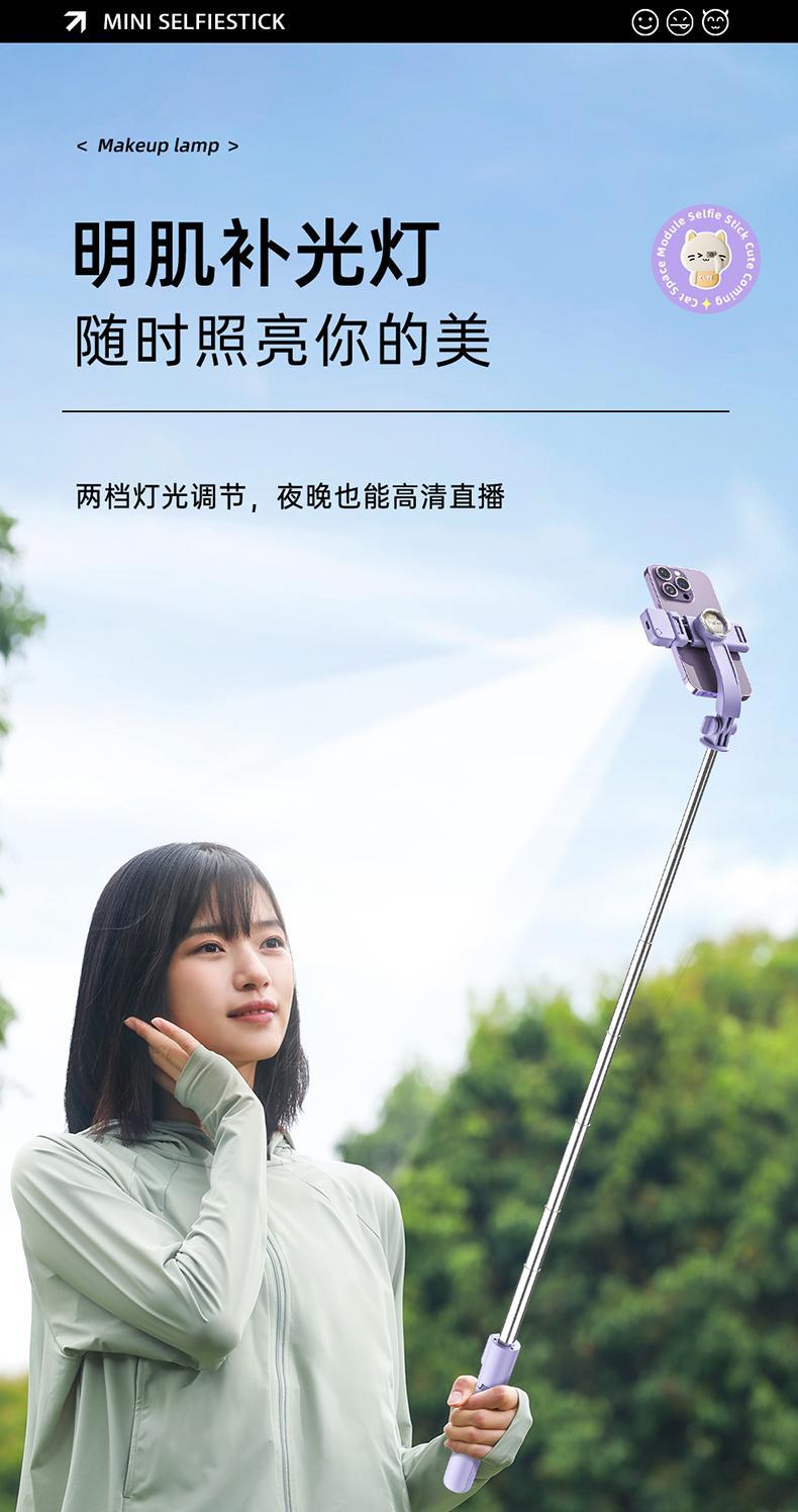 Palo Selfie Trípode Soporte para Teléfono Móvil Video en Vivo Tono de Sacudida Luz para Fotos Multifunción Control Remoto Bluetooth Artefacto