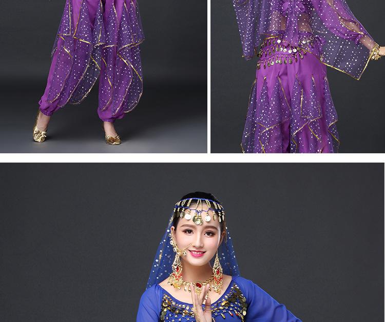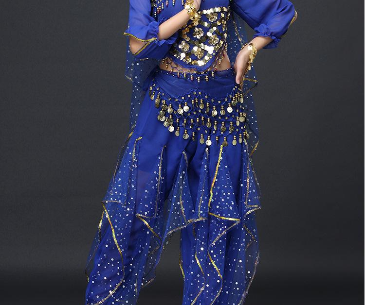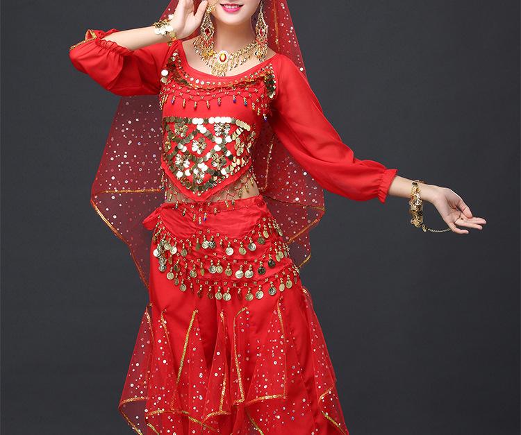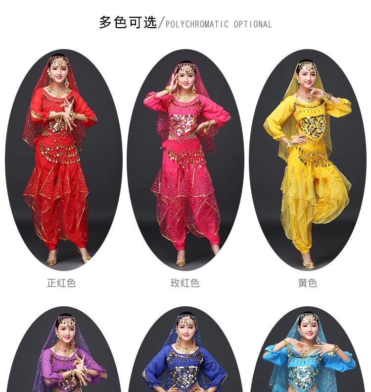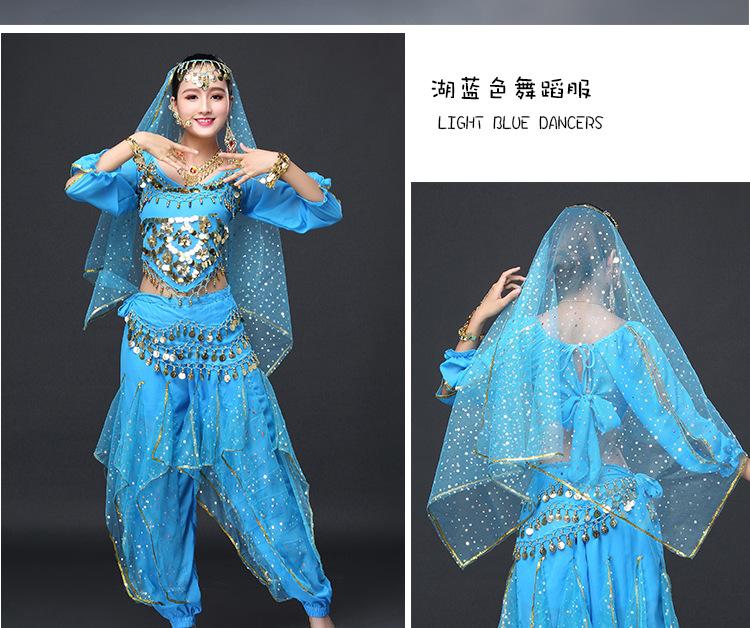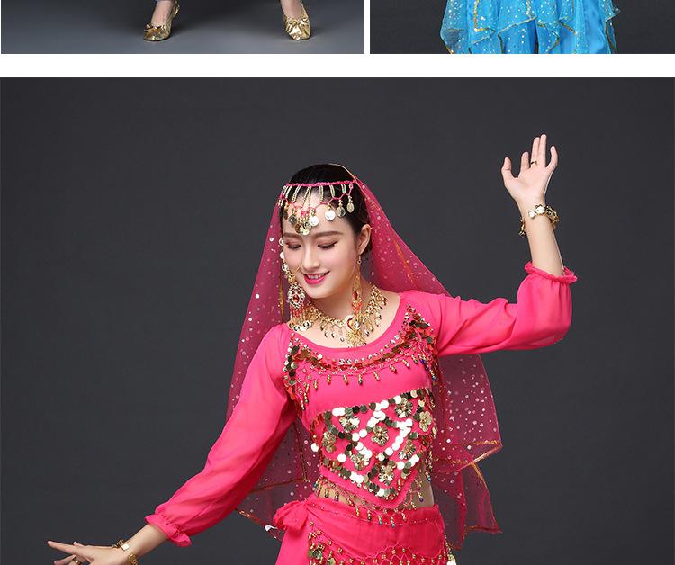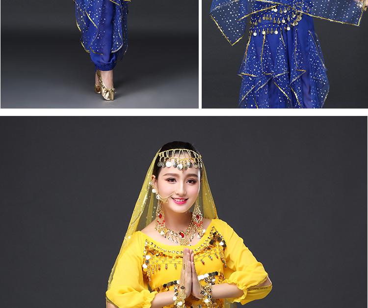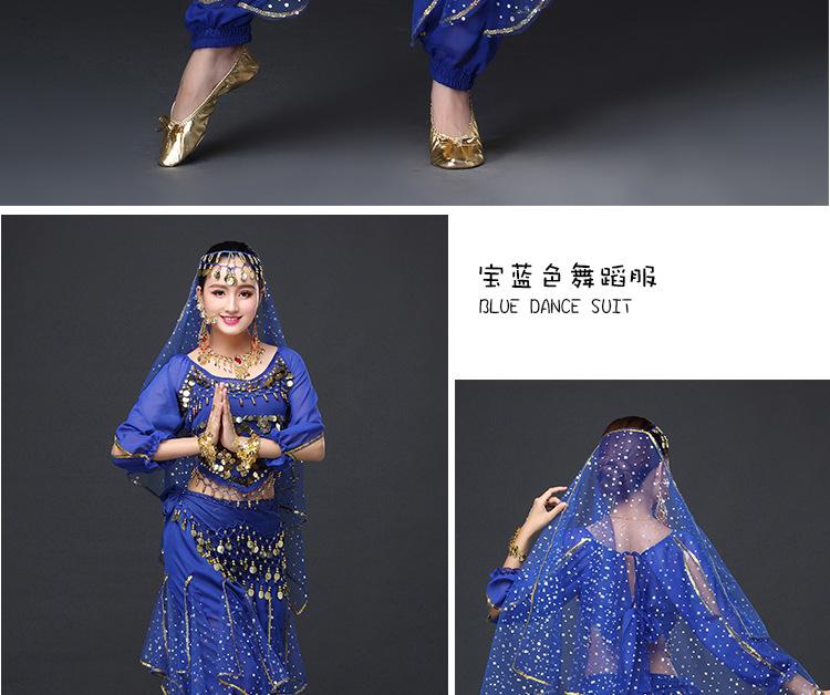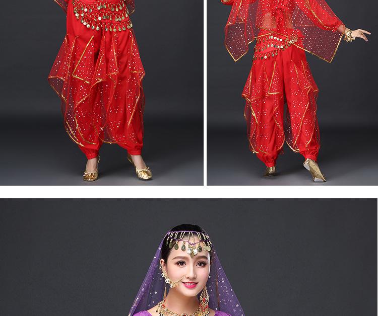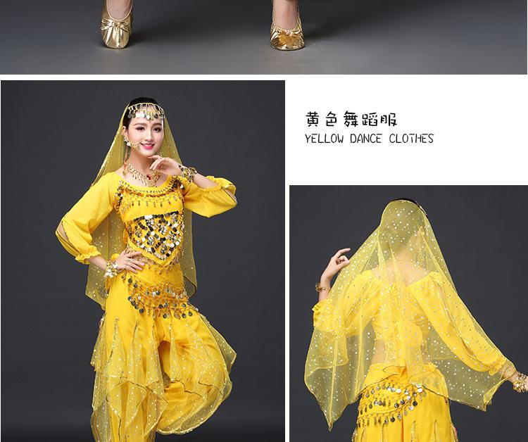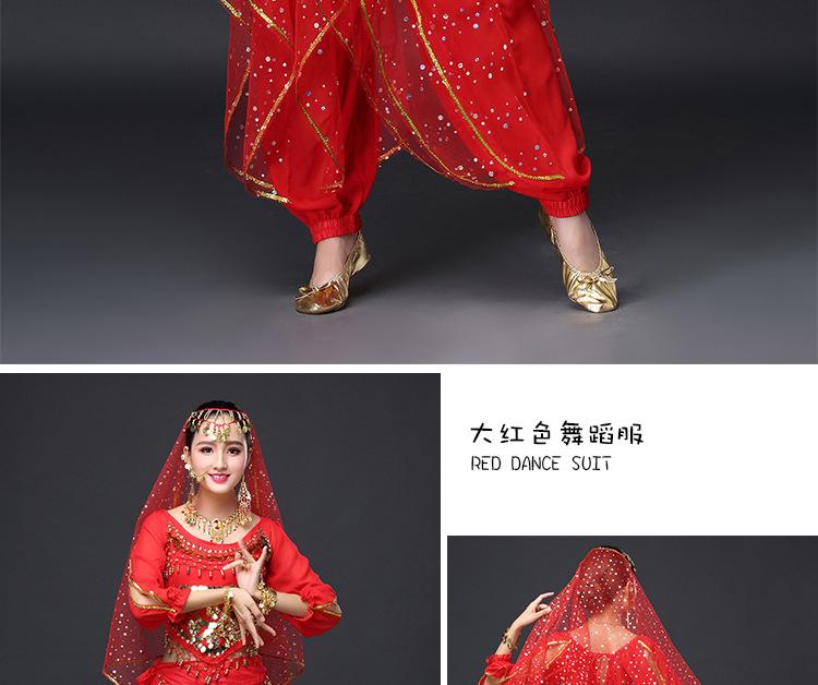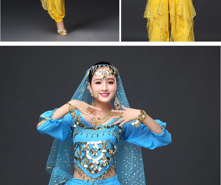| Juego de diez piezasZapatos con suela de piel de vaca | Tops+pantalonescinturón + cadena de cintura + tocado + velo + collar + pendientes+2 pulseras de anillo+cadena para la nariz+zapatos de suela de piel de vaca |