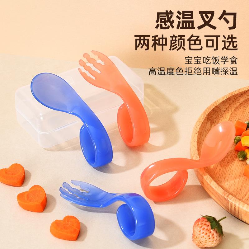 Temperature-sensitive fork spoon Blue (nude), Temperature-sensitive fork spoon red (nude), Temperature-sensiti...