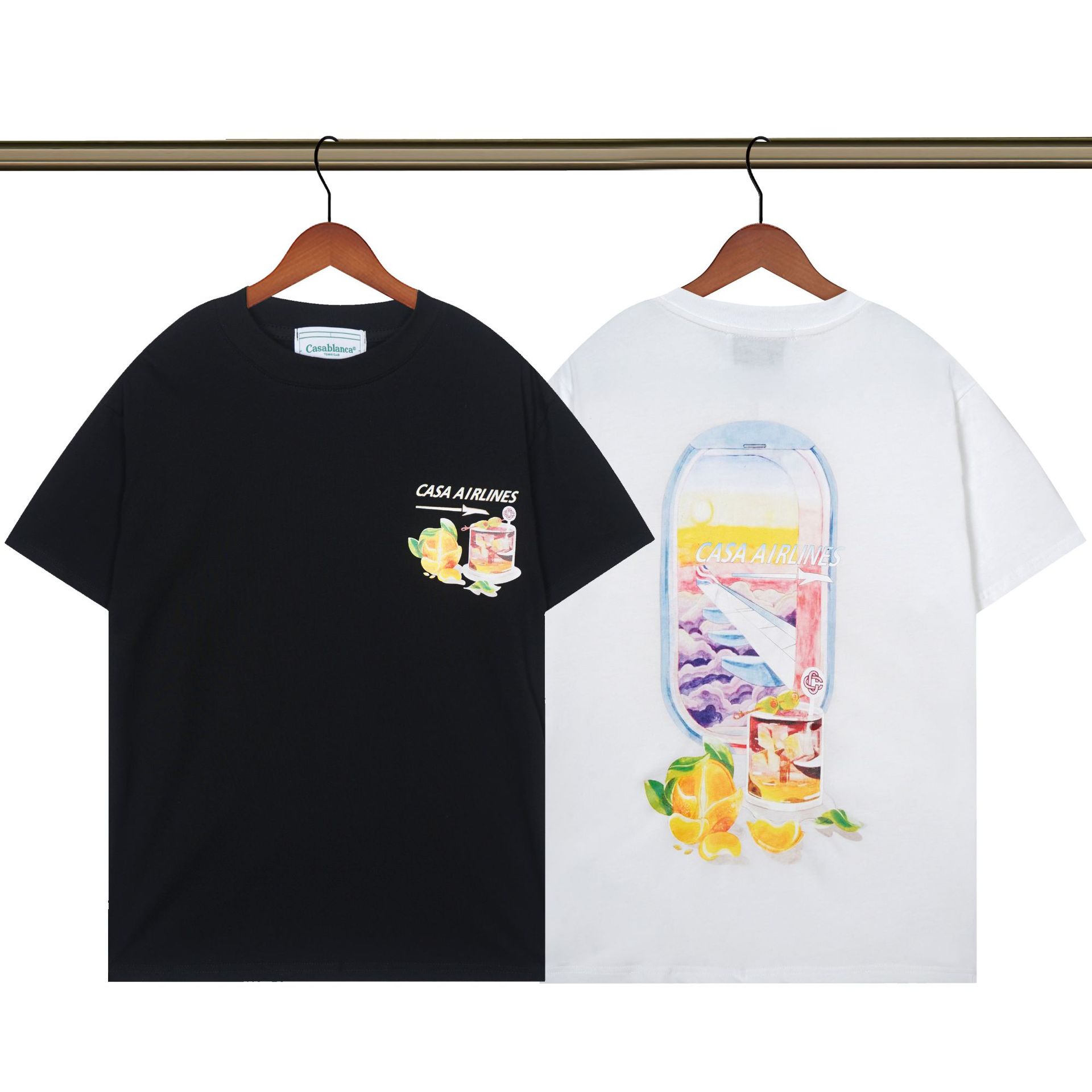 Camiseta de manga corta para hombre y mujer con estampado del logotipo de la bebida de verano de Casablanca de principios de primavera de 2023