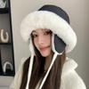 Protector de oídos grueso a prueba de frío para otoño e invierno, sentido de alta gama, cara de cuenca pequeña, moderno 2024, sombrero de pescador cálido de felpa estilo coreano para mujer