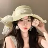 Sombrero de Paja con Lazo de Encaje para Mujer, Protección Solar para Vacaciones de Verano en la Playa, Elegante Sombrero de Sol Dulce Estilo Francés