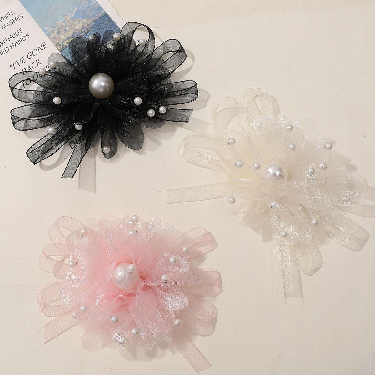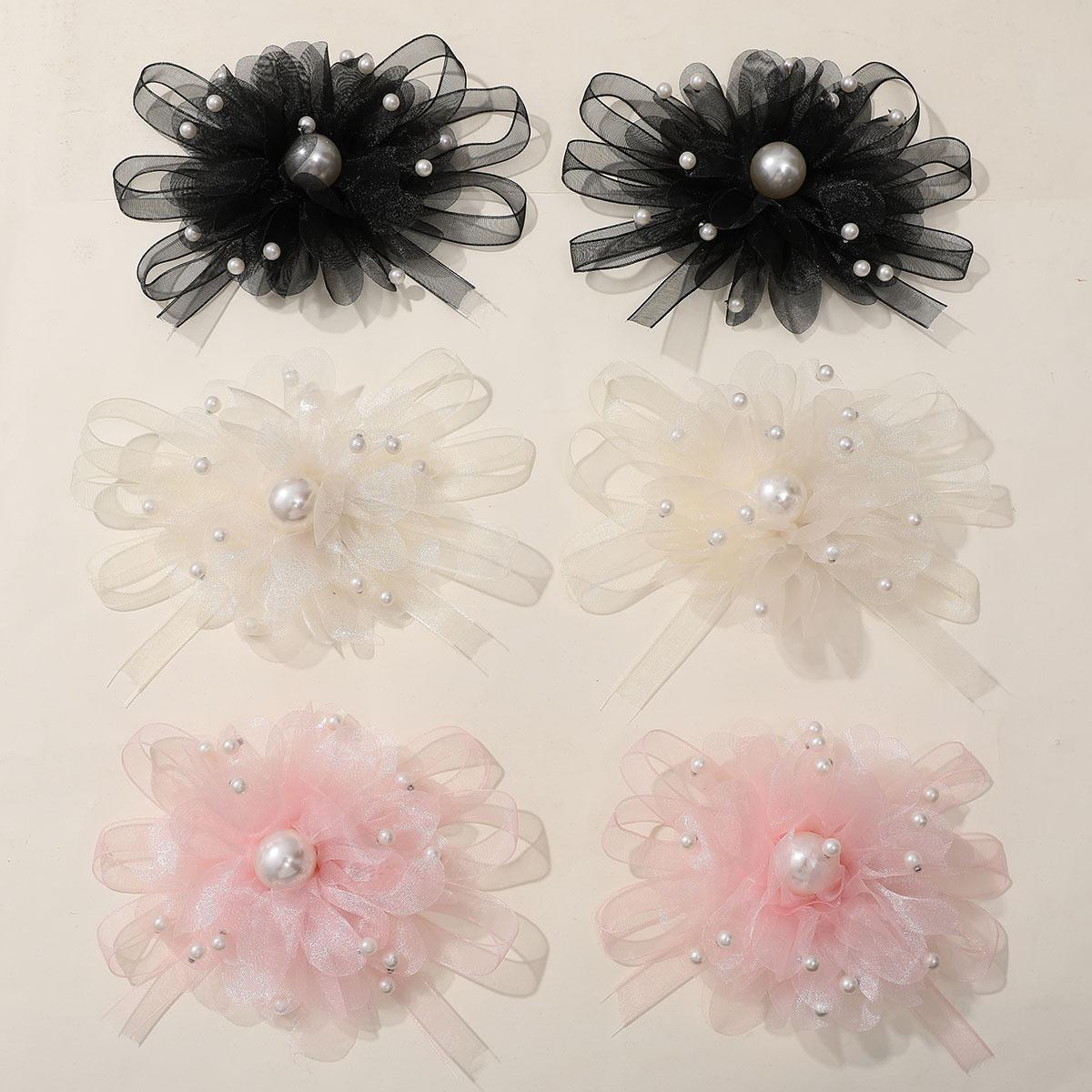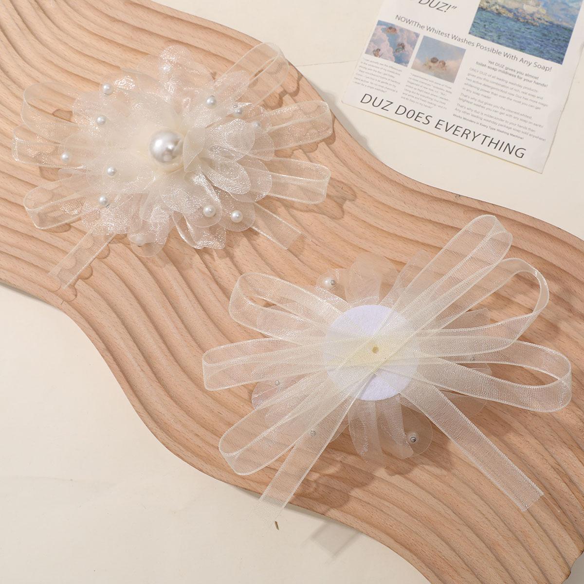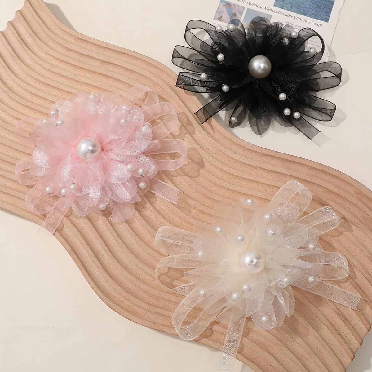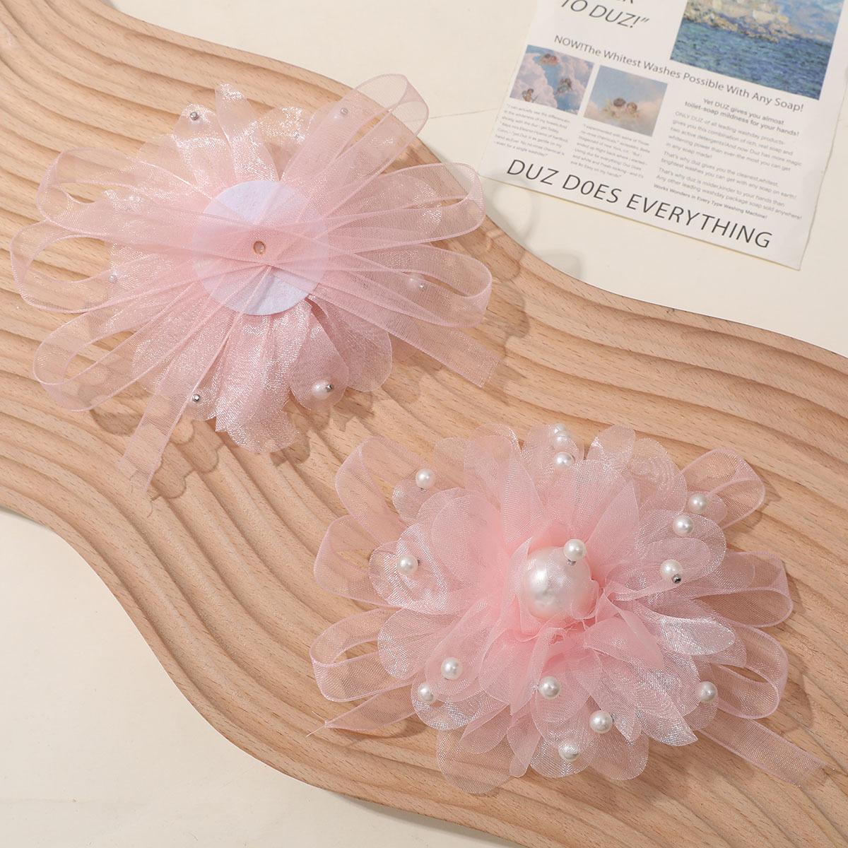 Horquilla para el cabello hecha a mano con diseño de súper hada, imitación de perla, cinta de seda brillante, flor de malla, accesorios para el cabello