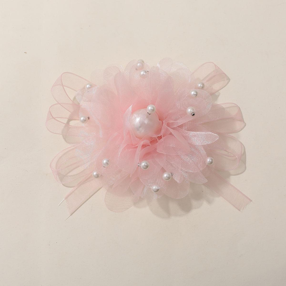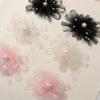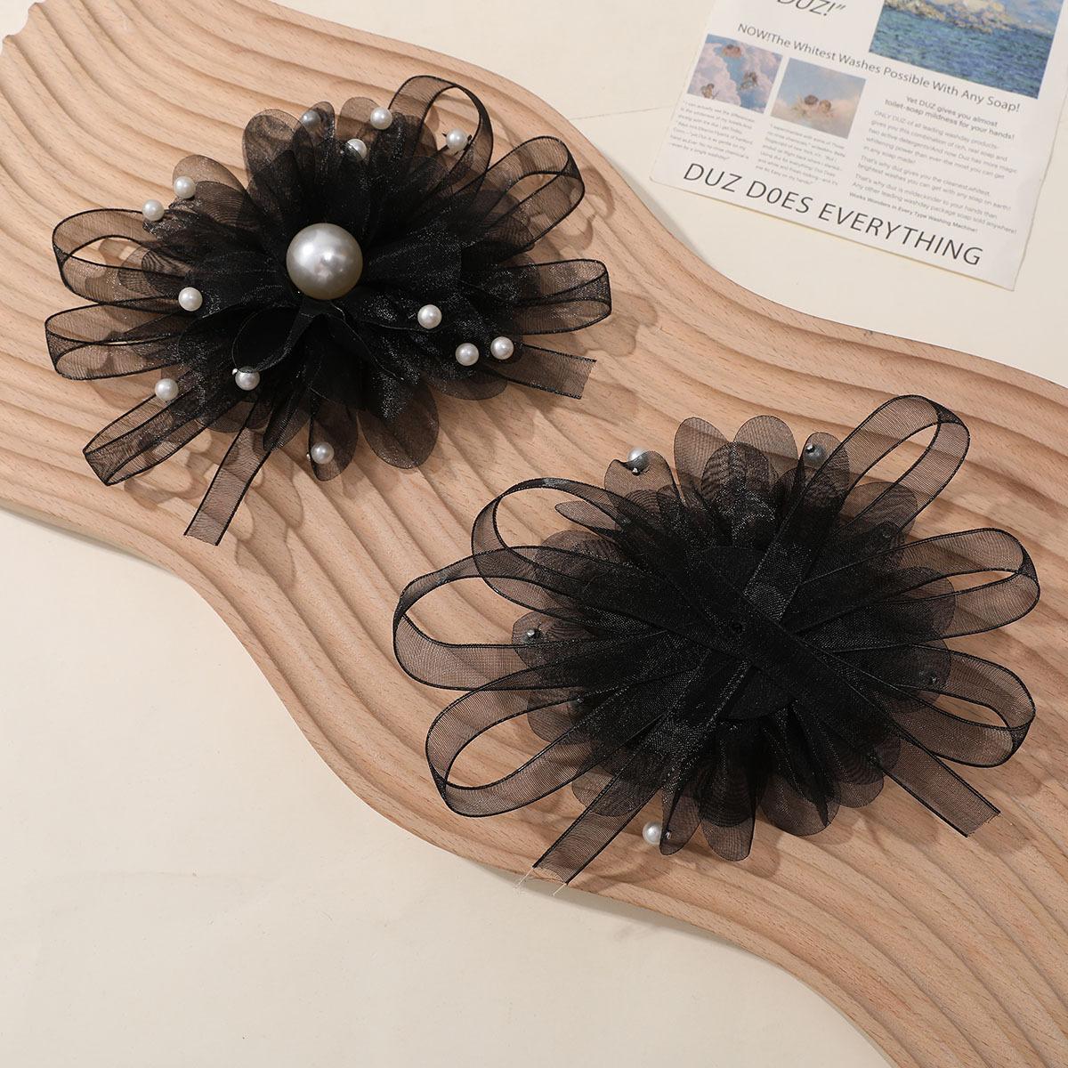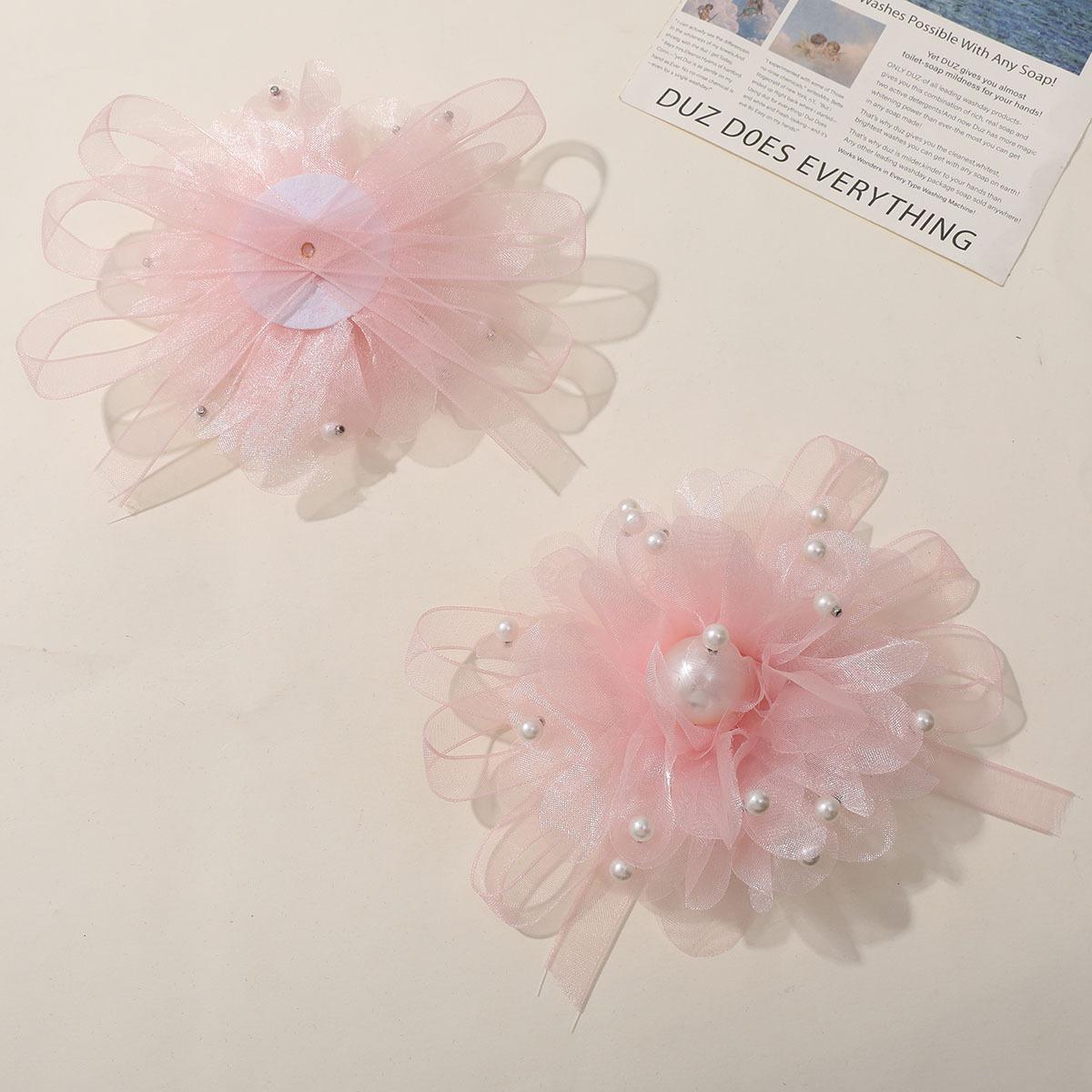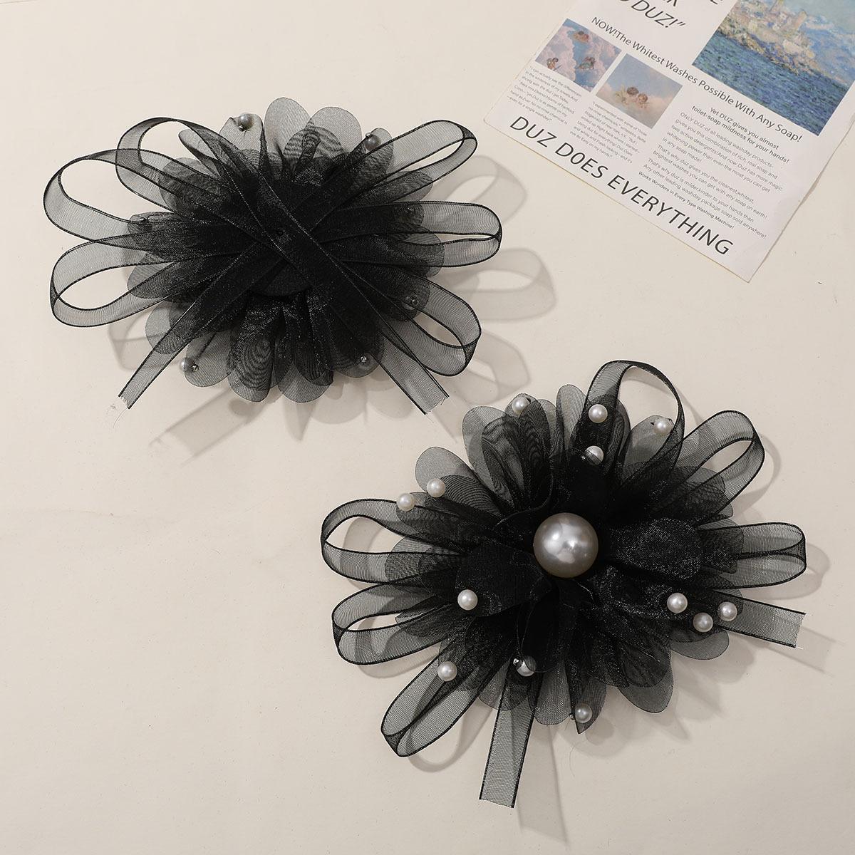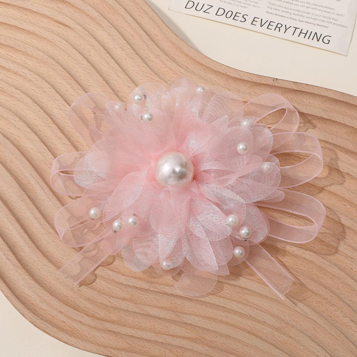 Horquilla para el cabello hecha a mano con diseño de súper hada, imitación de perla, cinta de seda brillante, flor de malla, accesorios para el cabello