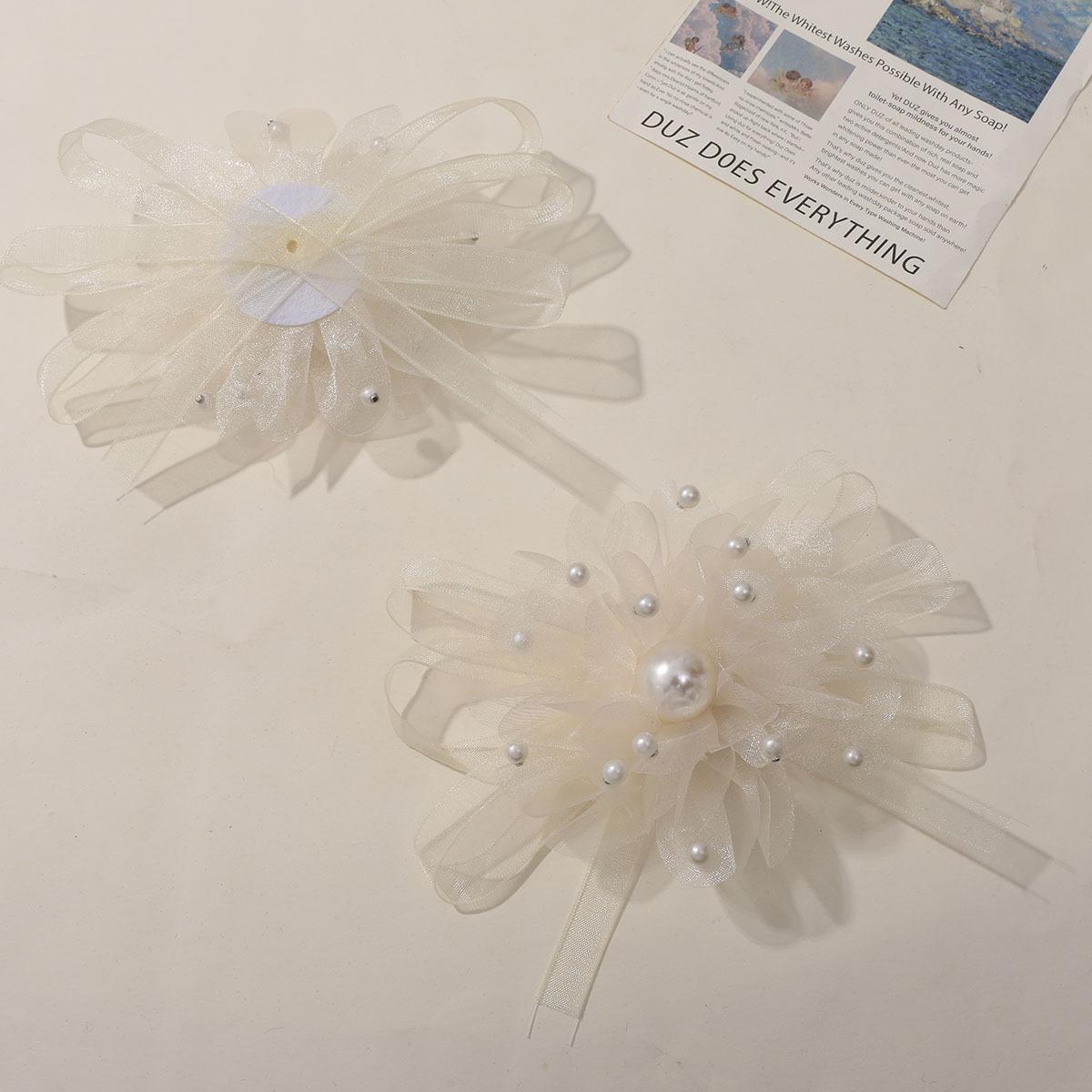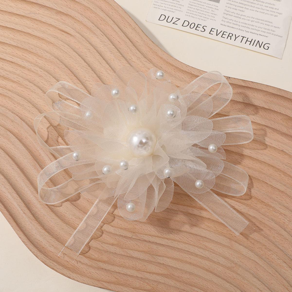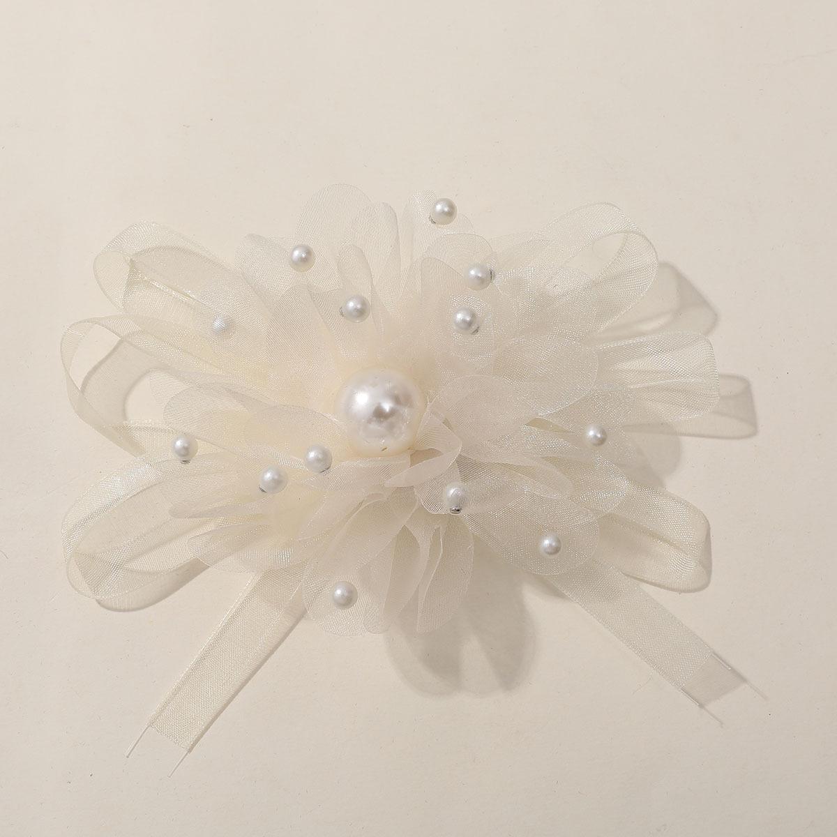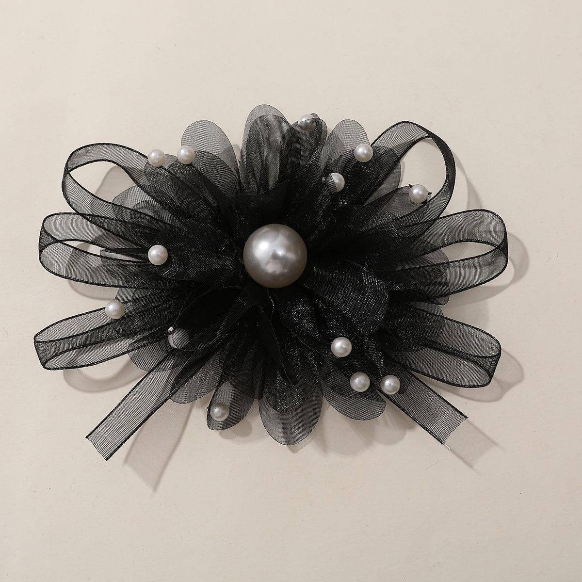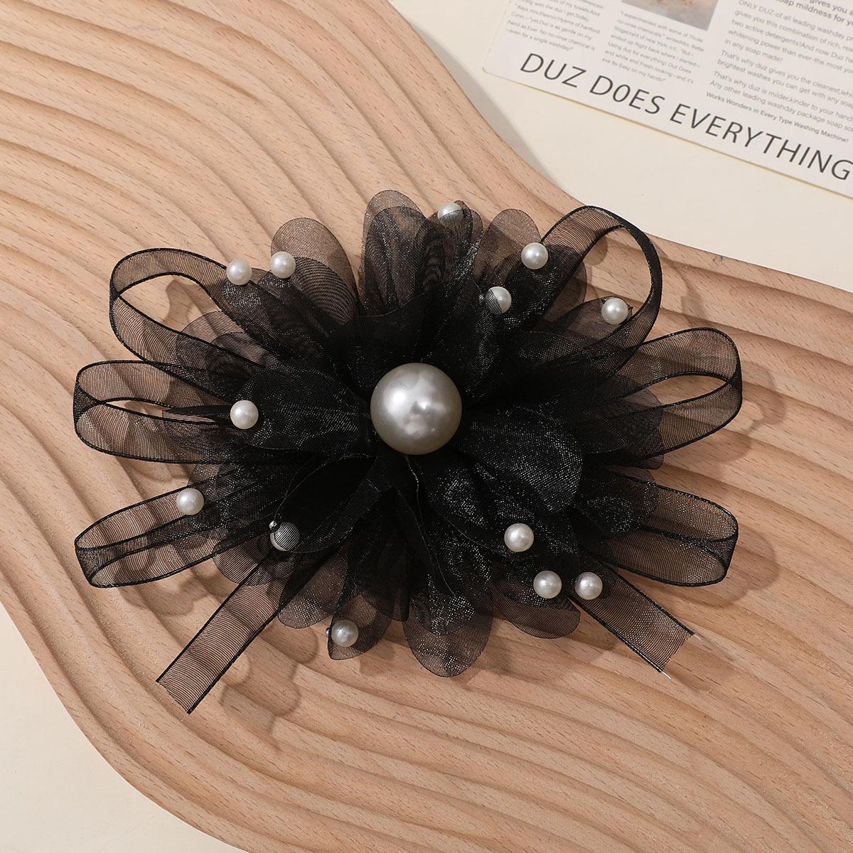 Horquilla para el cabello hecha a mano con diseño de súper hada, imitación de perla, cinta de seda brillante, flor de malla, accesorios para el cabello