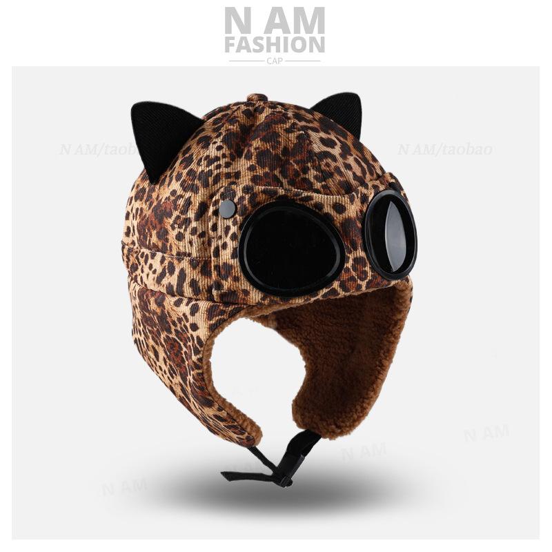 Small ear badge pilot sunglasses lei feng hat off-white, Small ear badge pilot sunglasses lei feng hat leopard...