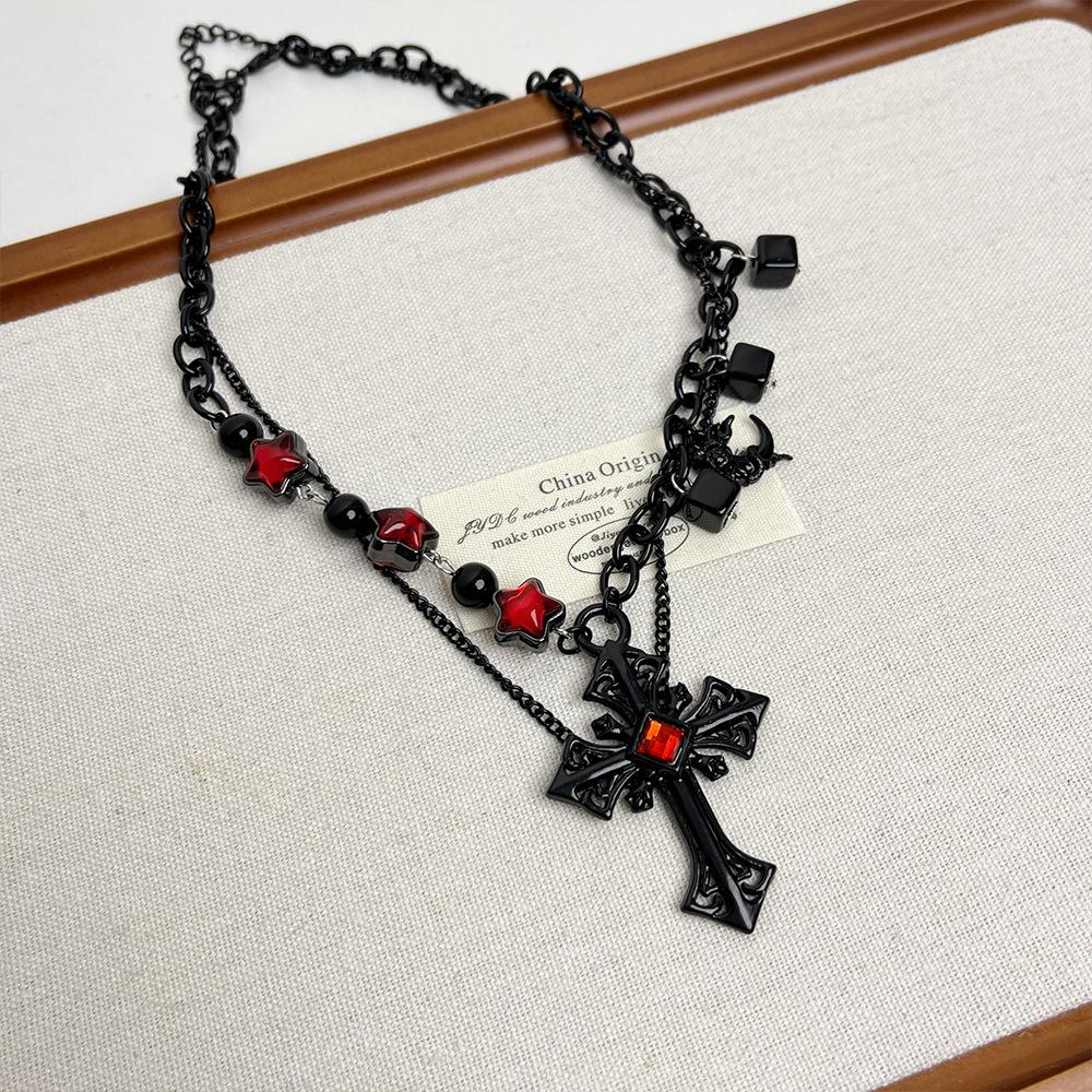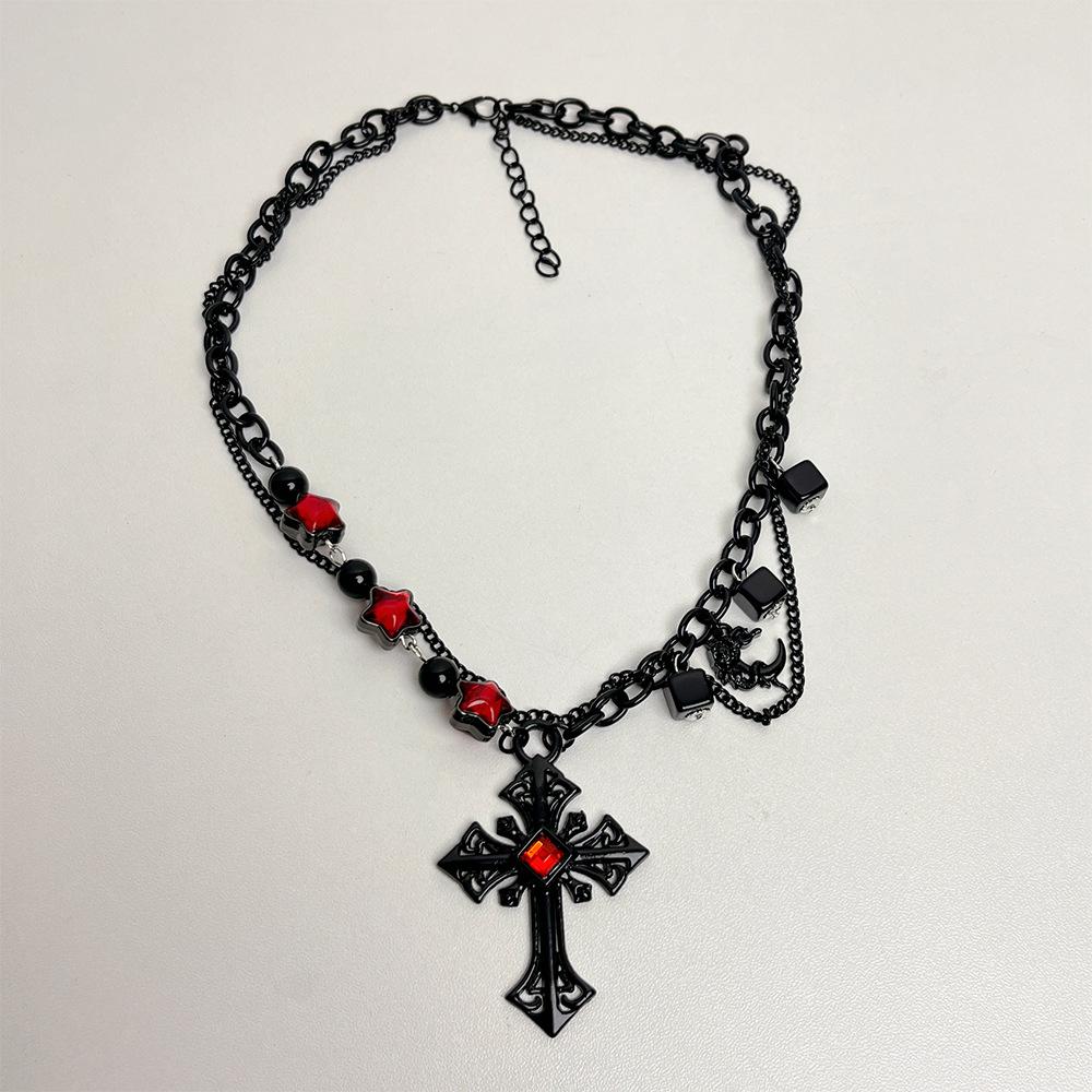Collar con colgante de cruz negra estilo gótico con diseño punk de nicho, cadena de clavícula con encanto, accesorios Kuabi