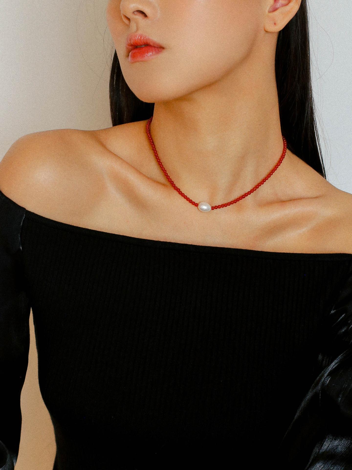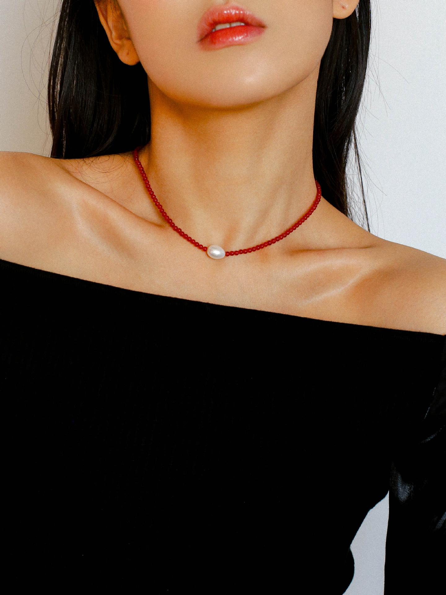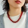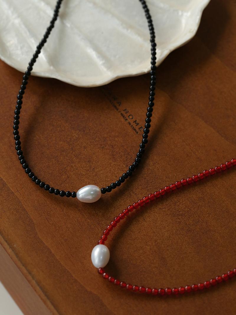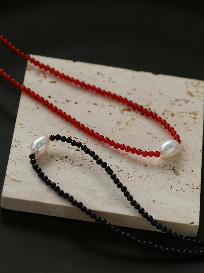 Collar de cuentas de ágata roja con una sola perla europea y americana, estilo casual de nicho femenino, collar de ágata negra.
