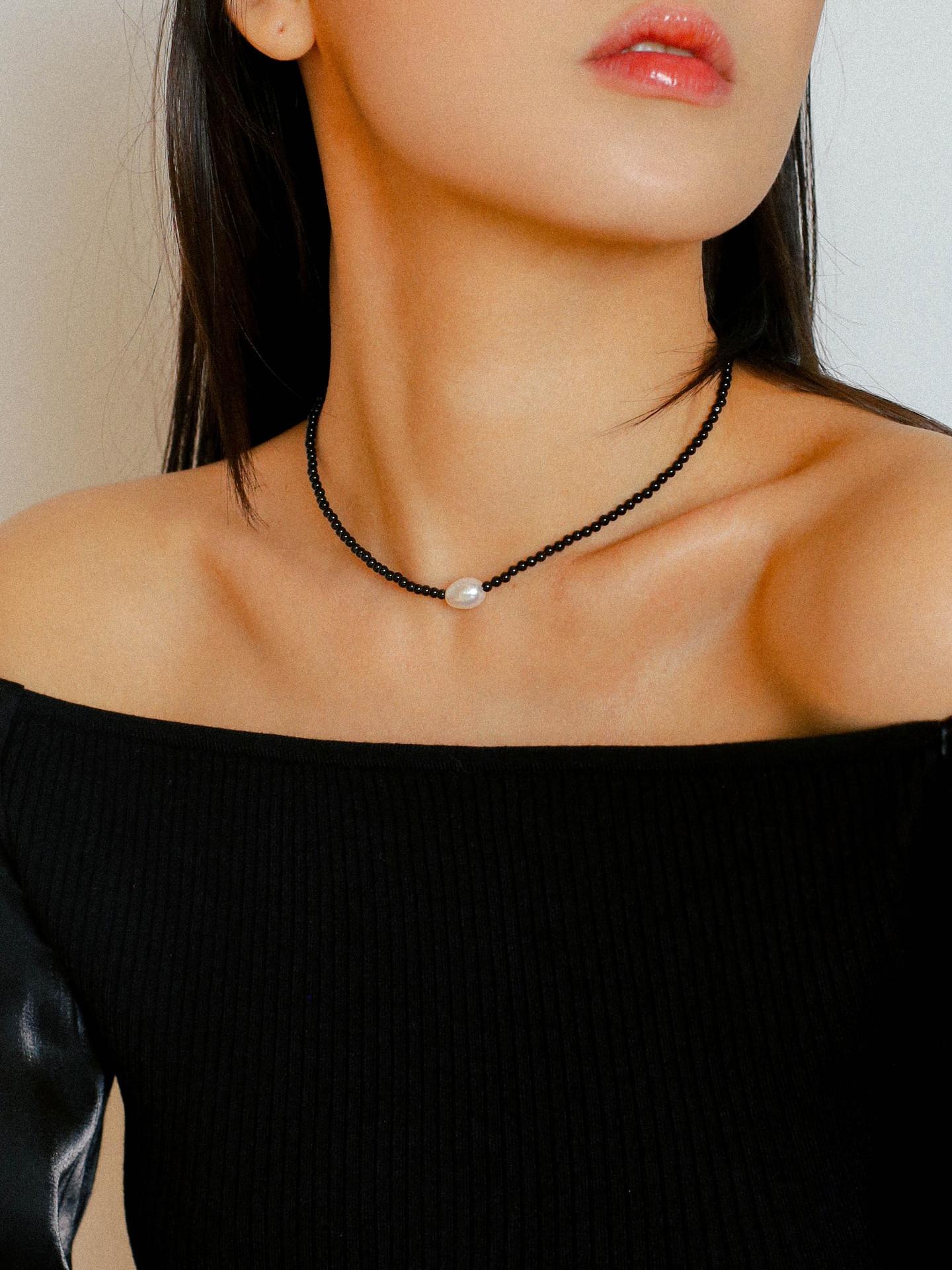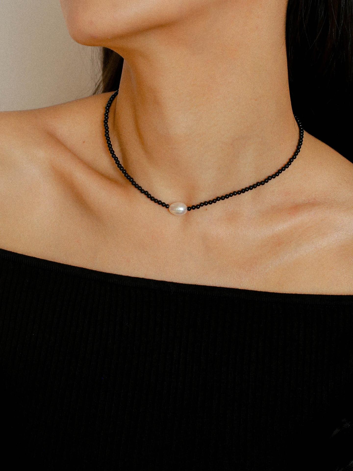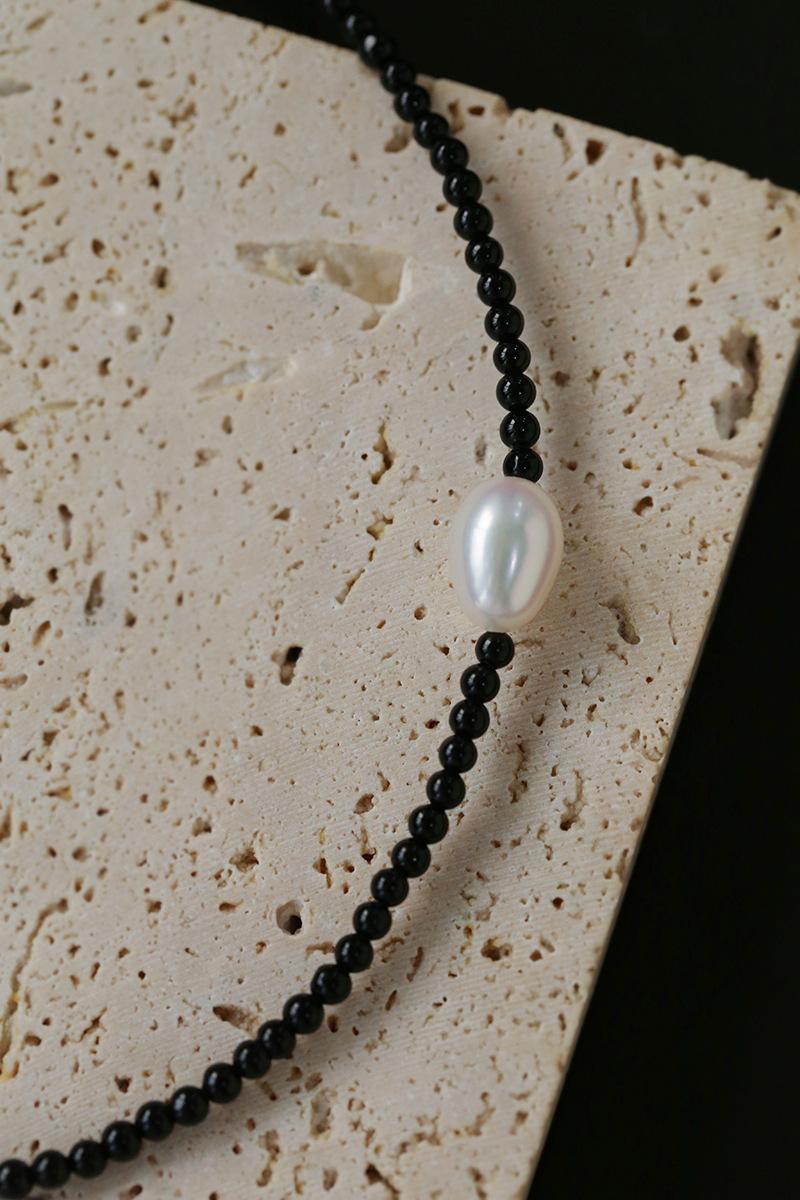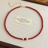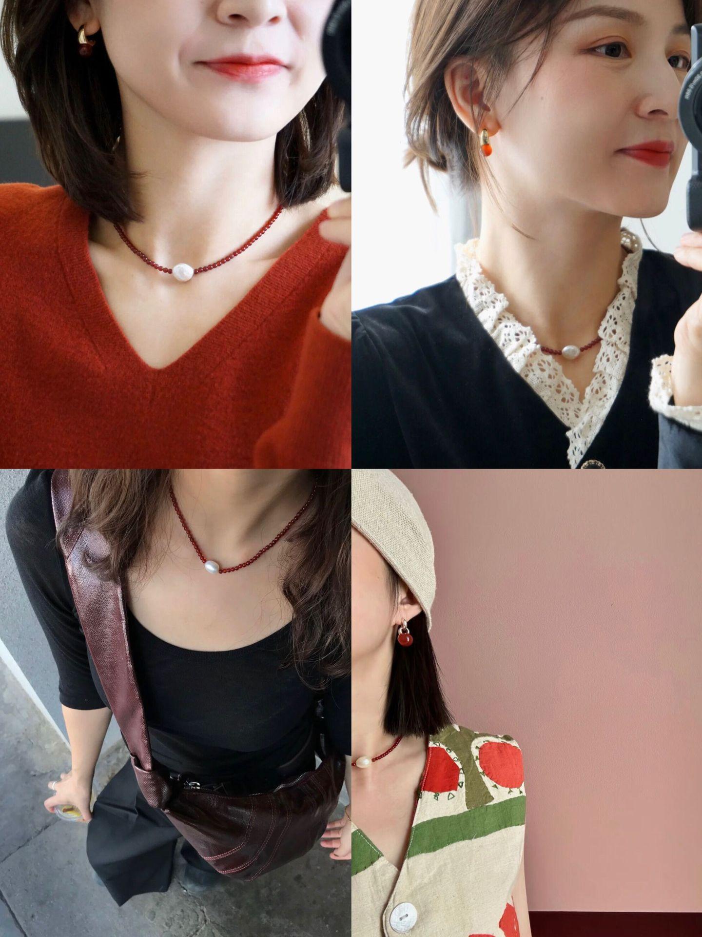 Collar de cuentas de ágata roja con una sola perla europea y americana, estilo casual de nicho femenino, collar de ágata negra.