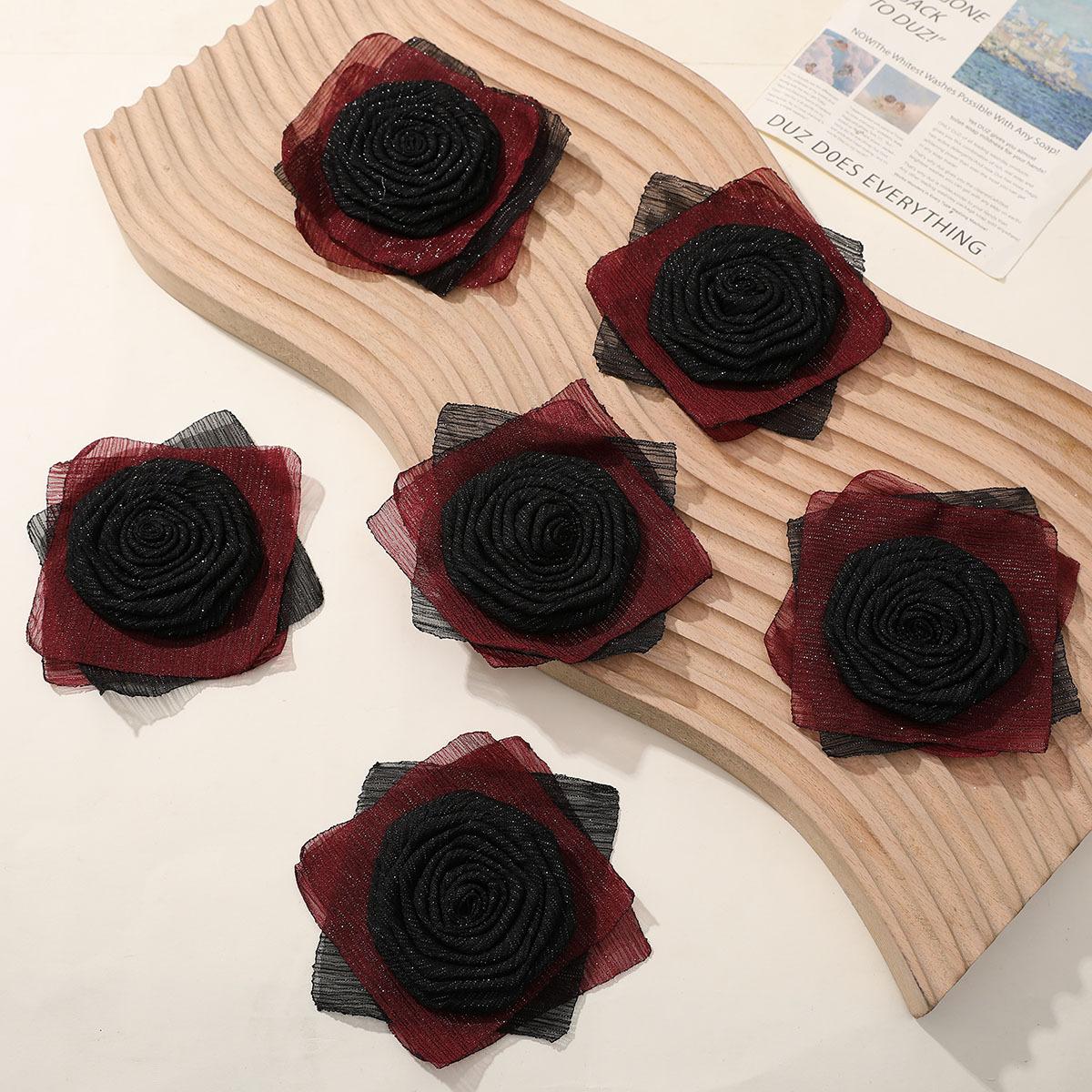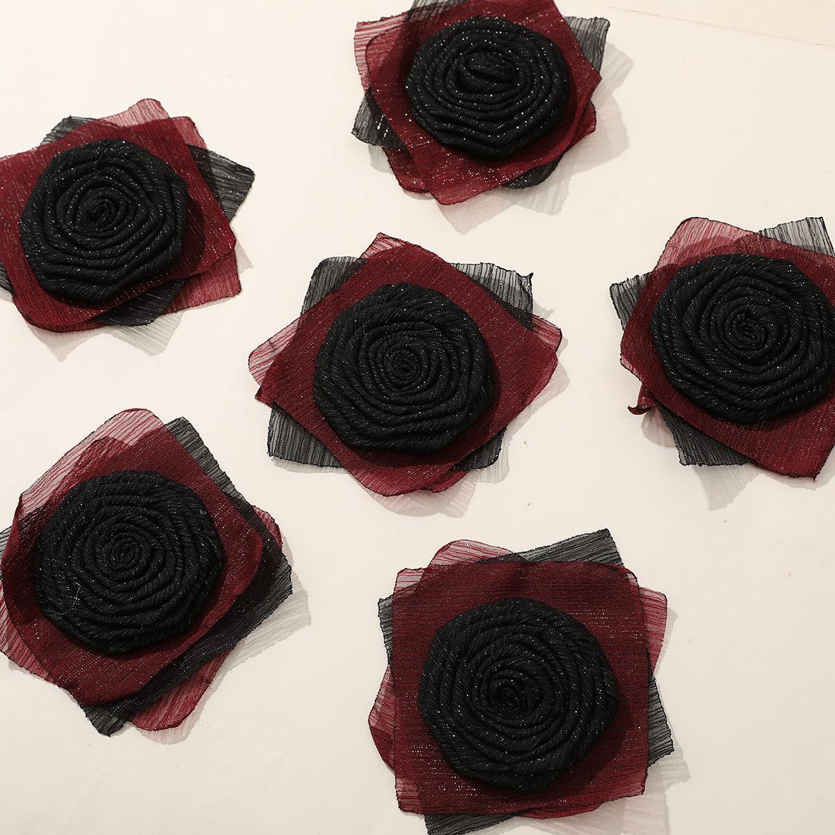 Horquilla para el pelo de gasa rizada estilo Spice Girl, color rosa de seda brillante, hecha a mano, cadena para el cuello, ramillete, accesorios de ropa