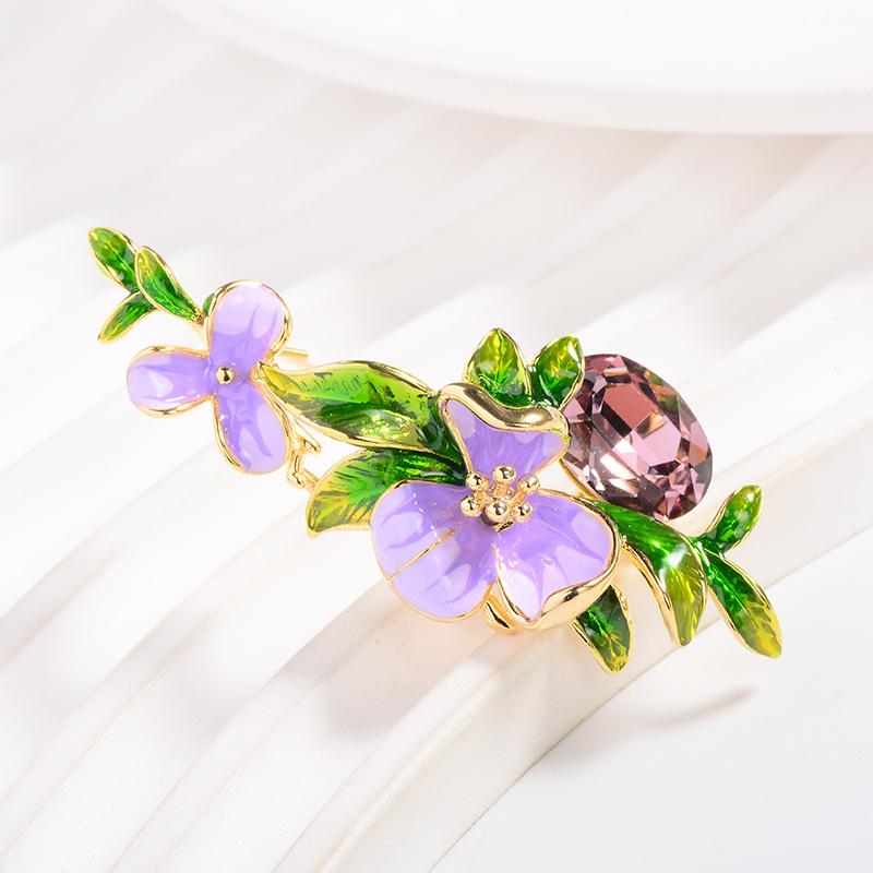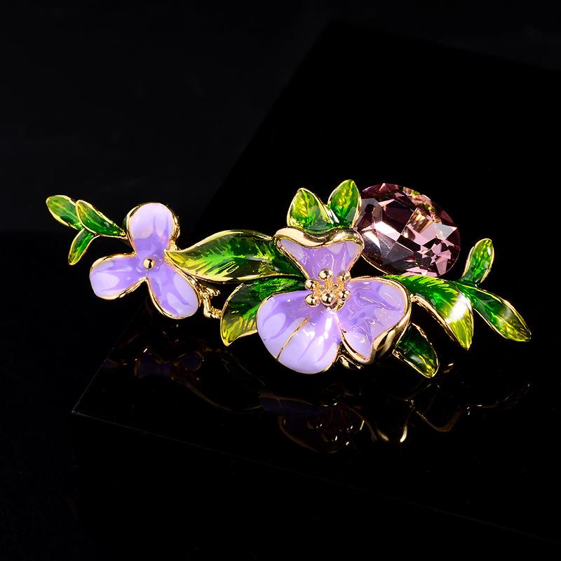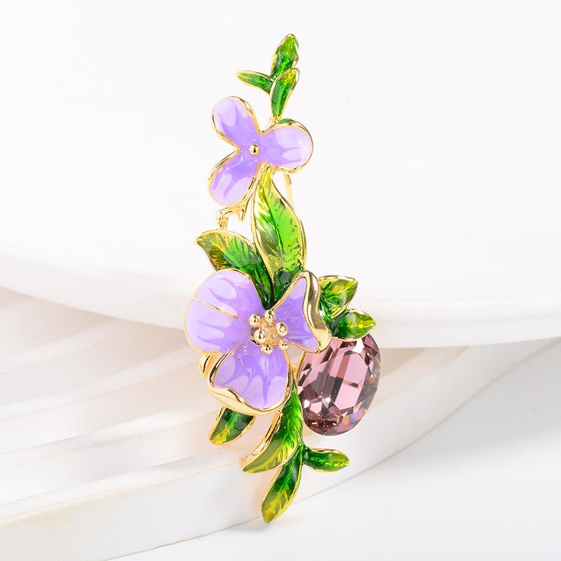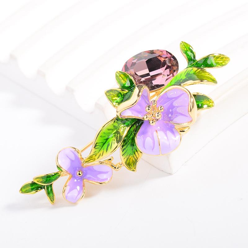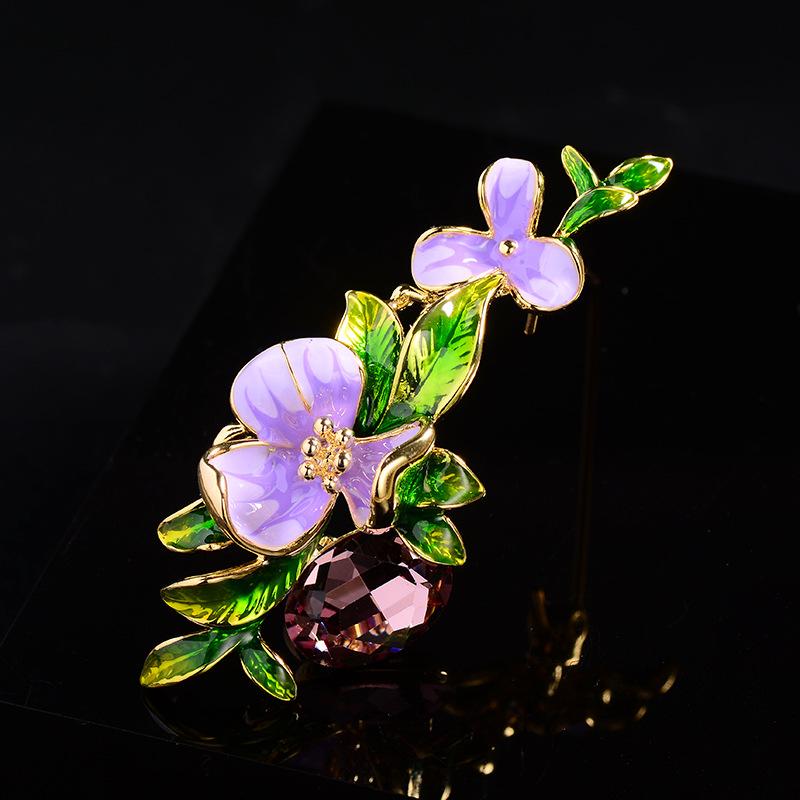Broche de flores frescas y pequeñas de moda, diseño de nicho, exquisito broche de color esmaltado, accesorios de traje de cristal de imitación de alta gama