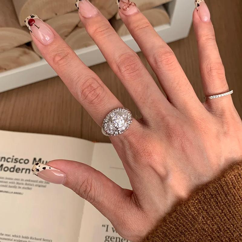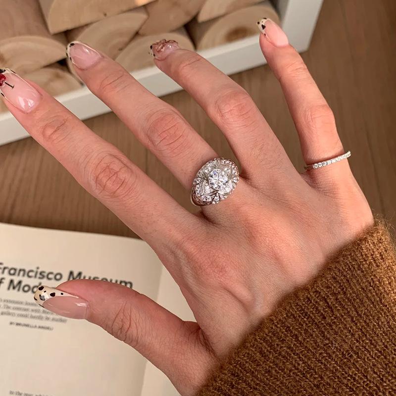 Anillo Exquisito Geométrico Super Flash para Mujer, Elegante, Lujoso, Moderno y Versátil Anillo Abierto Plateado S925 Anillo para Dedo Índice Trendy