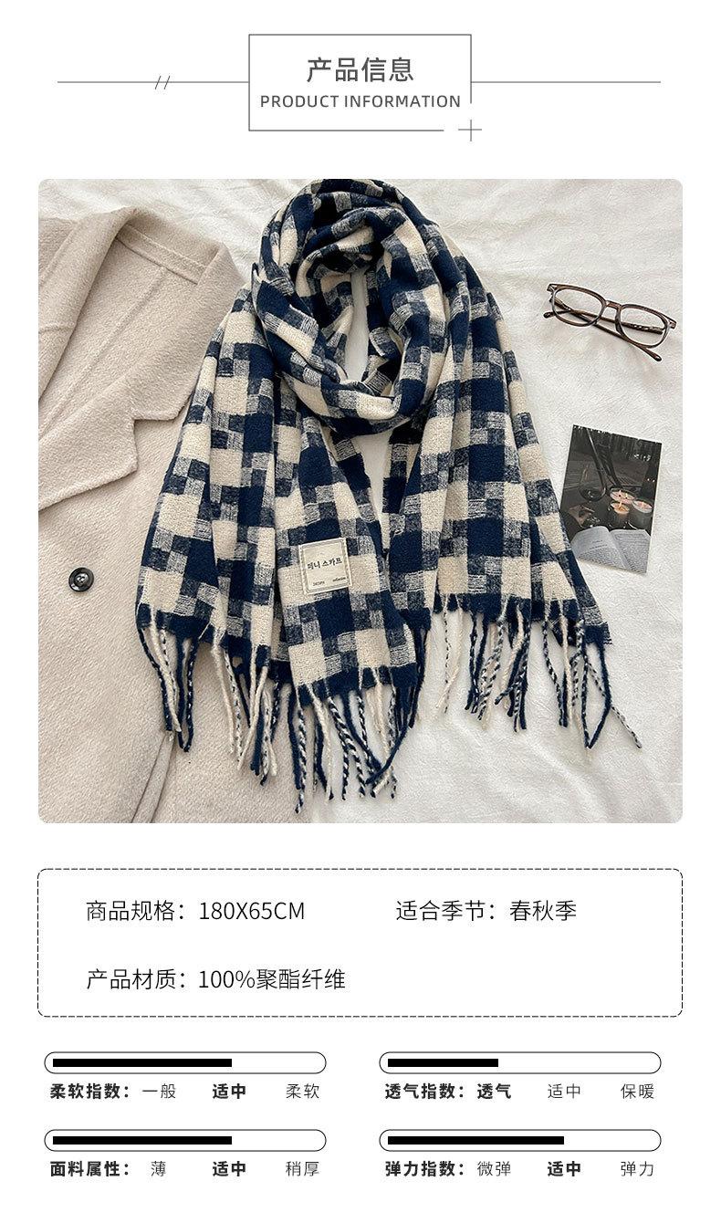Bufanda de Cuadros Maillard Mujer Invierno 2024 Nuevo Estilo Coreano Versátil Estudiante Lindo Pareja Bufanda Cálida Gruesa