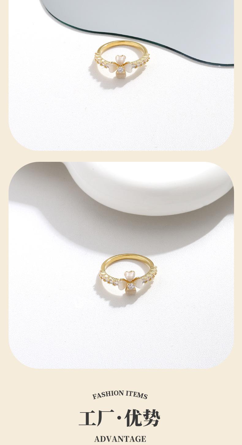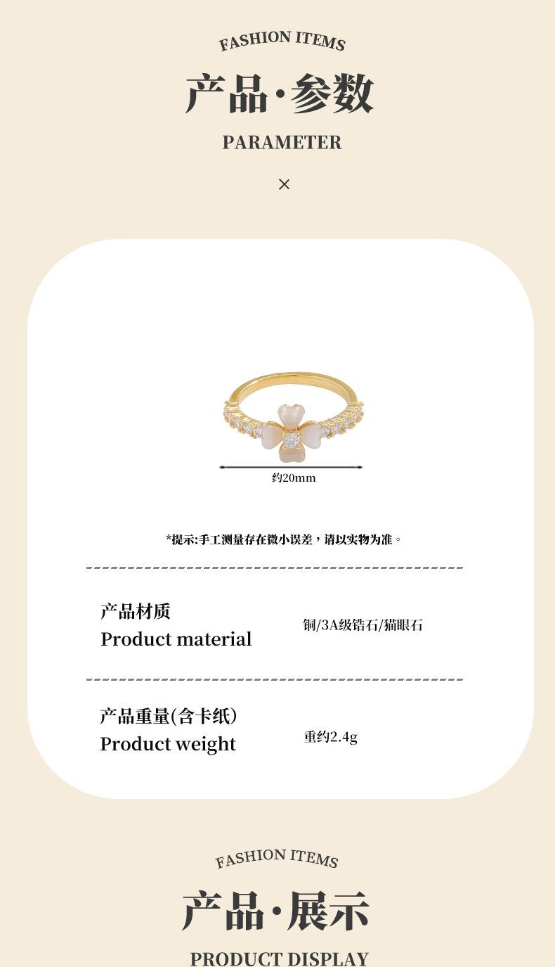 Anillo Cerrado Trébol de Cuatro Hojas Piedra Ojo de Gato Anillo Elegante Nicho para Mujer Estilo Lujo Accesible Moda Personalizada Anillo para Dedo Índice