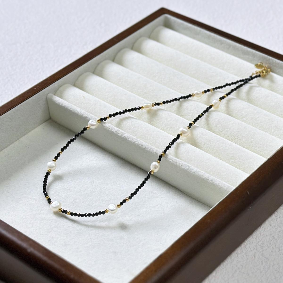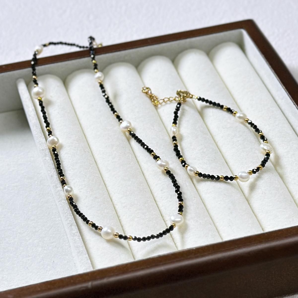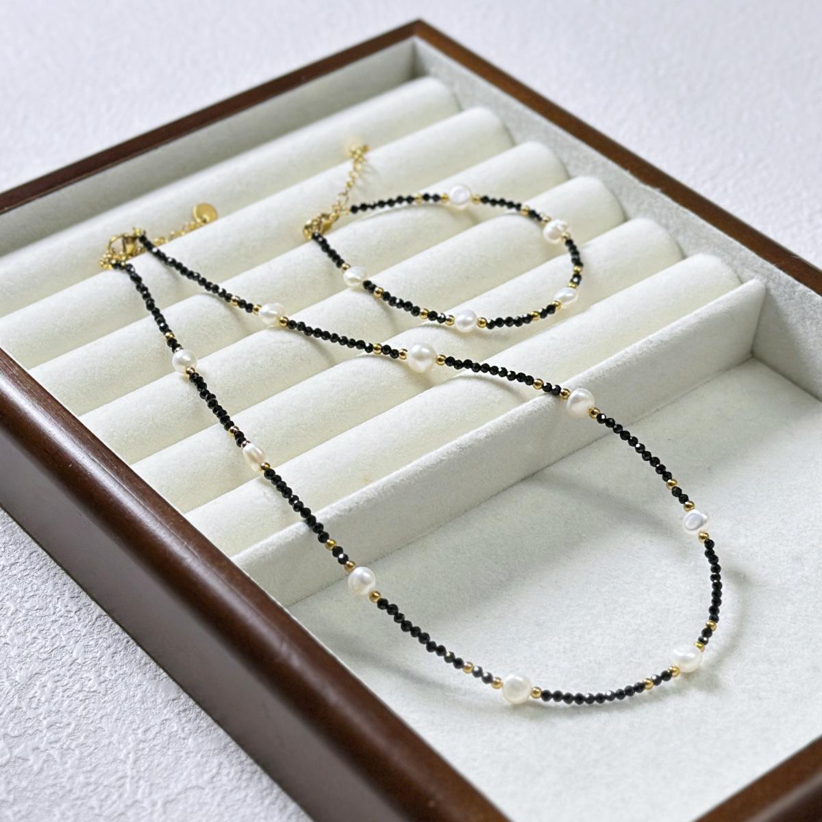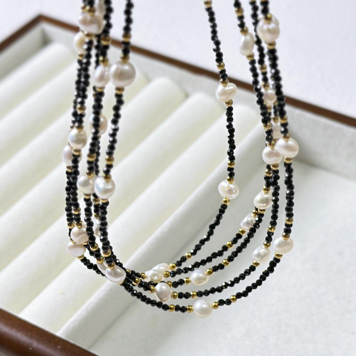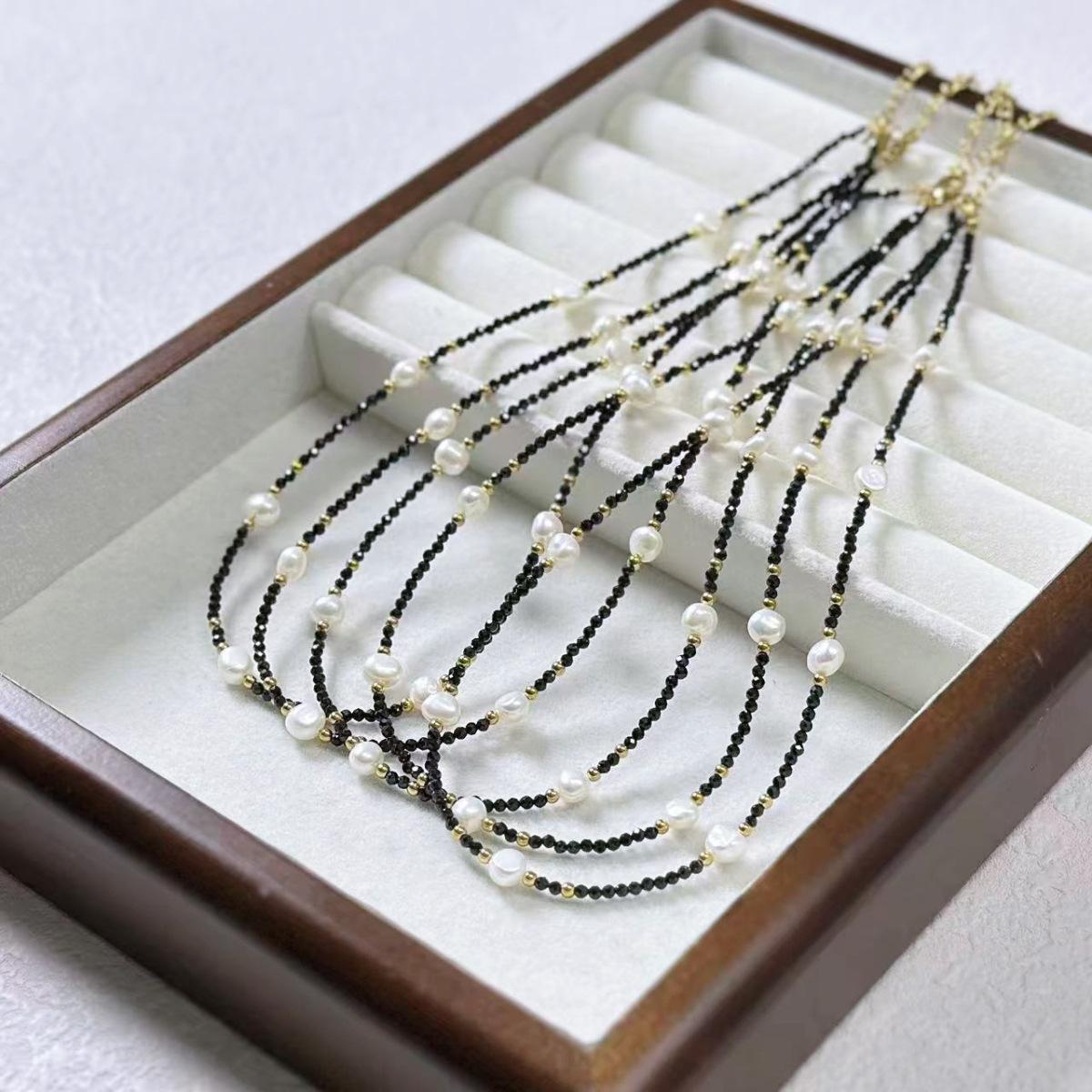 Moda Coreana Collar de Perlas Naturales de Agua Dulce para Mujer Espinela Negra Completa Cielo Estrellado Collar Pulsera Cadena para Suéter de Alta Gama