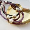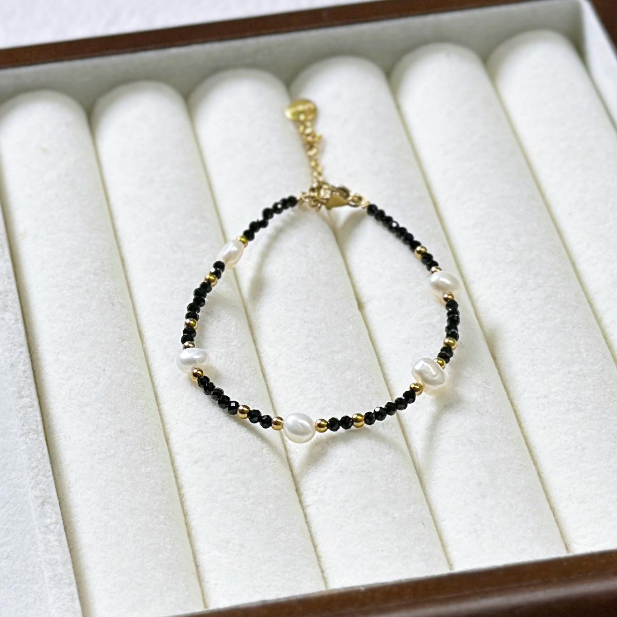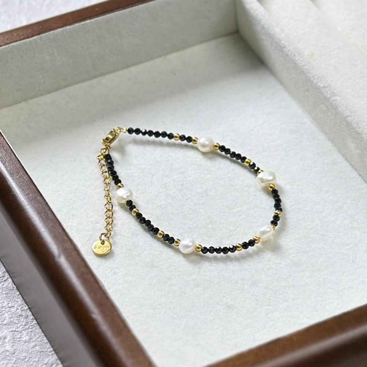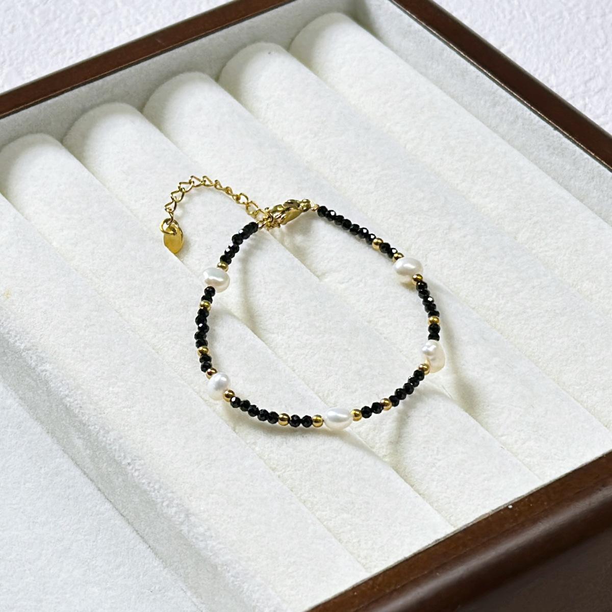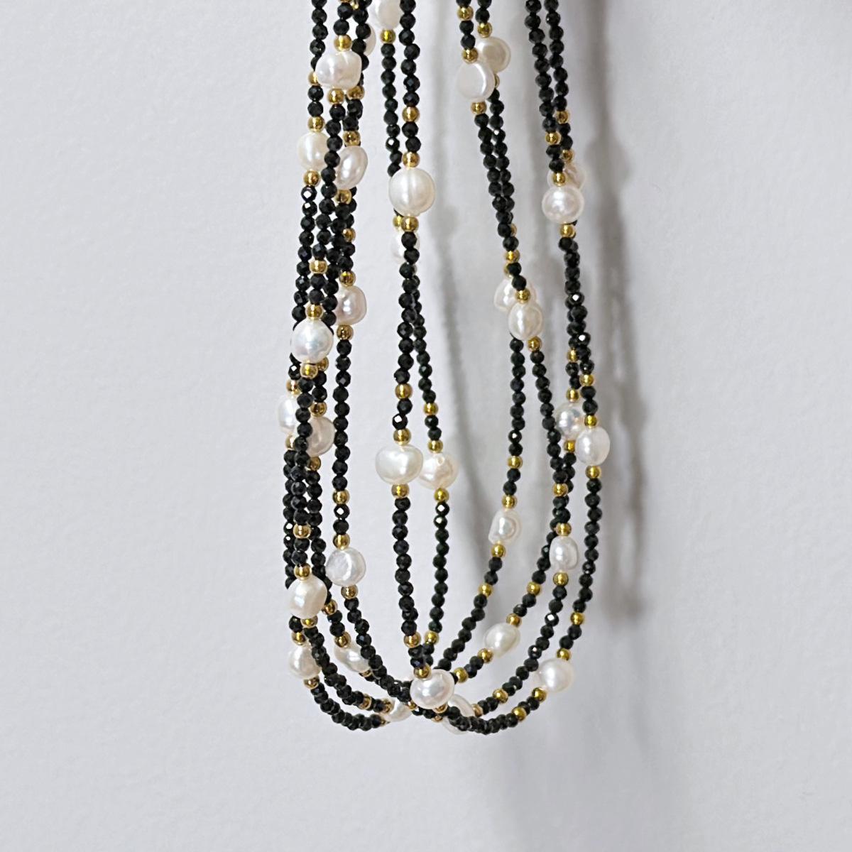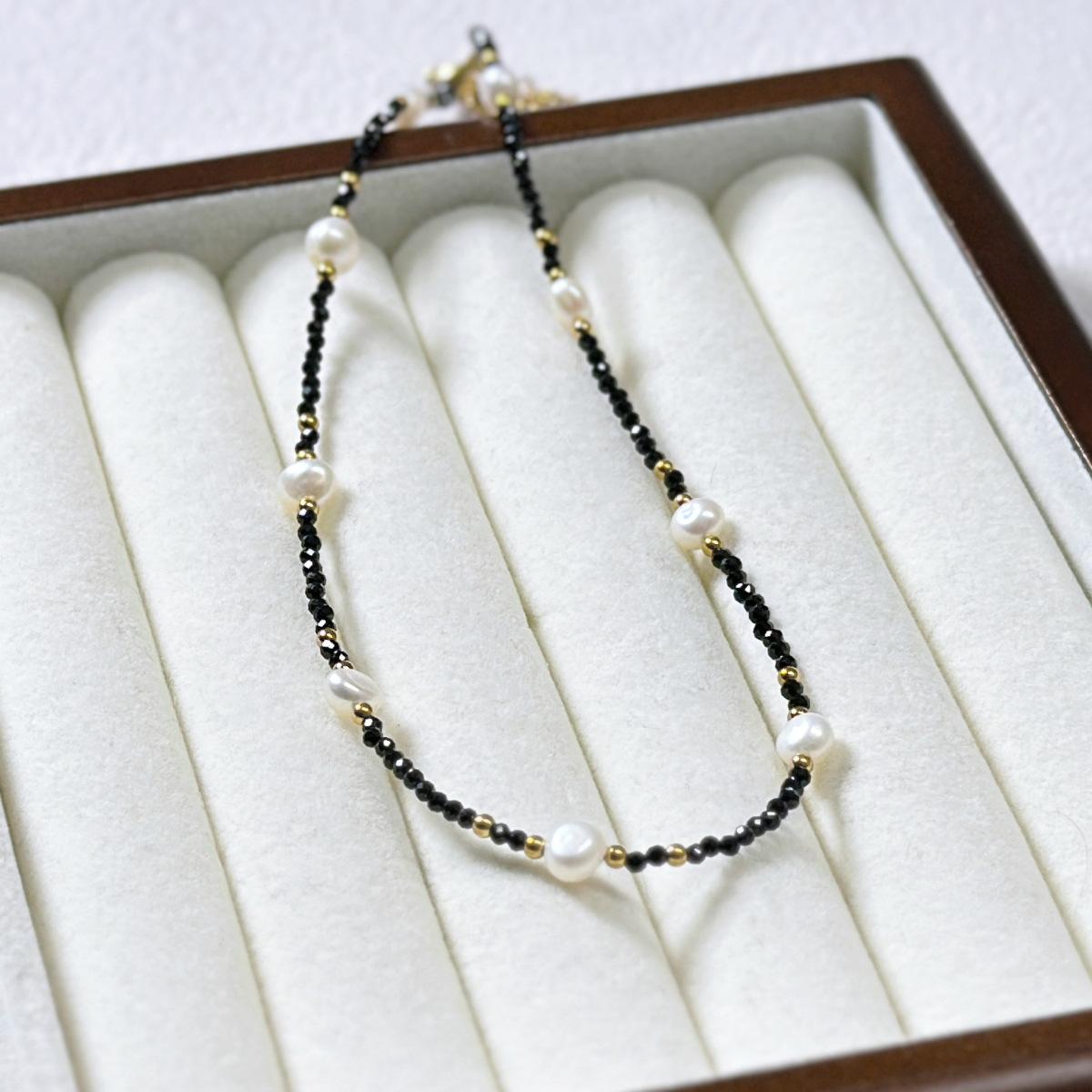Moda Coreana Collar de Perlas Naturales de Agua Dulce para Mujer Espinela Negra Completa Cielo Estrellado Collar Pulsera Cadena para Suéter de Alta Gama