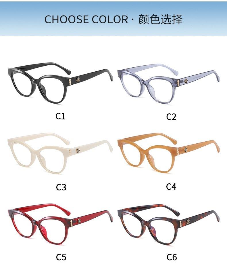 Glossy black frame, Transparent gray frame, Tortoiseshell frame, Wine red frame, Brown frame, Off-white frame