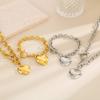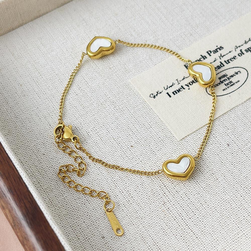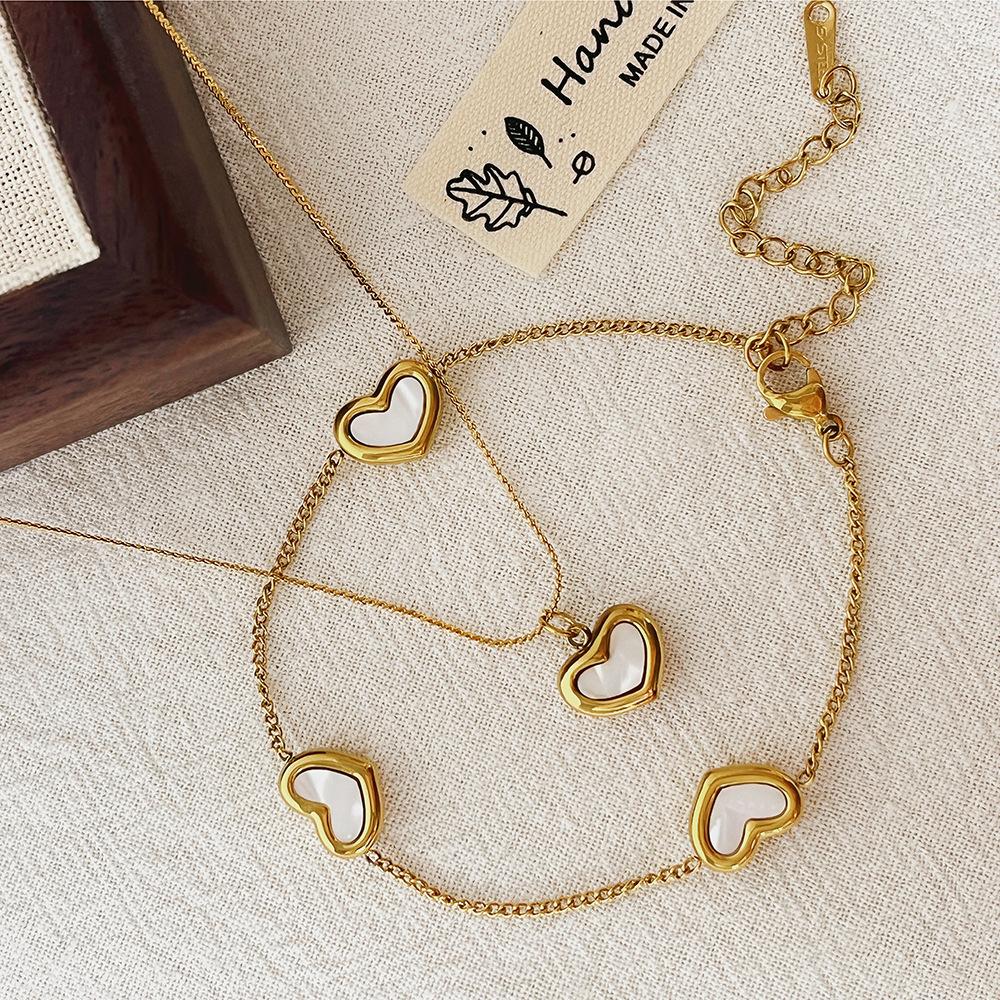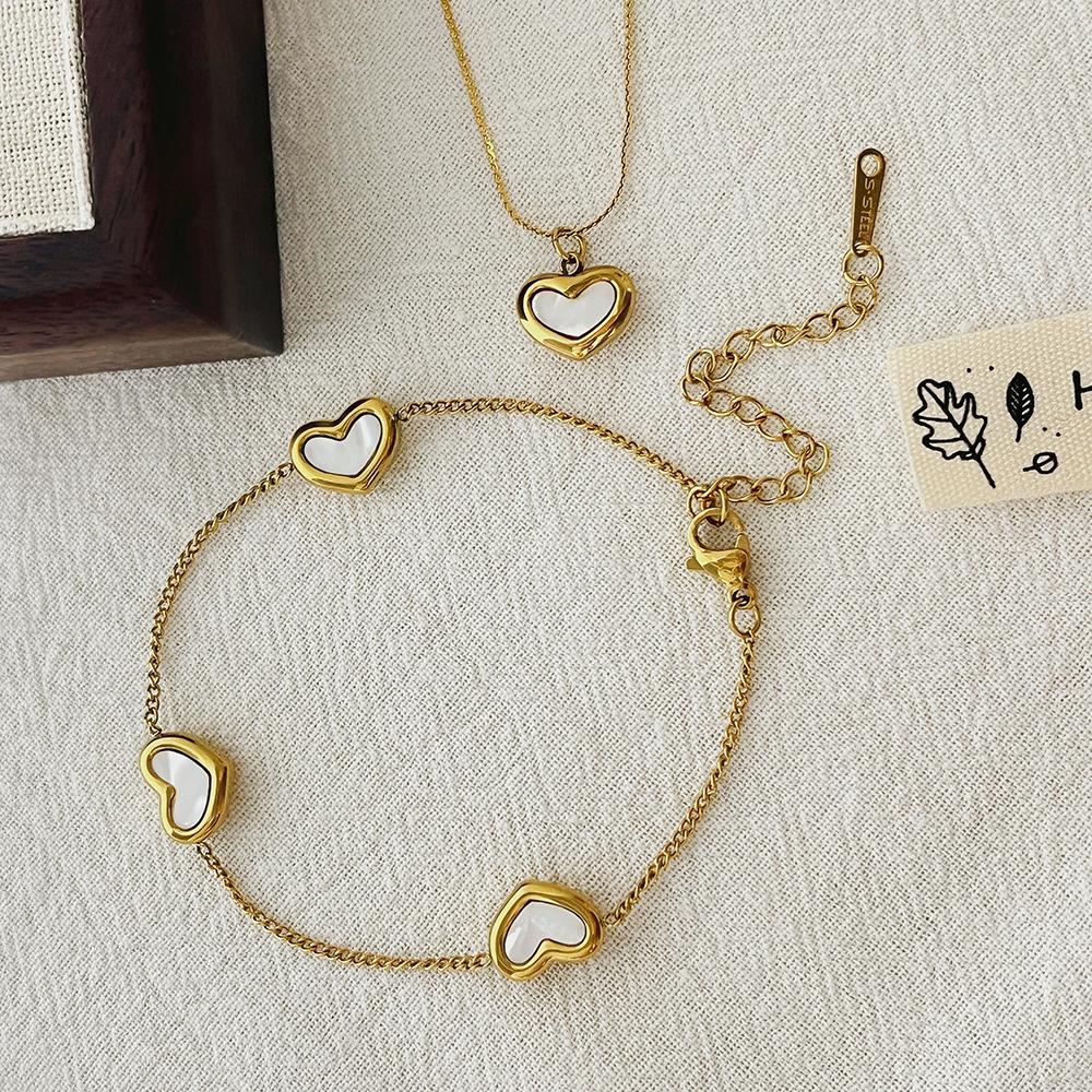 Nuevo collar y pulsera de acero inoxidable con diseño de concha y corazón de melocotón, con cadena cruzada y colgante, joyería sencilla de acero de titanio.