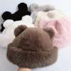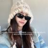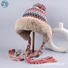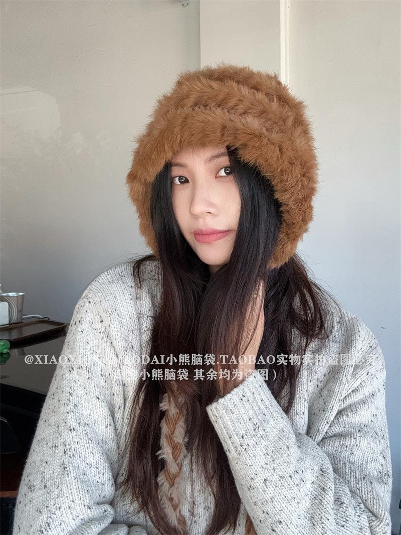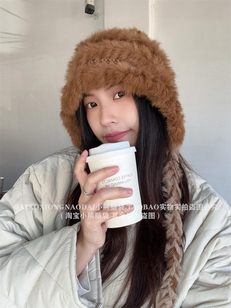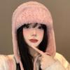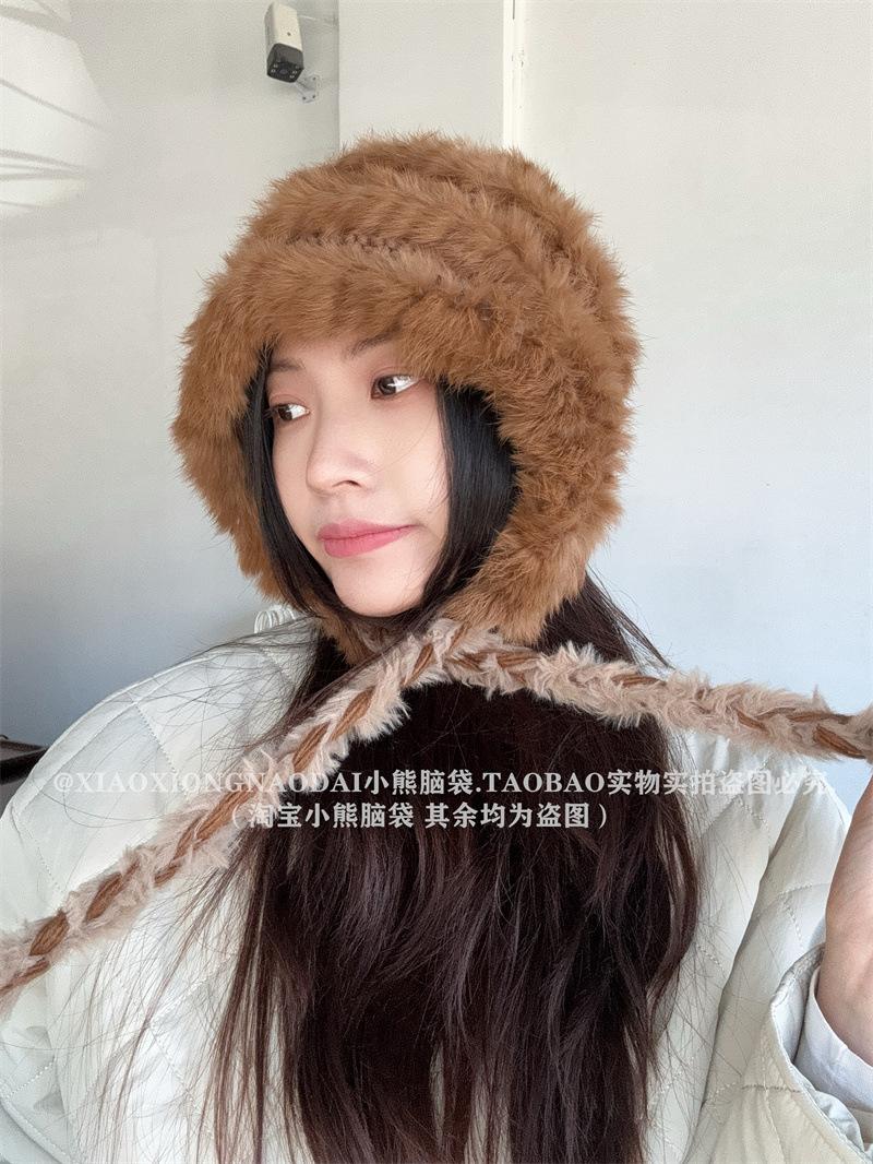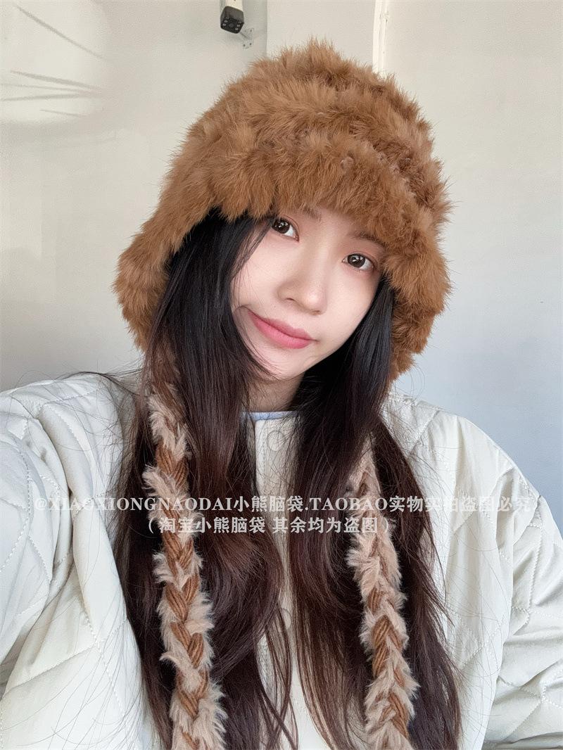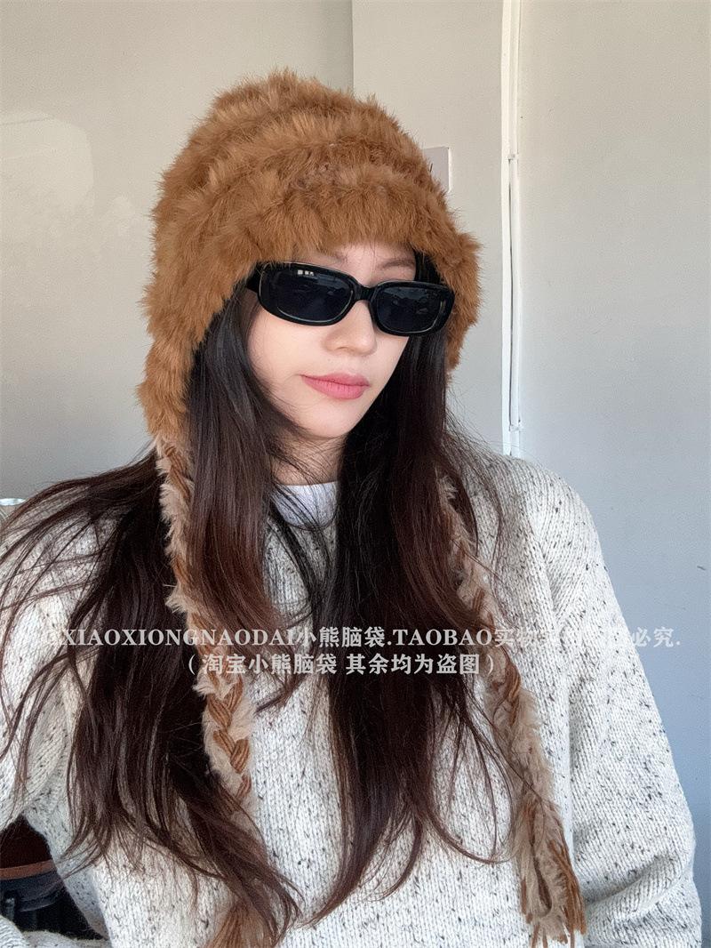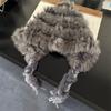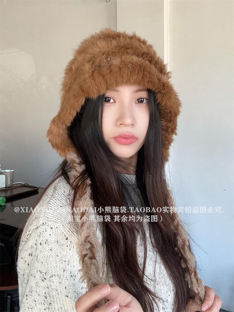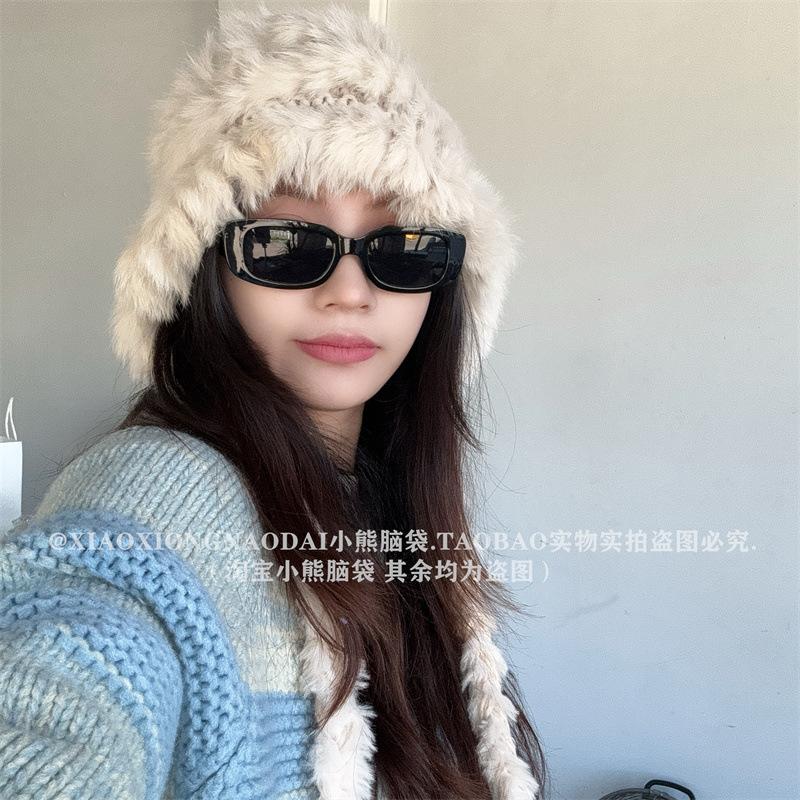 Gorro protector de orejas estilo coreano con mezcla de piel de conejo auténtica, gorro pequeño con bolsa para otoño e invierno, gorro tejido a mano, gorro Lei Feng para mujer