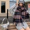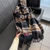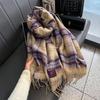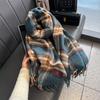Bufanda Larga Nueva Retro a Cuadros de Cachemira con Borlas Otoño e Invierno Gruesa Cálida Protección para el Cuello Bufanda Versátil para Pareja