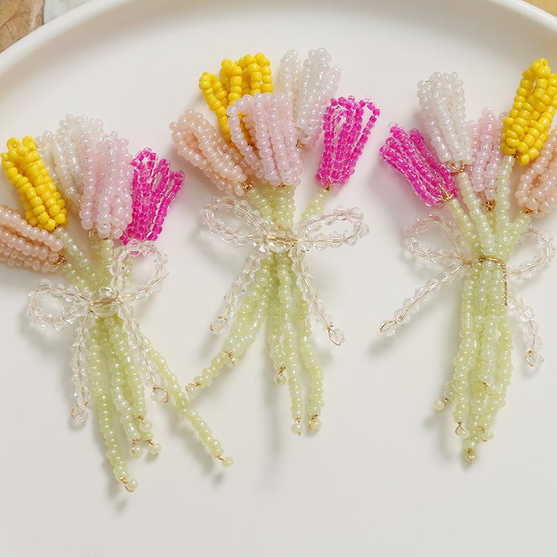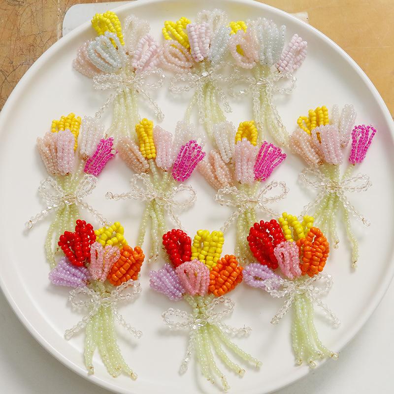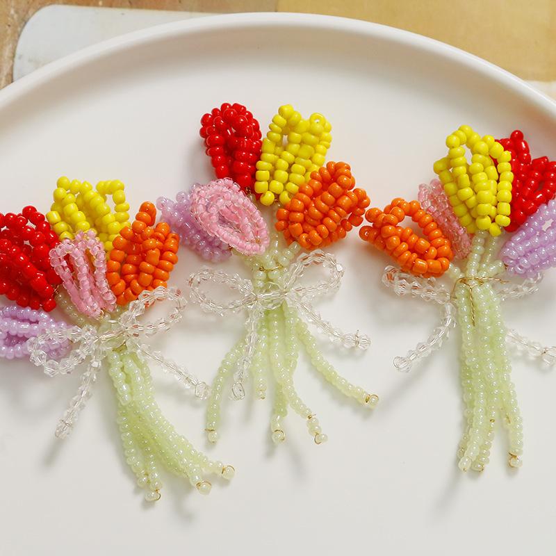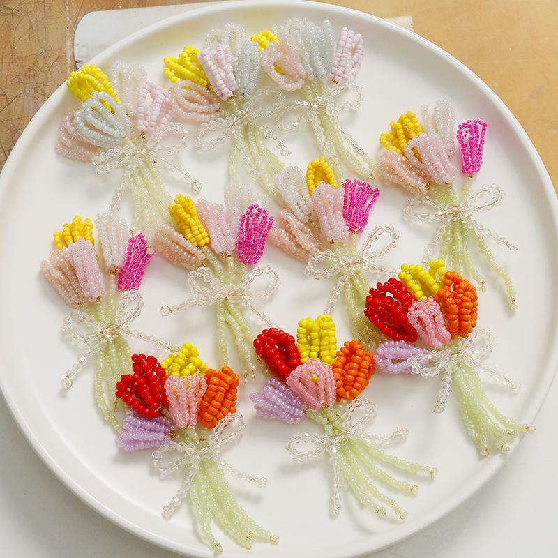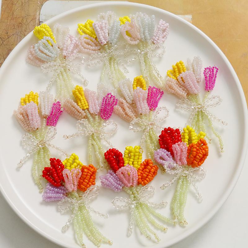 Ramo de tulipanes coloridos de primavera y verano, flores, bricolaje, horquillas tejidas a mano con cuentas, accesorios para el cabello, pendientes, material al por mayor