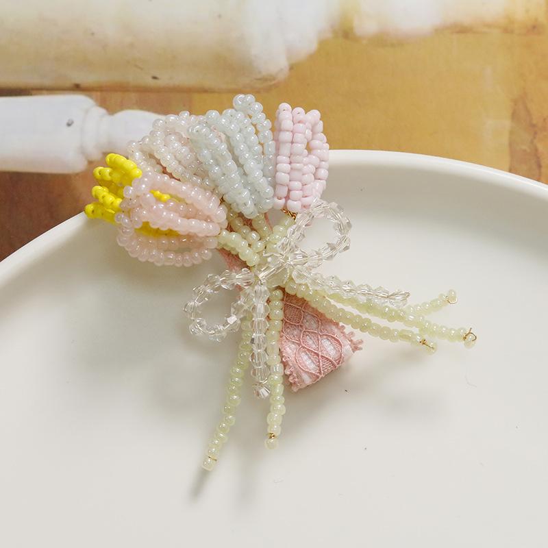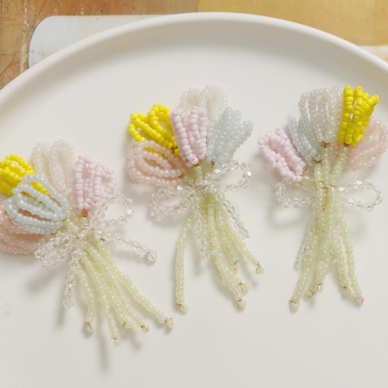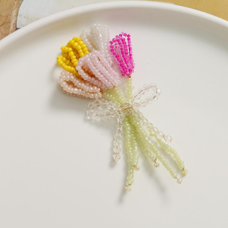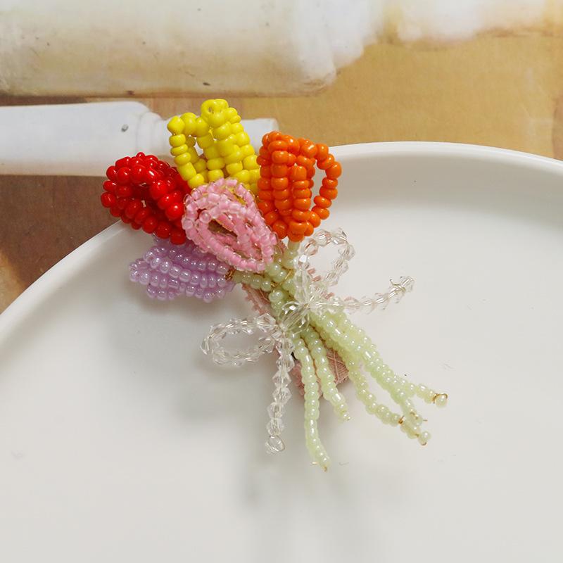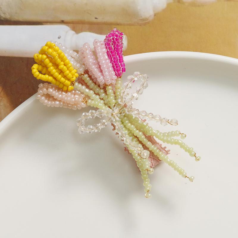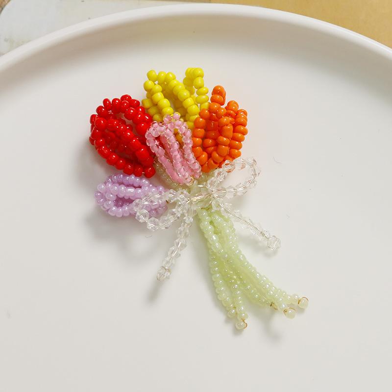 Ramo de tulipanes coloridos de primavera y verano, flores, bricolaje, horquillas tejidas a mano con cuentas, accesorios para el cabello, pendientes, material al por mayor