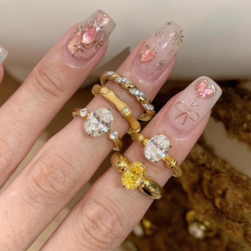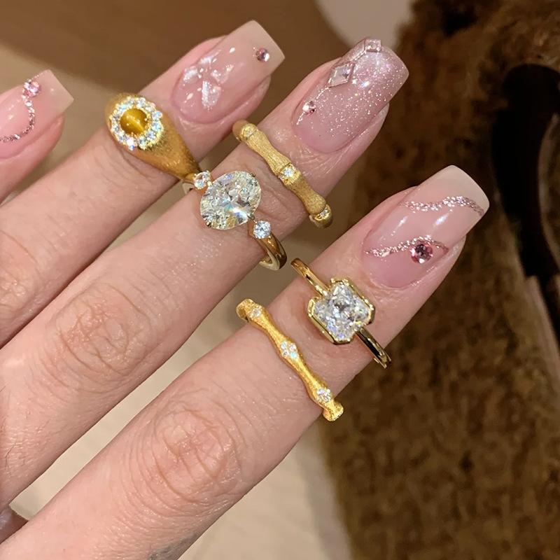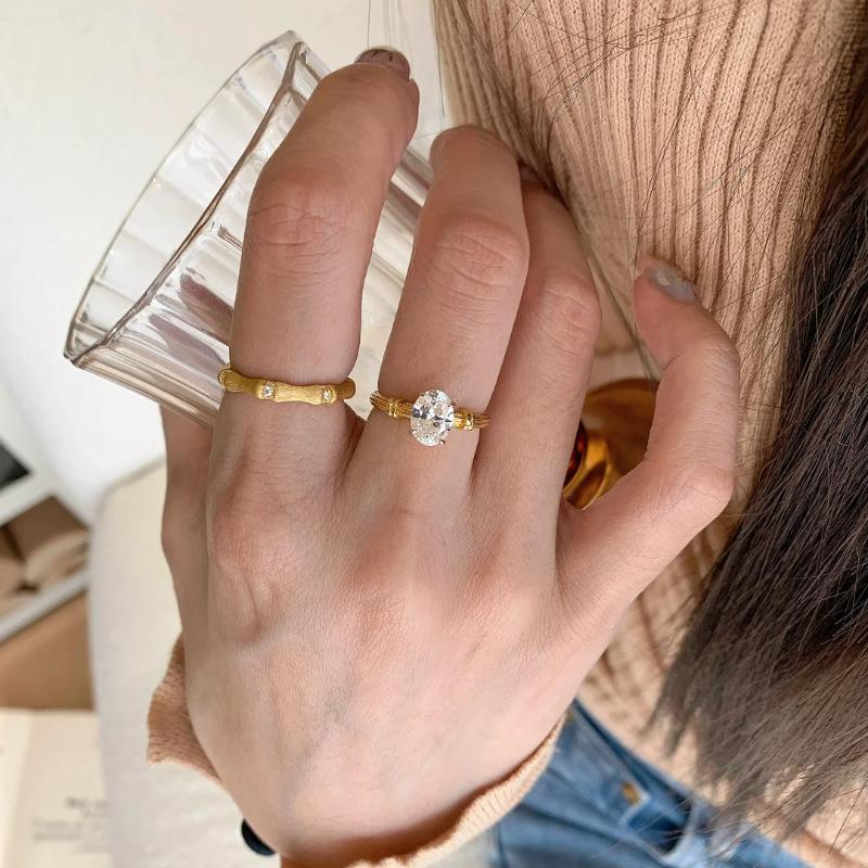Anillo de Zirconia Súper Brillante Trefilado Antiguo Medio Moda para Mujer Lujo Ligero Sentido de Alta Gama Nicho Francés Apilable Anillo Abierto para Dedo Moda
