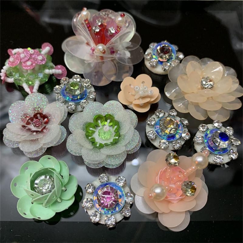 Parche de tela decorativo con miniflores y lentejuelas tridimensionales, calcomanía para accesorios de ropa, bricolaje, promoción de accesorios de ropa