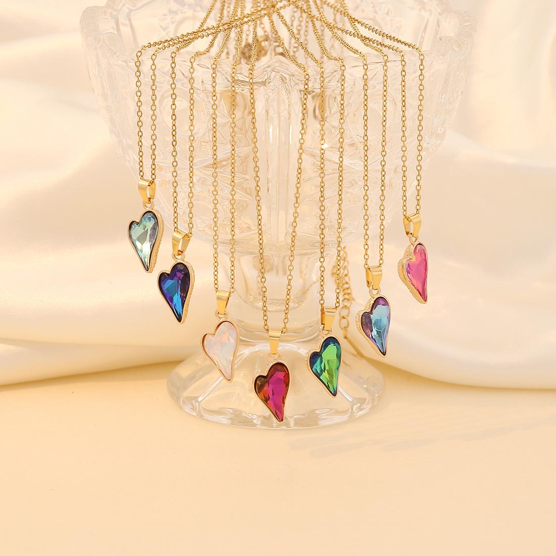 [Ice Moe] Colgante de amor de cristal multicolor, collar de acero inoxidable de moda, collar de moda INS N138