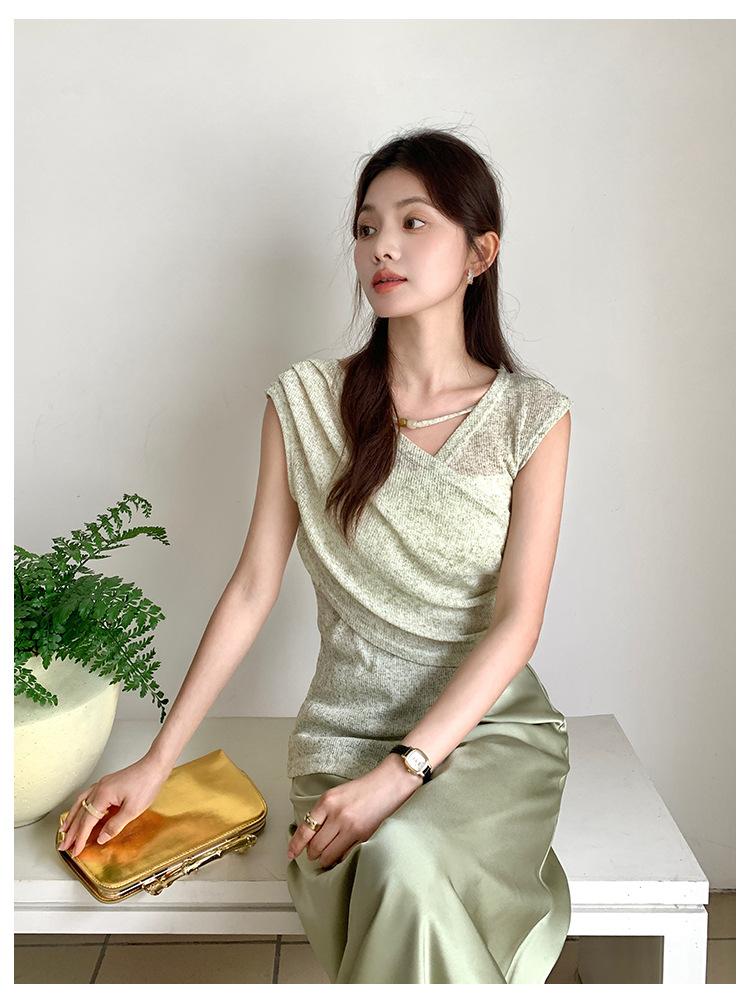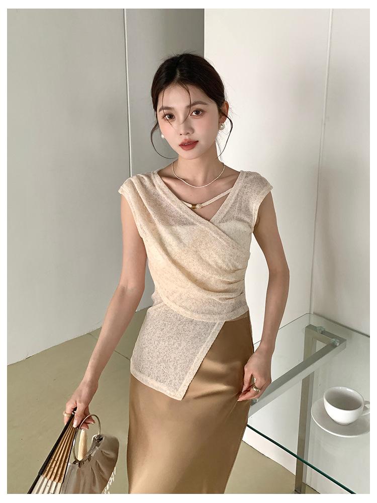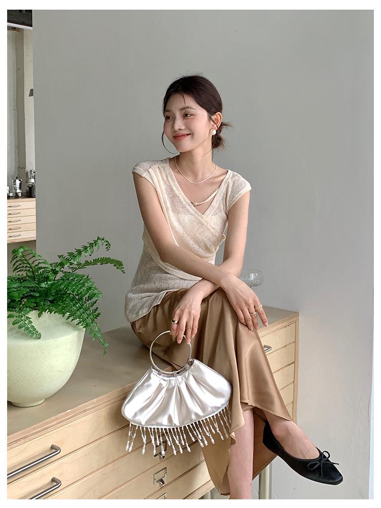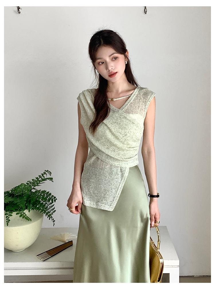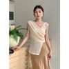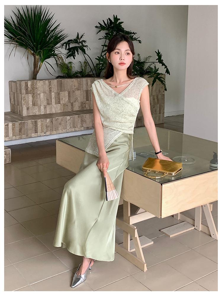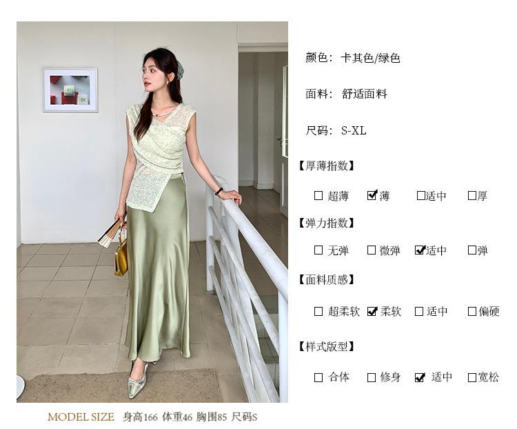 Conjunto de dos piezas formado por camiseta y falda de satén, para mujer, de punto irregular, color liso, de alta calidad, para verano