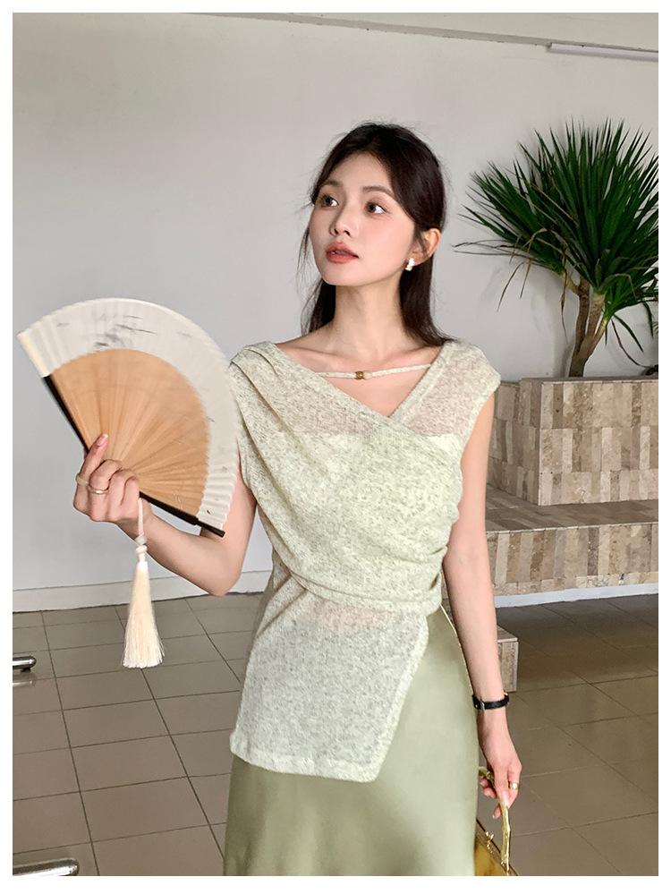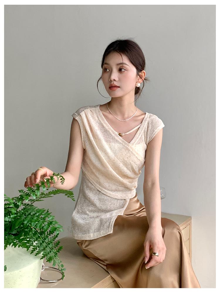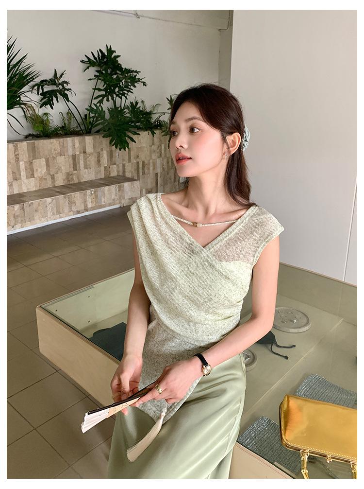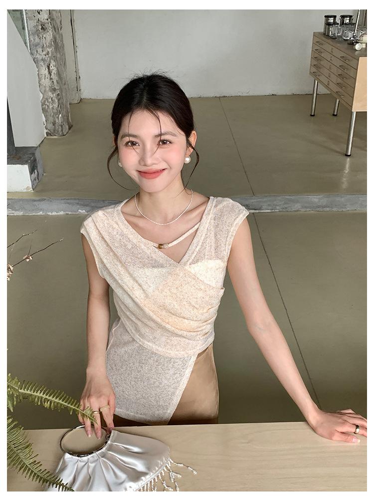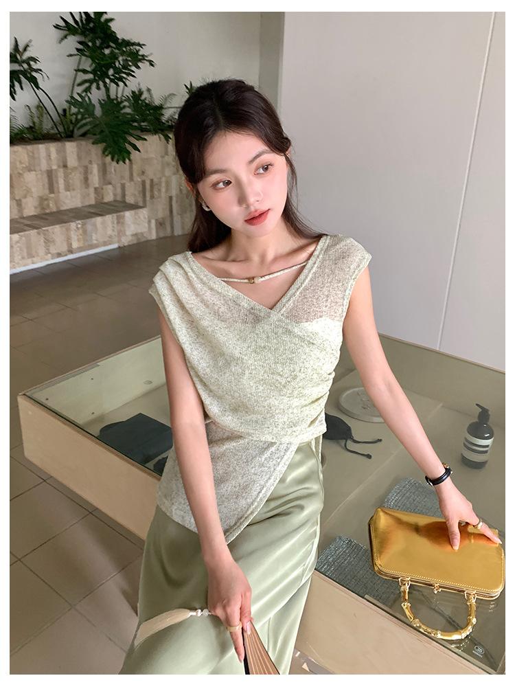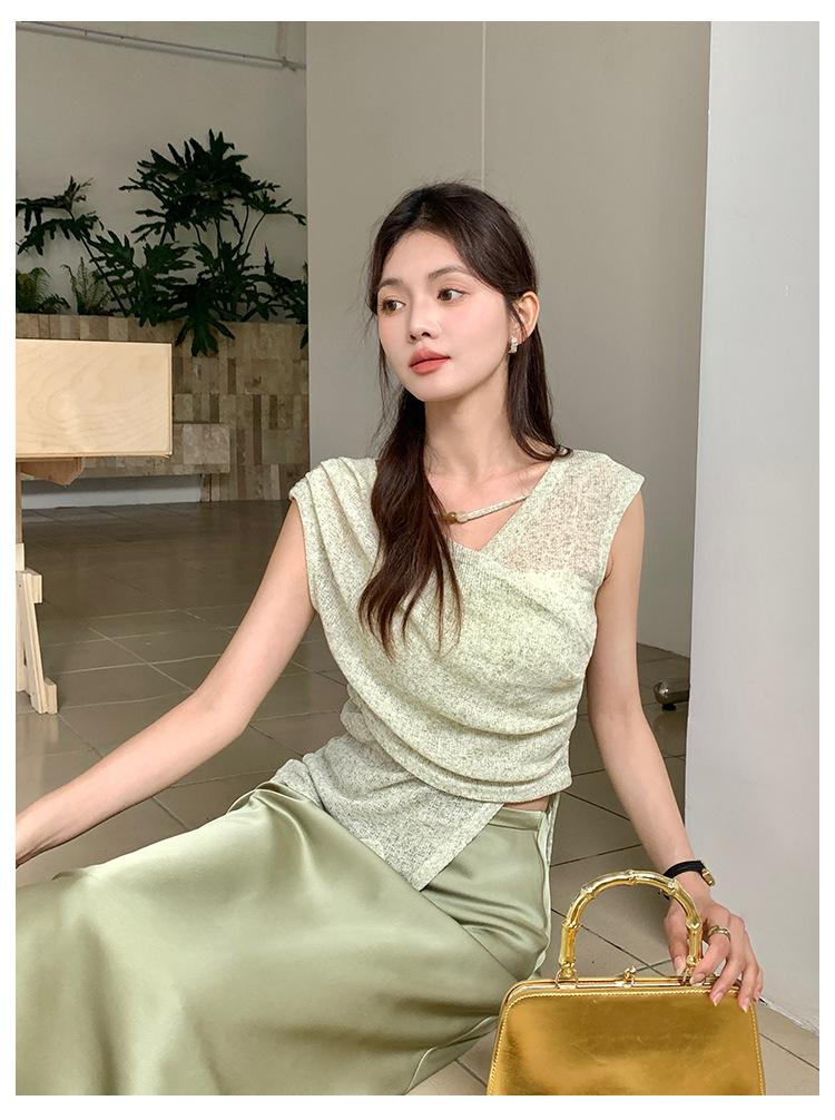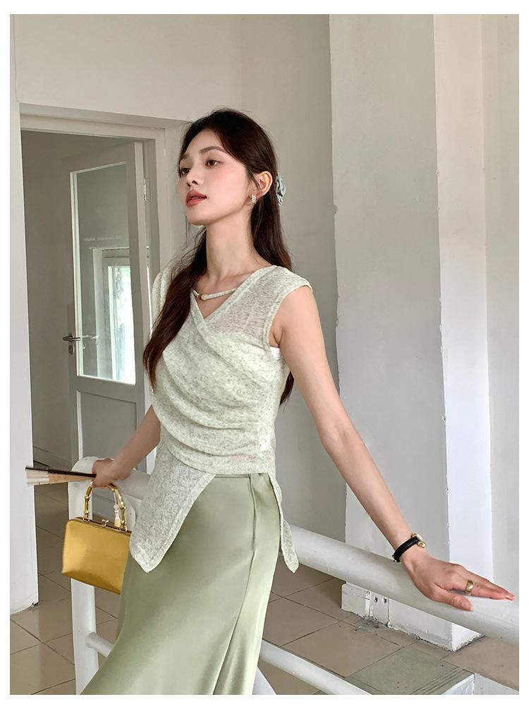 Conjunto de dos piezas formado por camiseta y falda de satén, para mujer, de punto irregular, color liso, de alta calidad, para verano