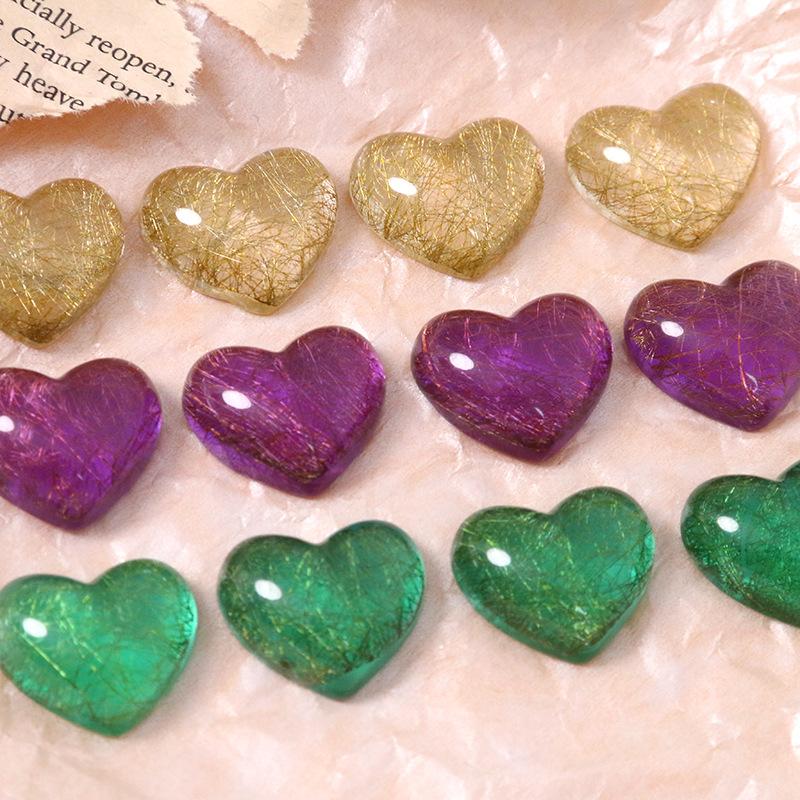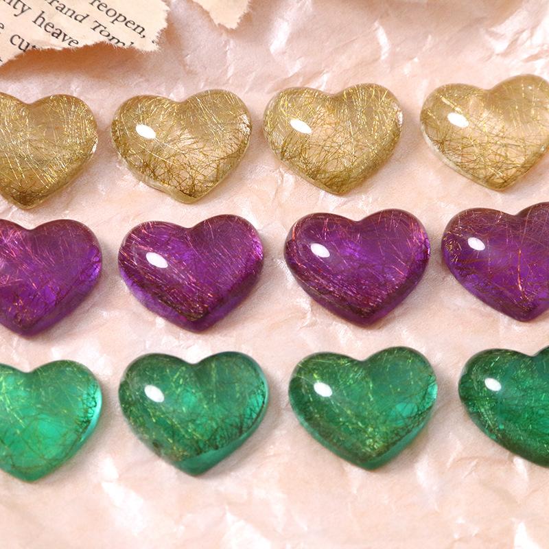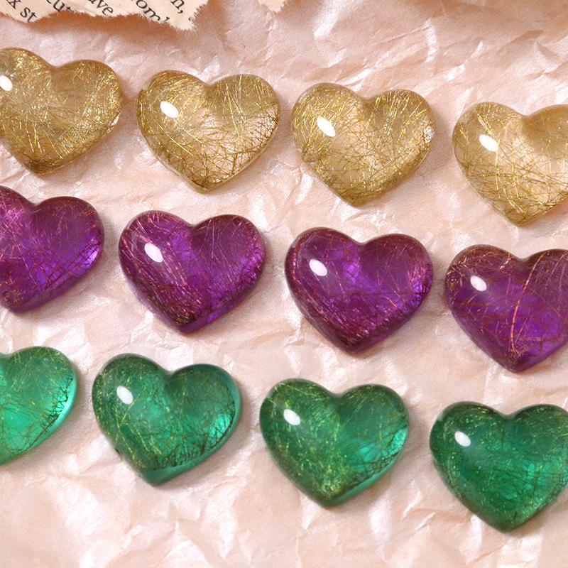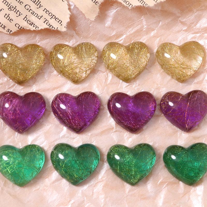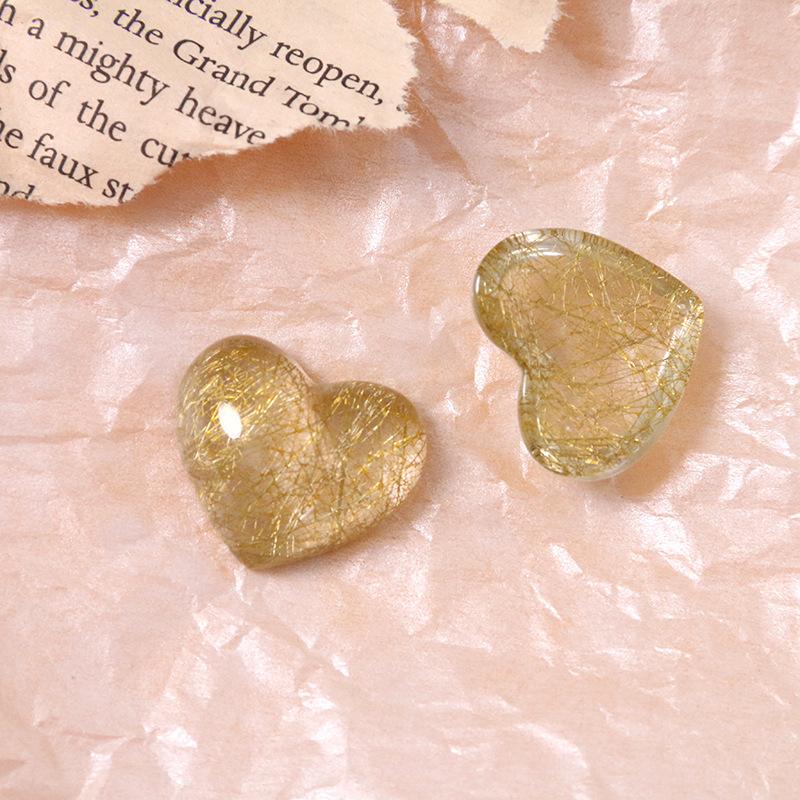 Parche de corazón de melocotón con hilo dorado semitransparente en forma de corazón retro, accesorios de resina para bricolaje, pendientes, horquilla, funda de teléfono, material al por mayor