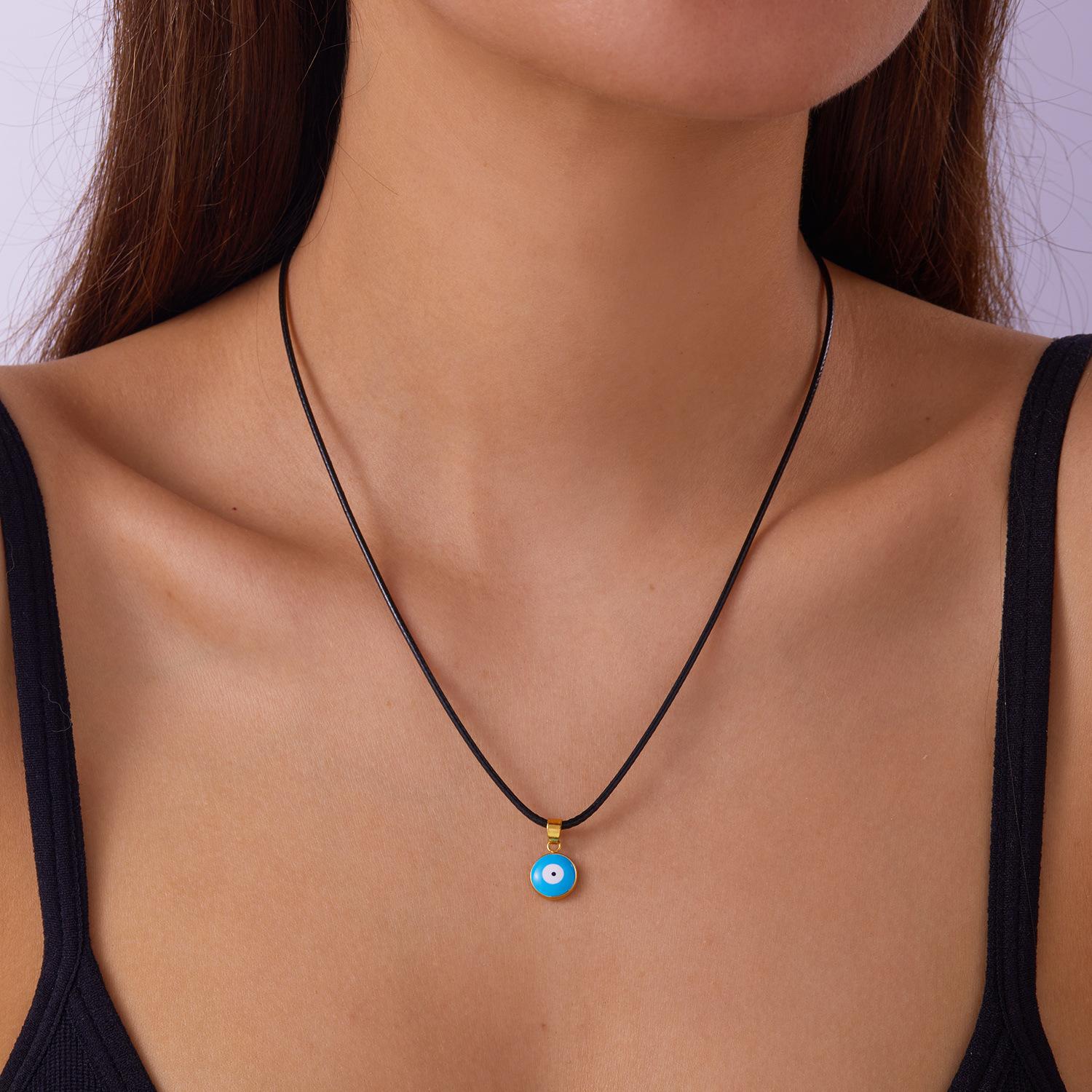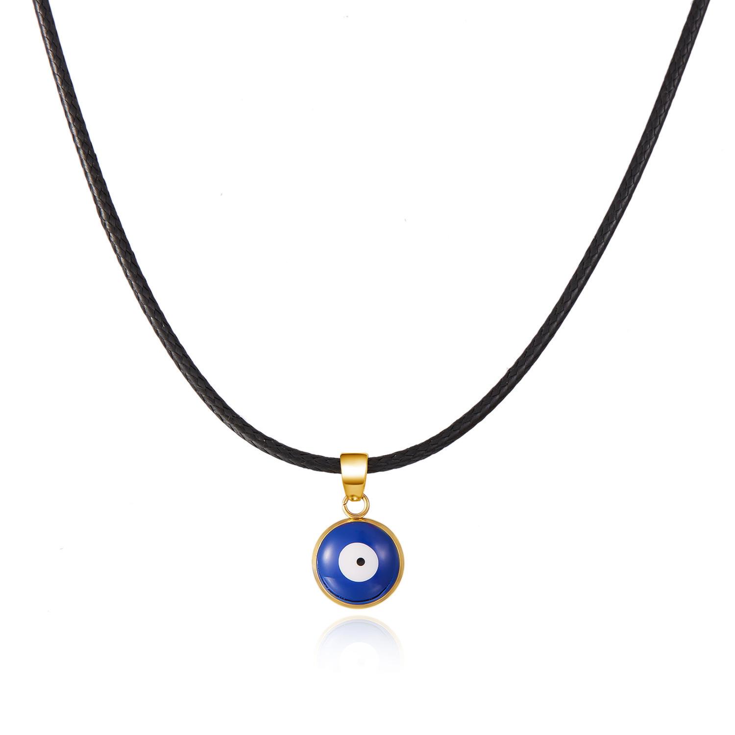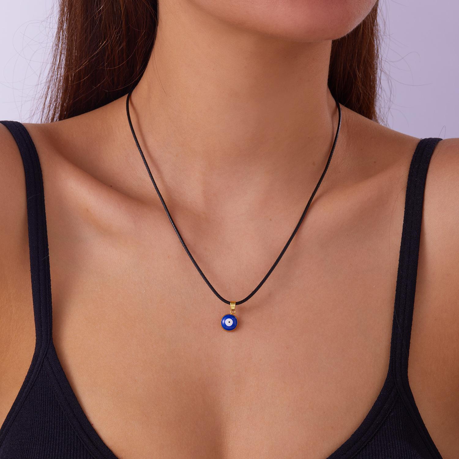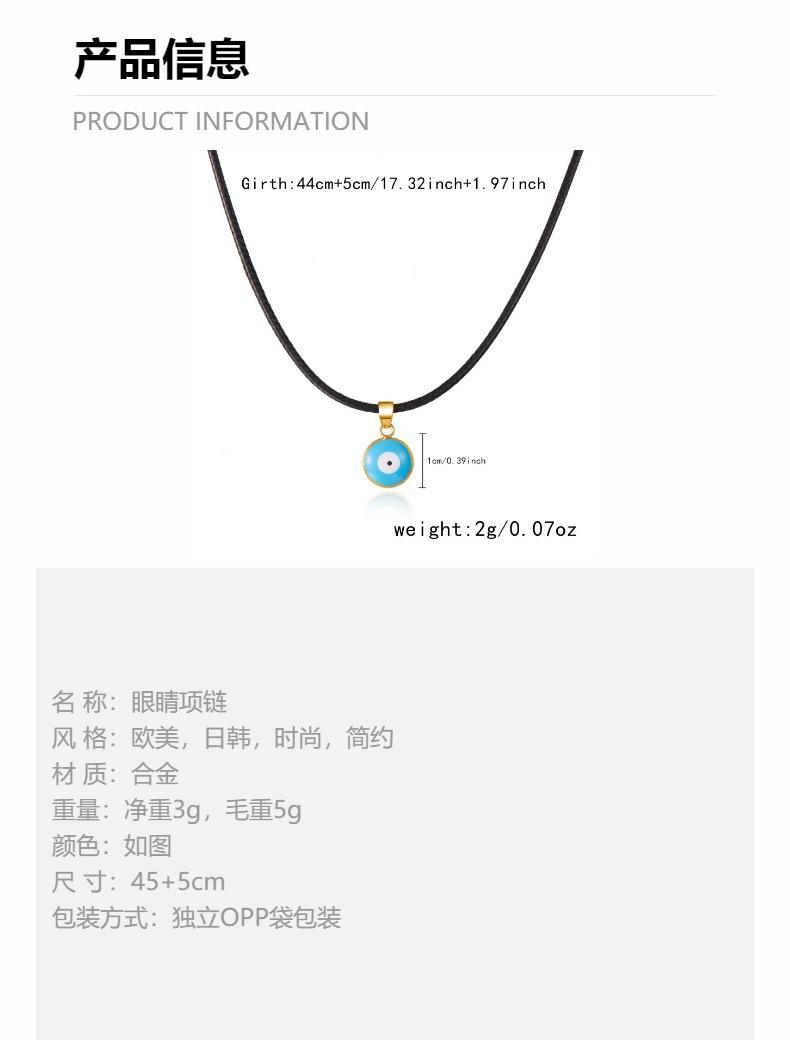 Collar de cadena con forma de ojo de diablo para mujer, nuevo collar de cuerda negra con ojos azules creativos, venta al por mayor, transfronterizo entre Europa y Estados Unidos