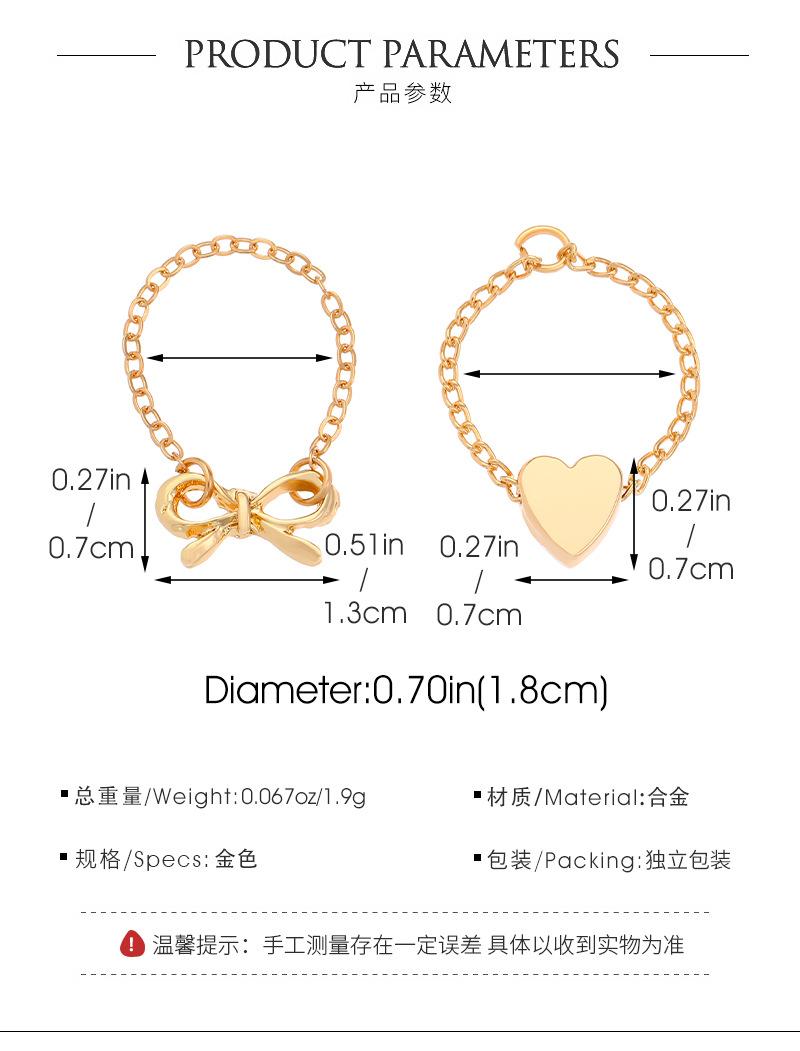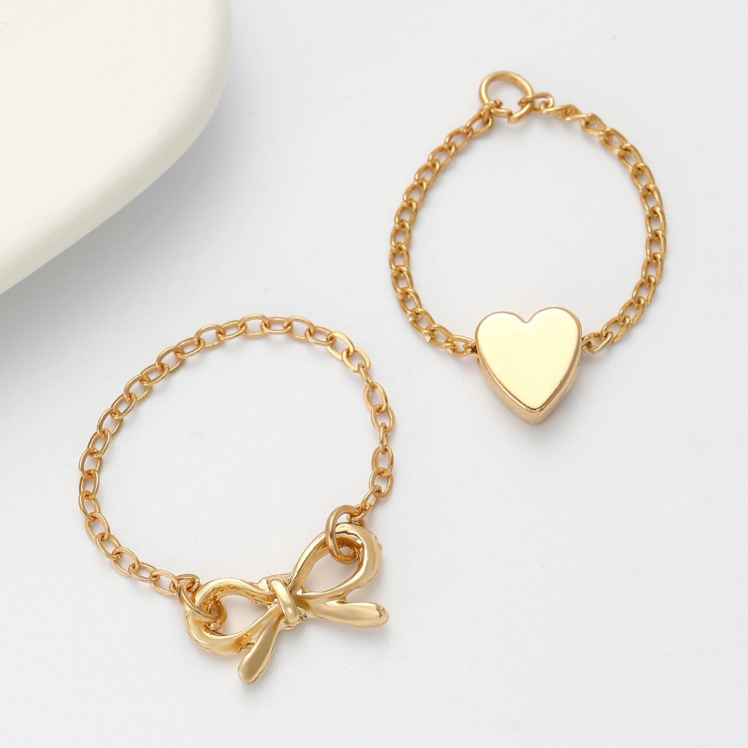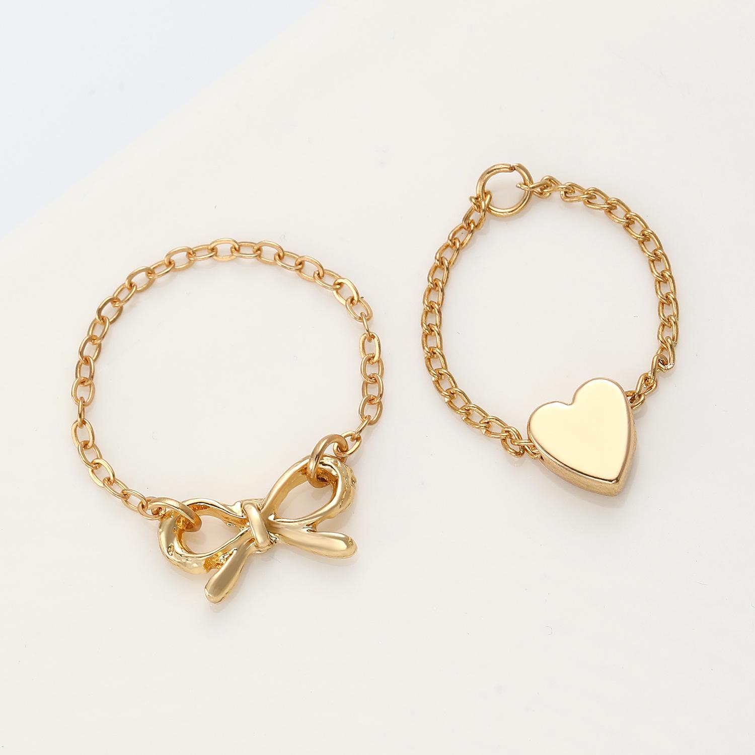 Moda europea y americana anillo de cadena con lazo de amor de 2 piezas nuevo traje personalidad creativa anillo ajustable mujeres