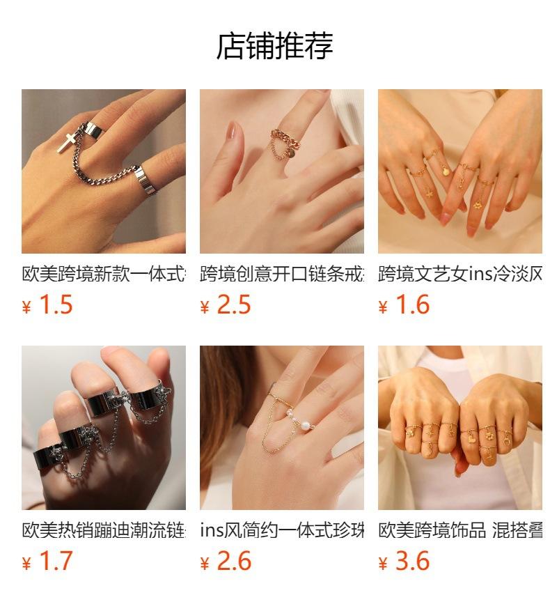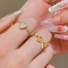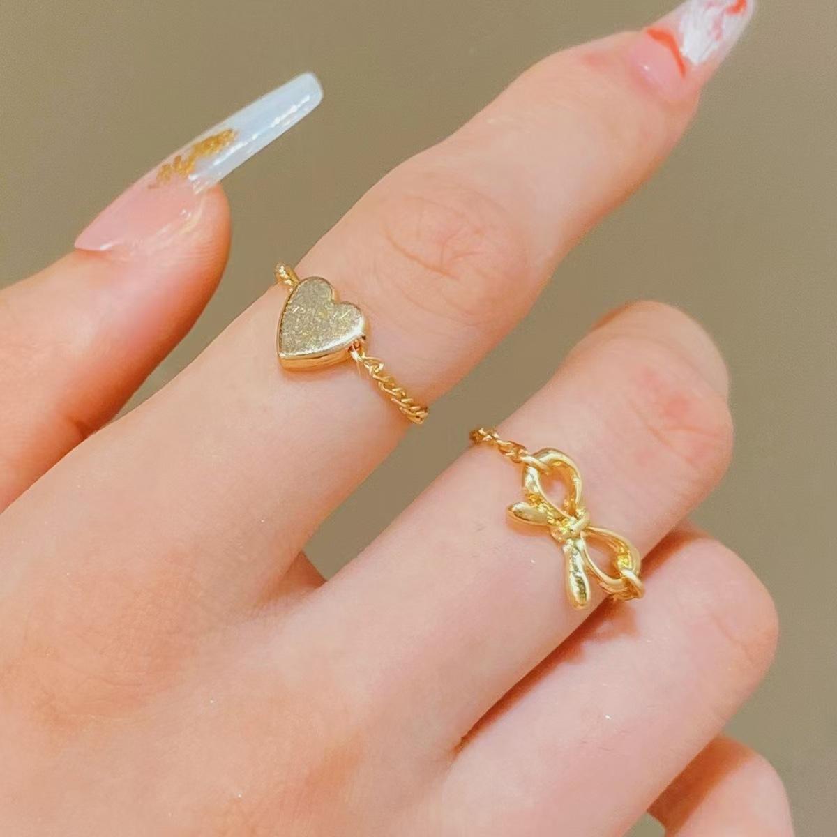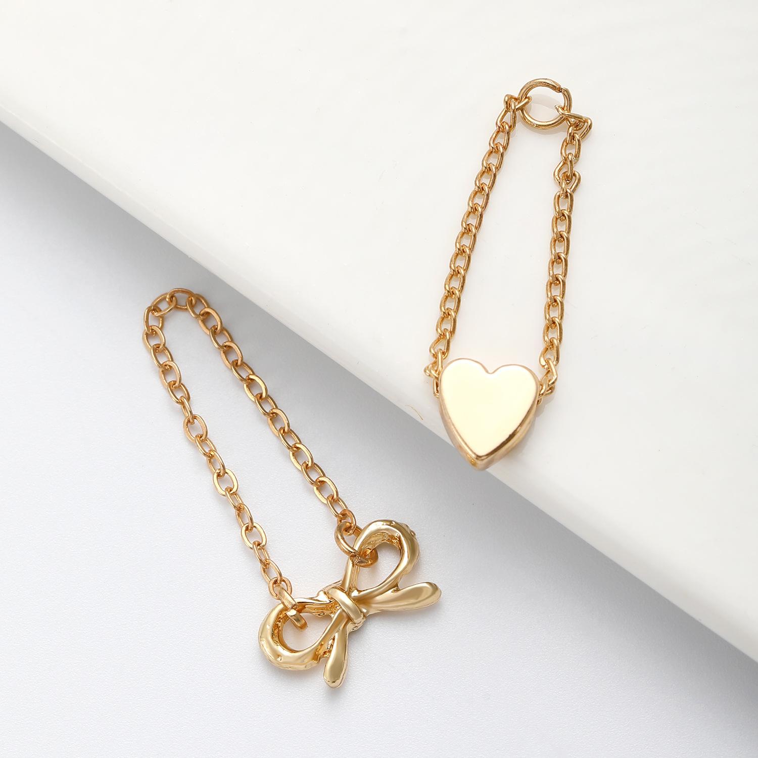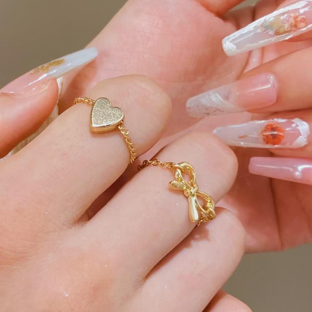 Moda europea y americana anillo de cadena con lazo de amor de 2 piezas nuevo traje personalidad creativa anillo ajustable mujeres