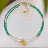 Collar de cadena de clavícula con perla artificial de cristal de citrino y esmeralda natural de alta calidad de Guofeng Vintage