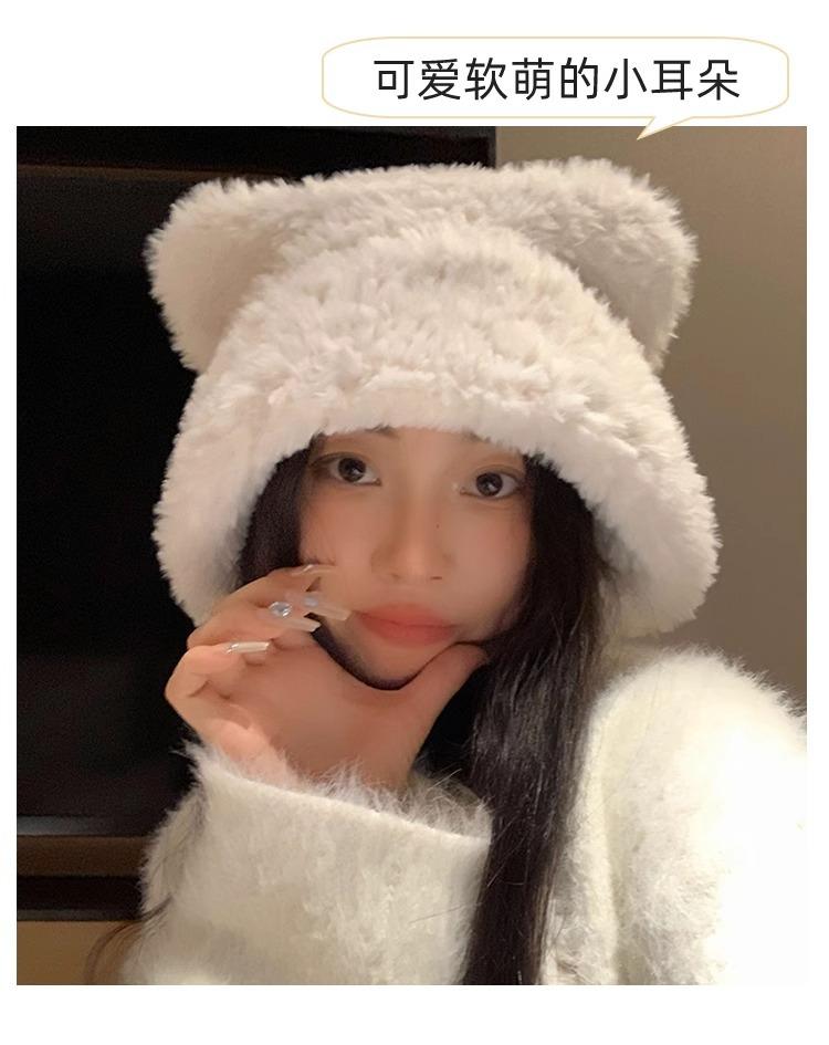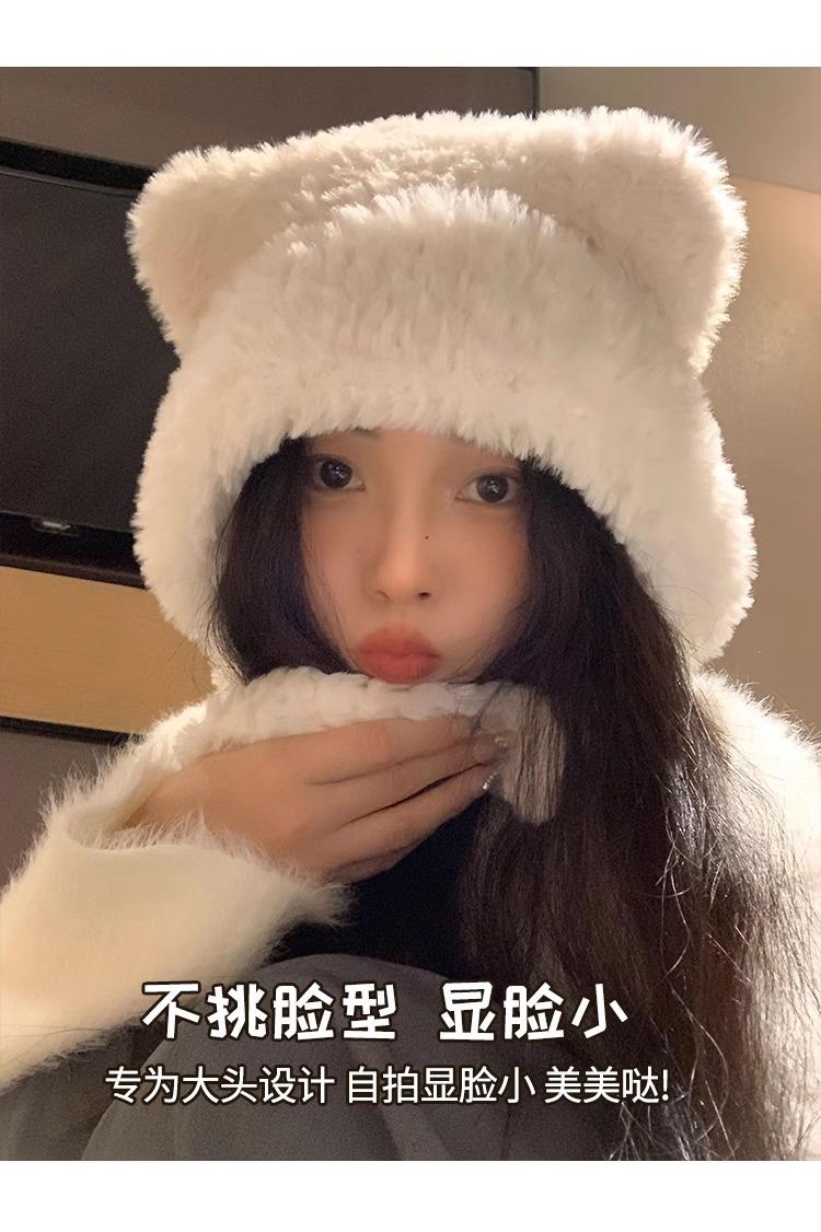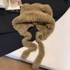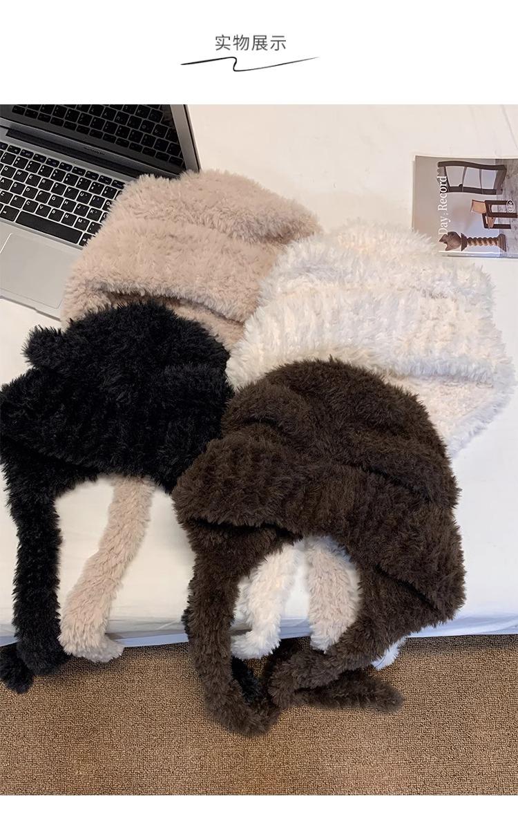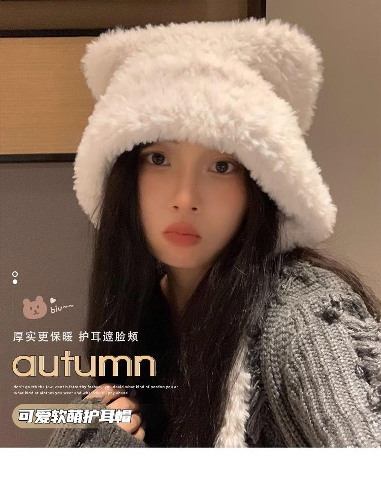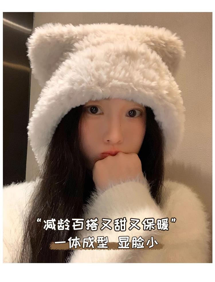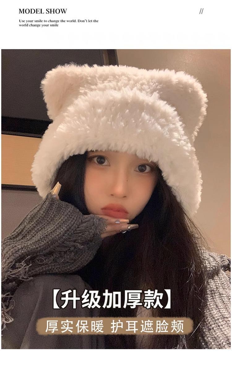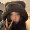 Gorro de orejas de oso de peluche bonito y grueso mejorado para mujer, cálido gorro de lana con protección para las orejas, gorro de punto Lei Feng para otoño e invierno.