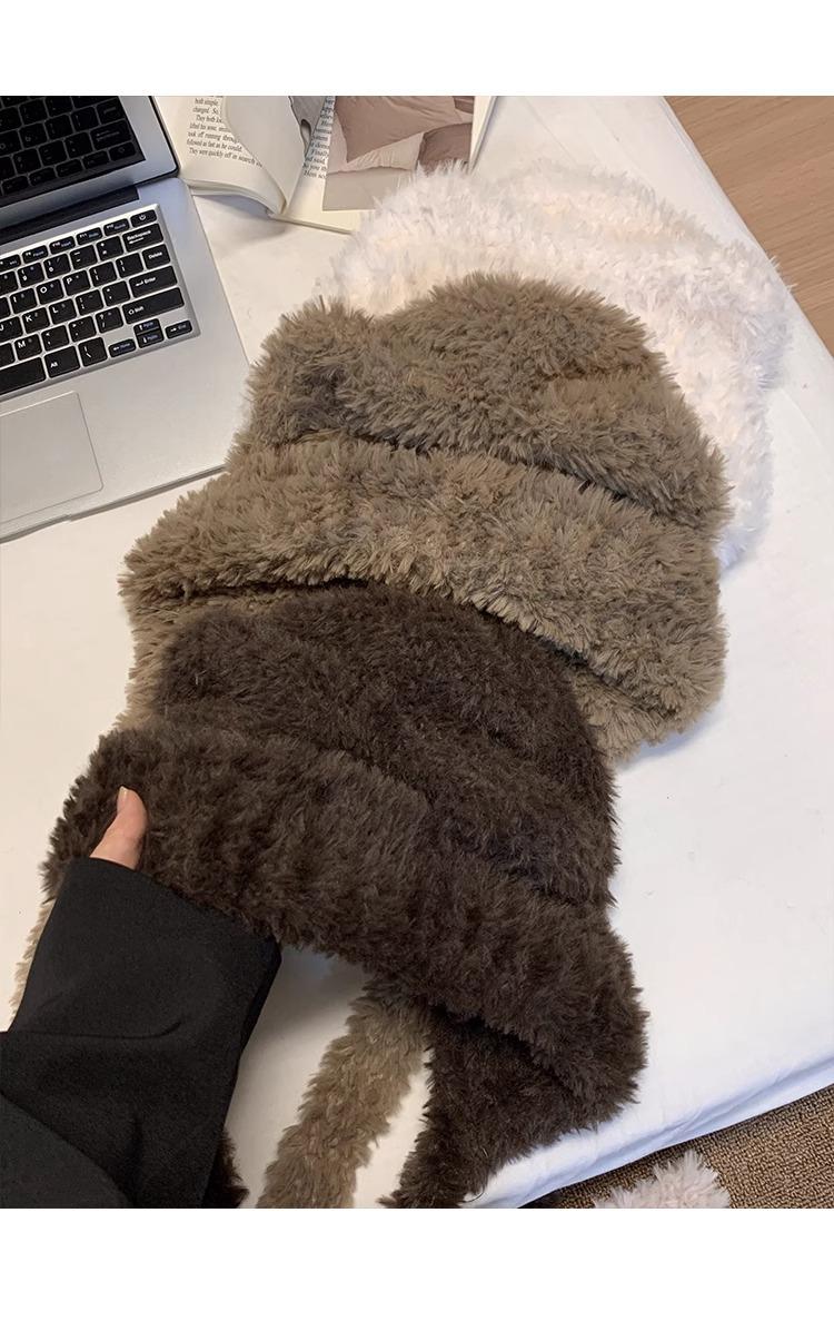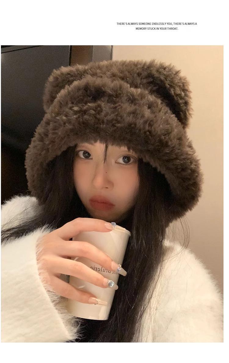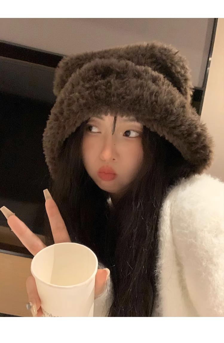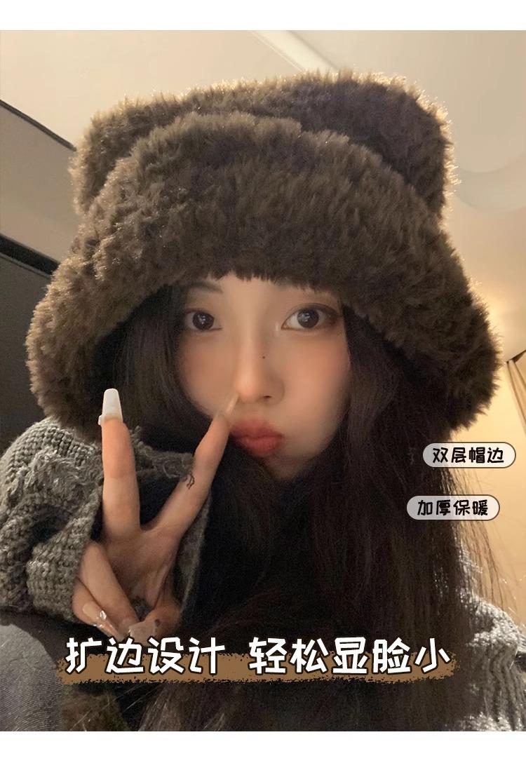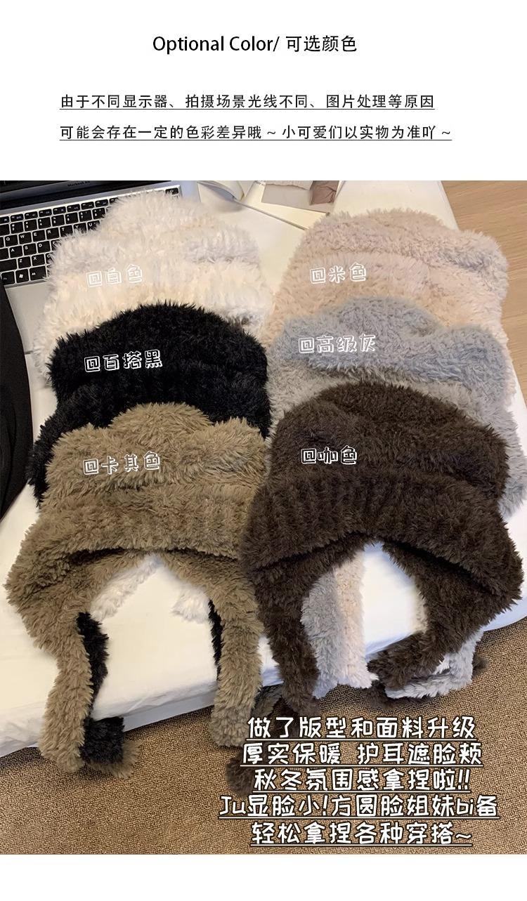 Gorro de orejas de oso de peluche bonito y grueso mejorado para mujer, cálido gorro de lana con protección para las orejas, gorro de punto Lei Feng para otoño e invierno.