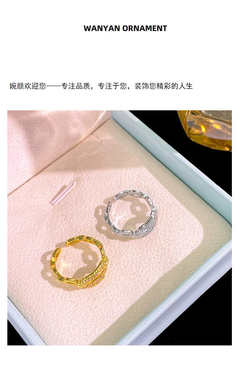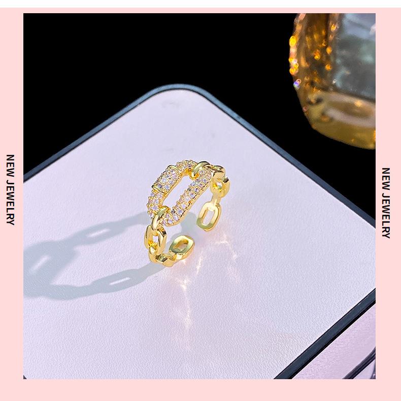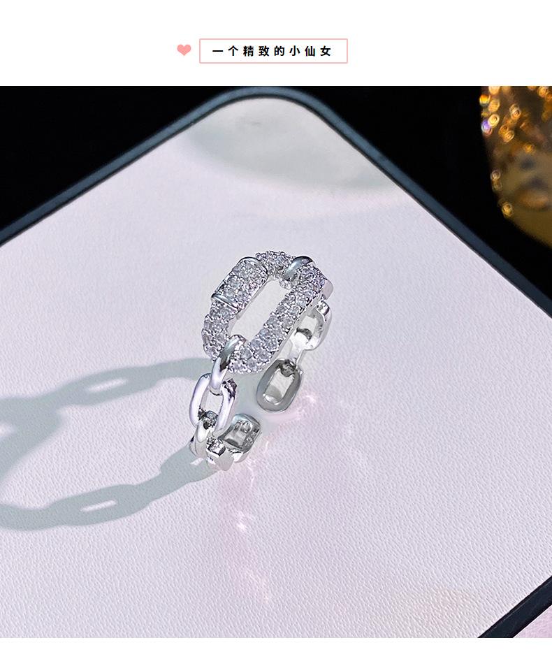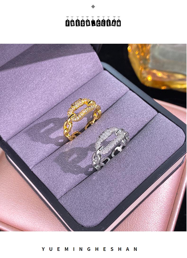 Anillo ajustable con apertura de diamante completo geométrico de venta caliente transfronteriza entre Europa y Estados Unidos para mujer con diseño de moda ins