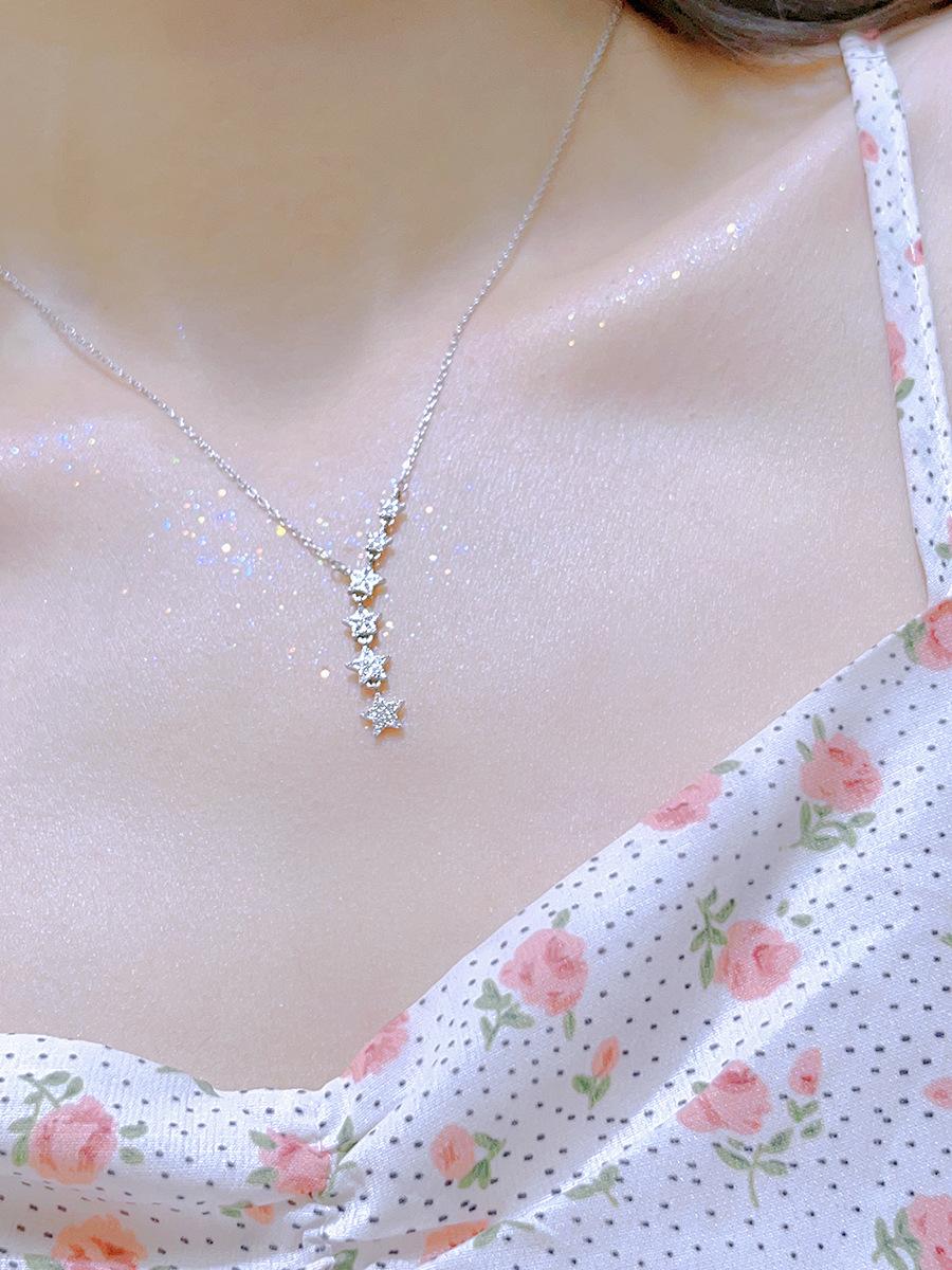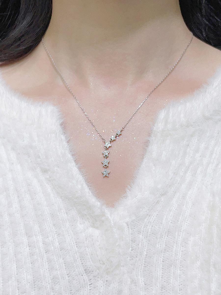 Nuevo collar de estrella con borlas para mujer, diseño de nicho, cadena de clavícula ligera de lujo, collar de estrella de cinco puntas, collar de corazón para niña